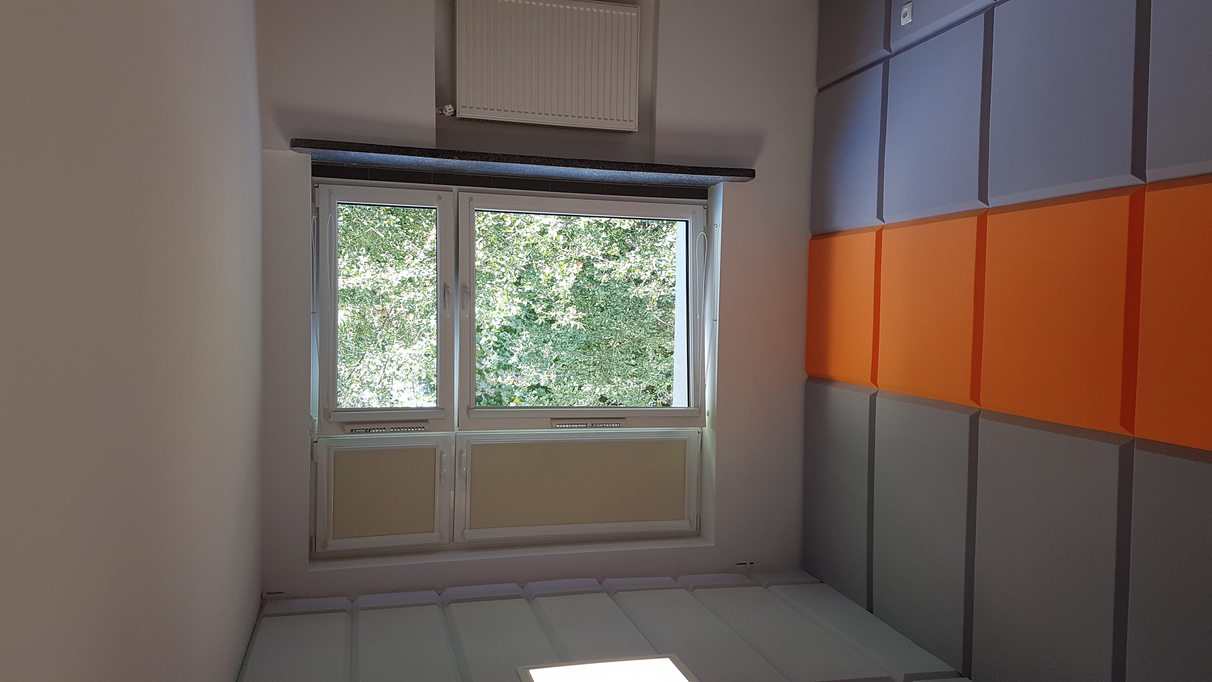 - Poprawę akustyki sali lekcyjnej w łączniku (montaż materiałów dźwiękochłonnych).
