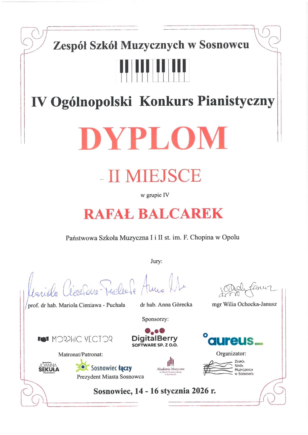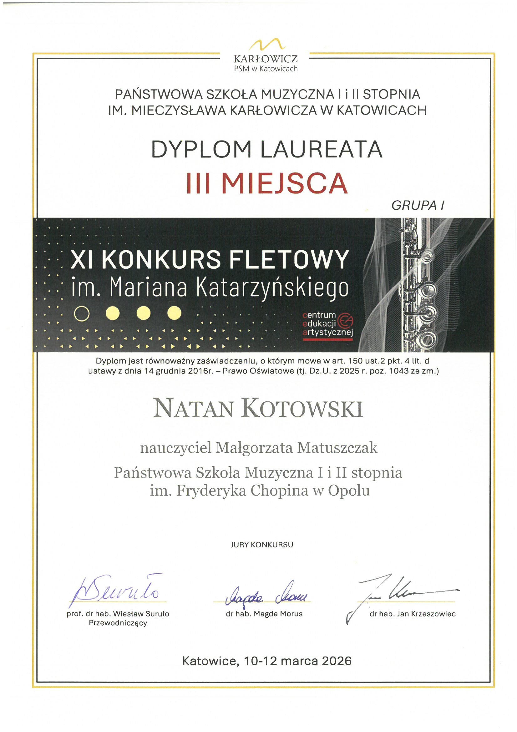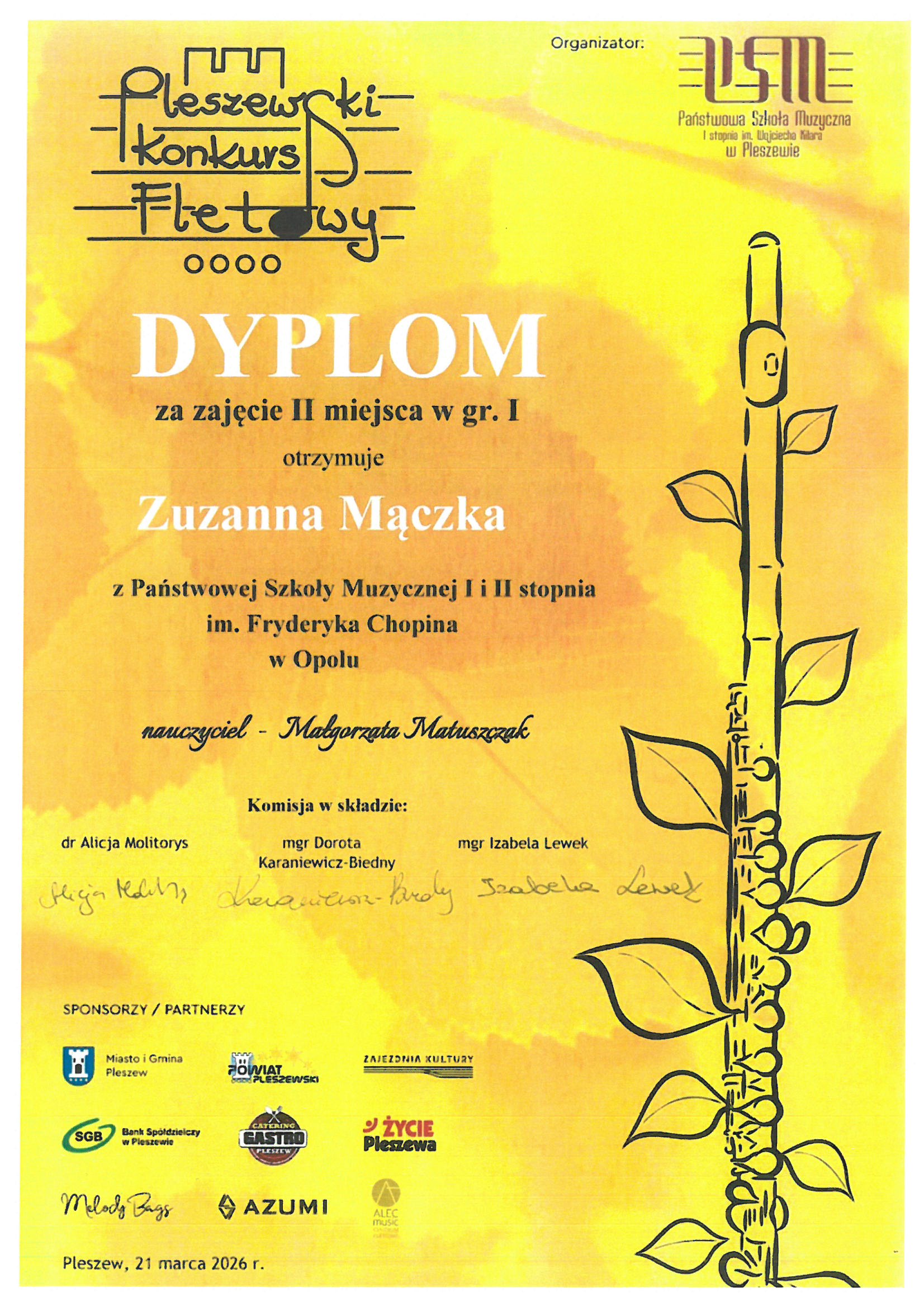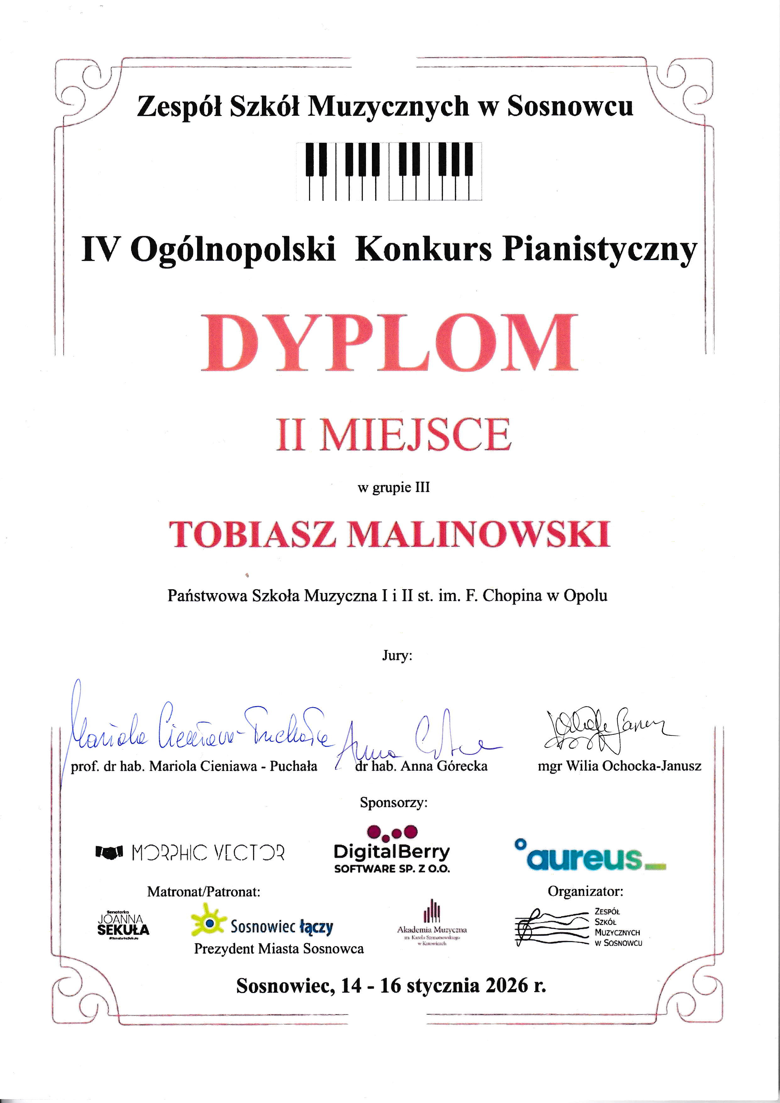 Poniżej galeria dyplomów uczniów Państwowej Szkoły Muzycznej I i II stopnia im. Fryderyka Chopina w Opolu: