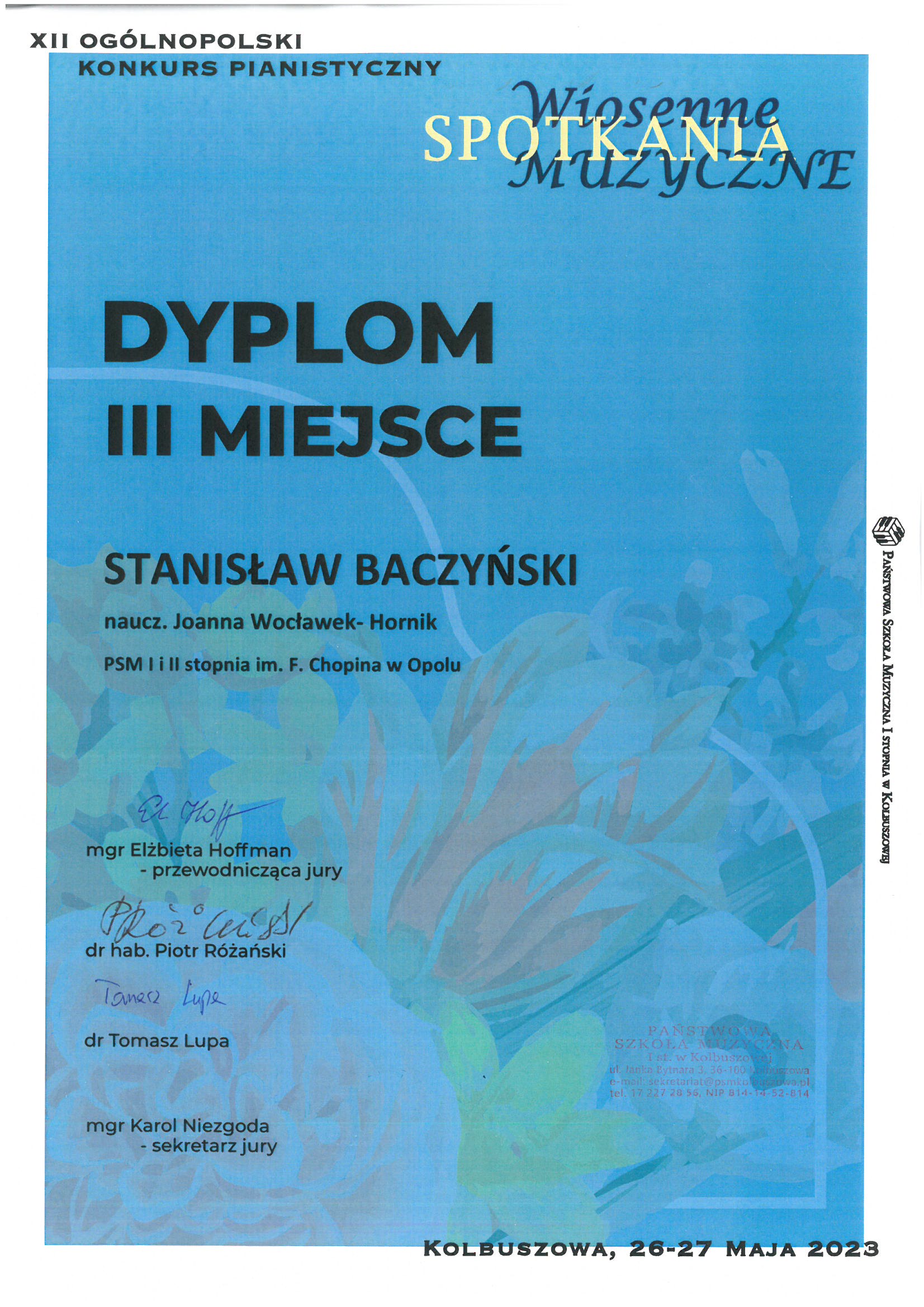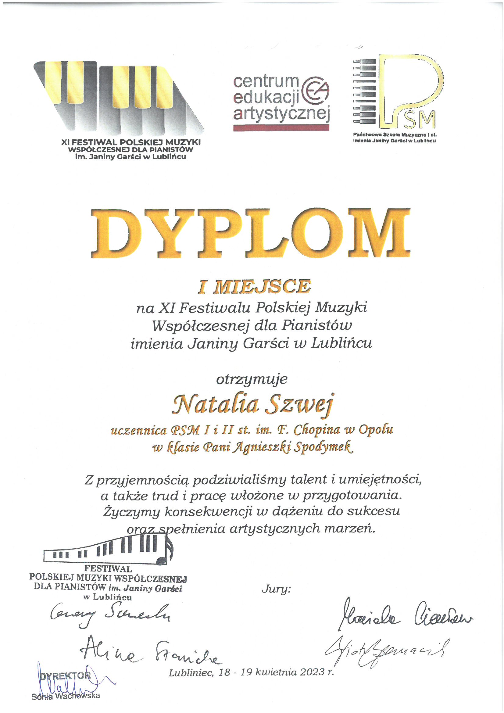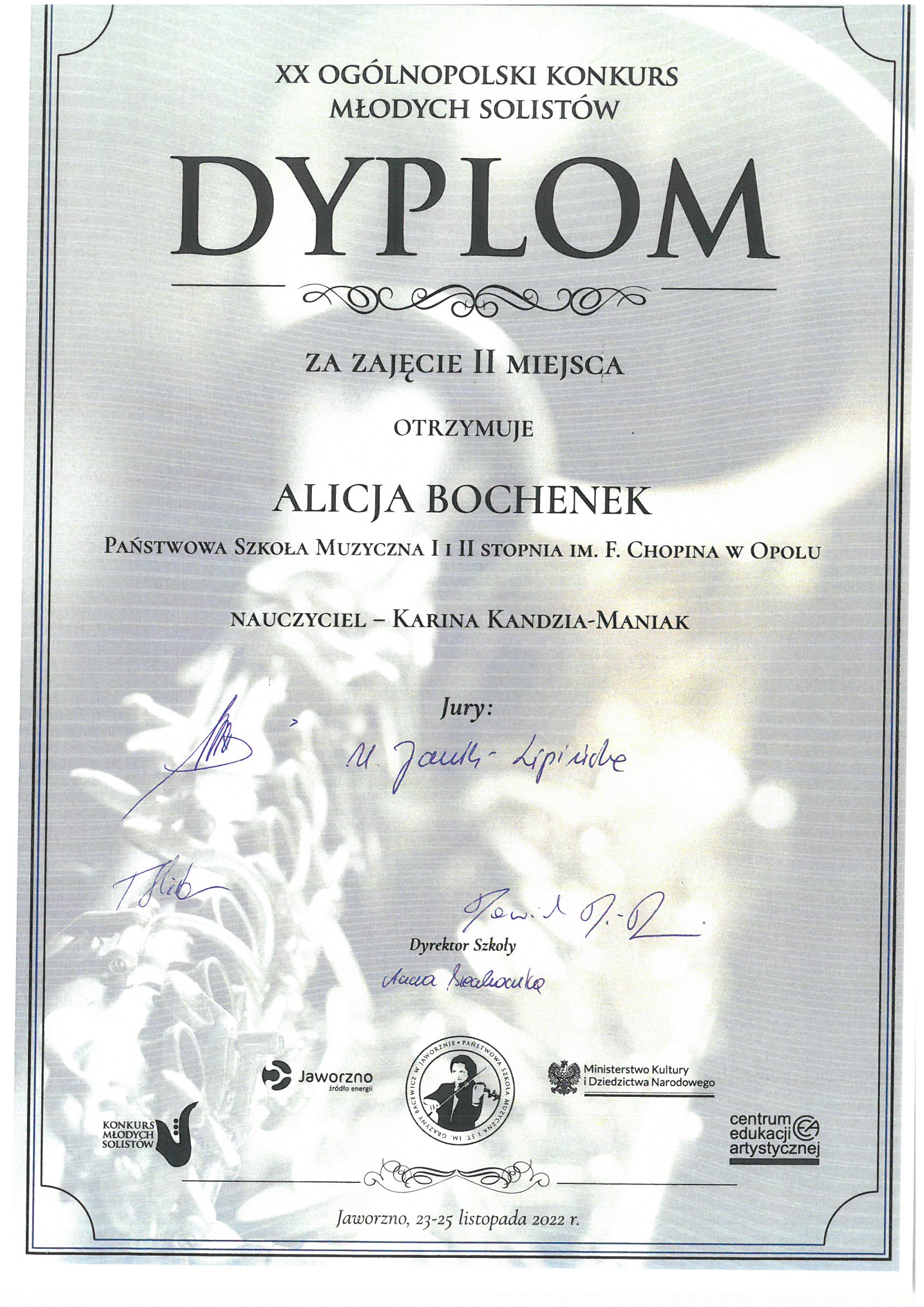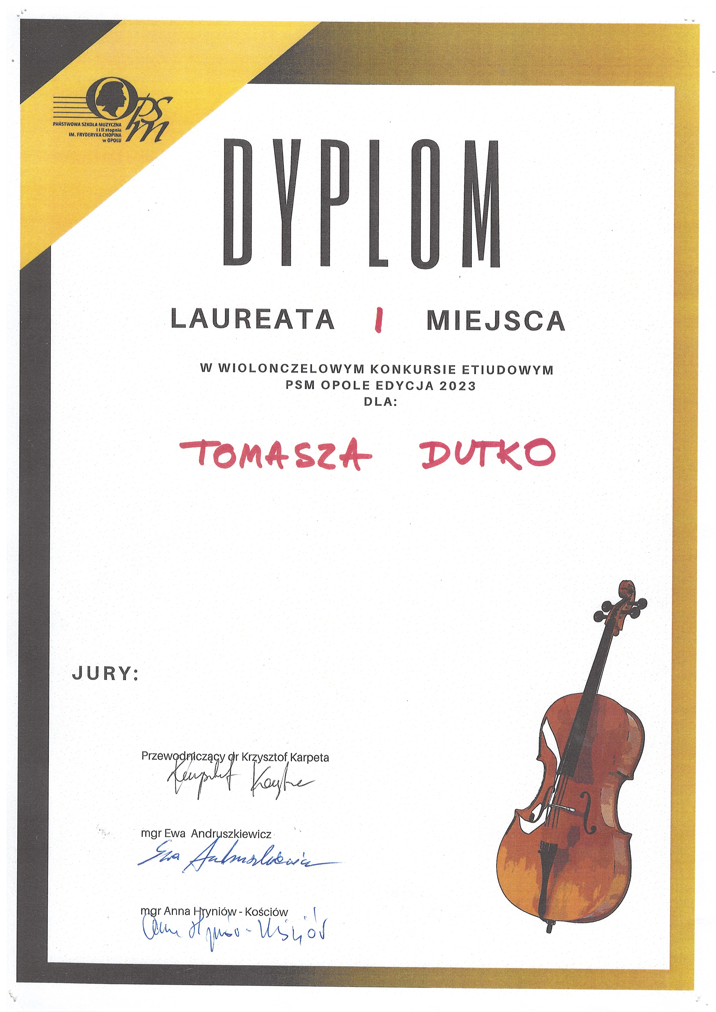 Poniżej galeria dyplomów uczniów Państwowej Szkoły Muzycznej I i II stopnia im. Fryderyka Chopina w Opolu