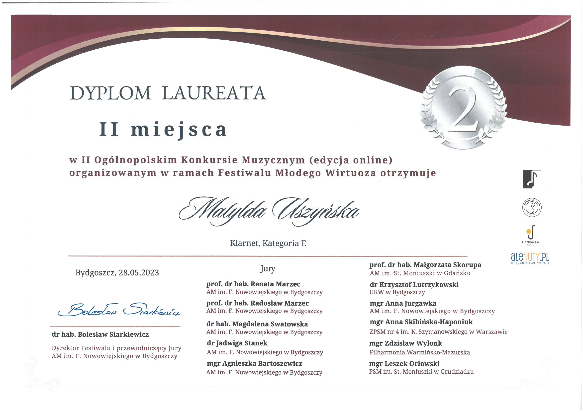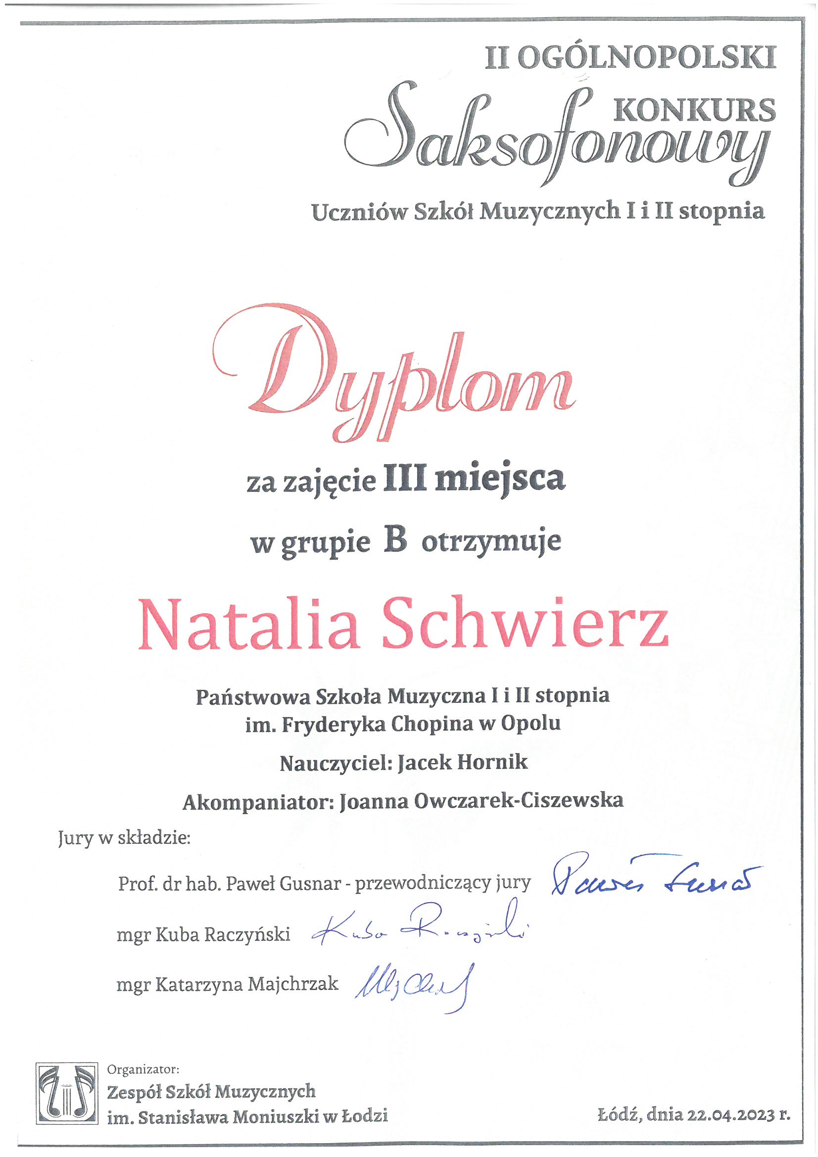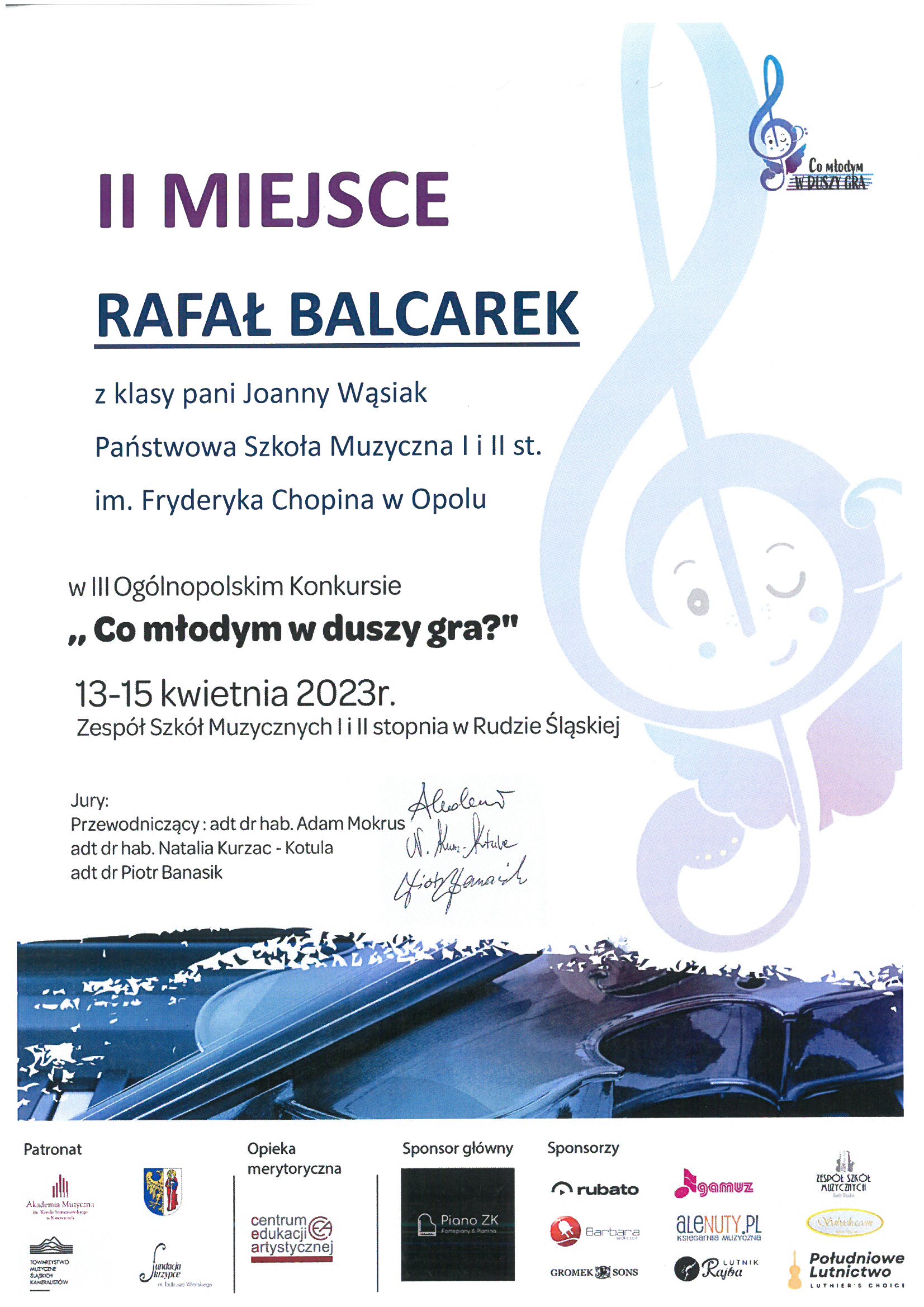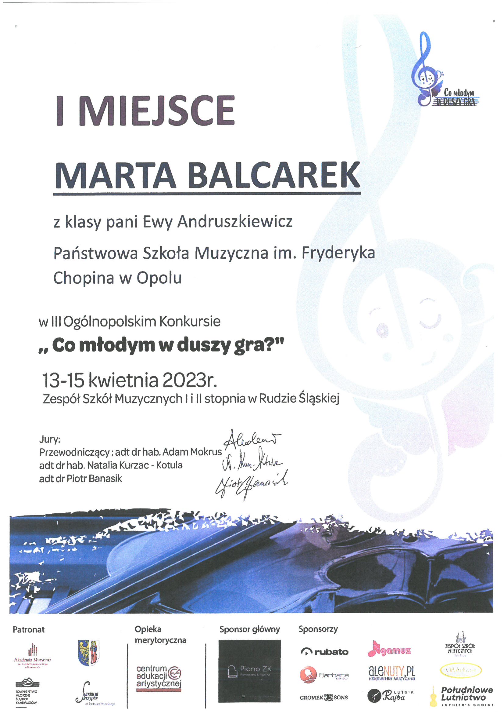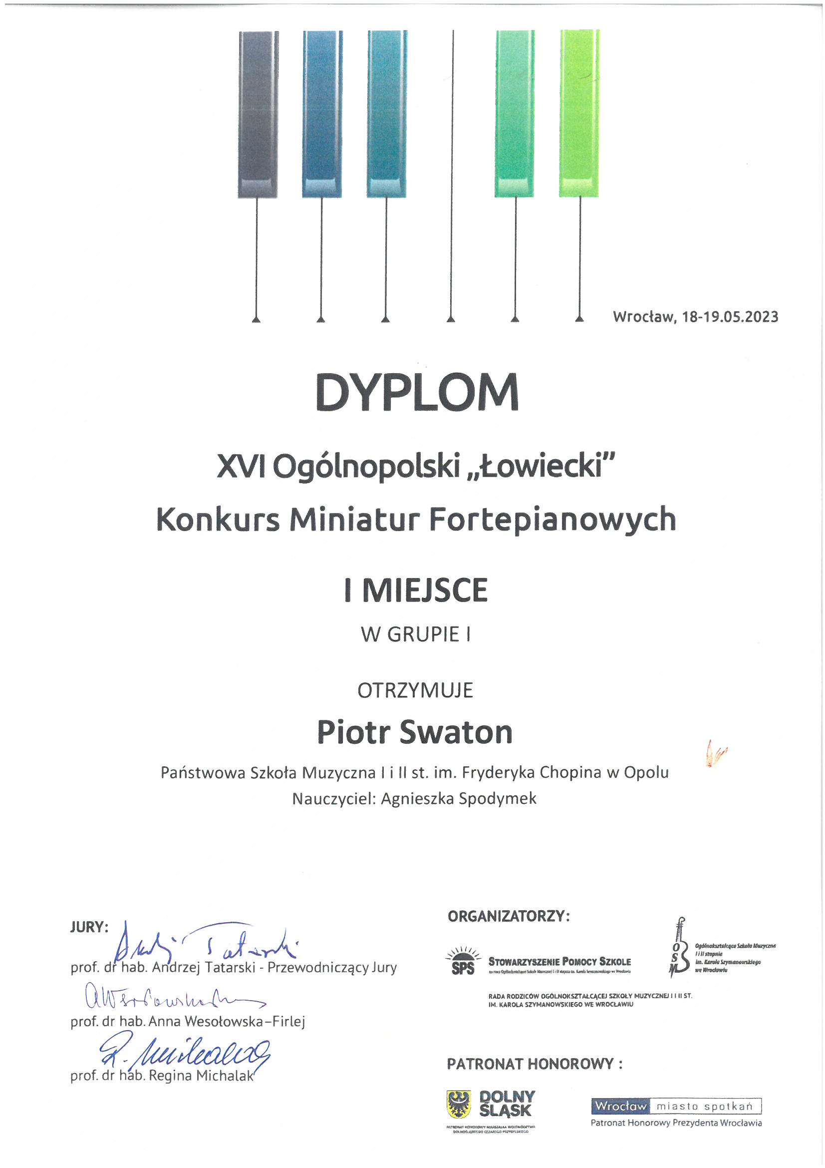 Poniżej galeria dyplomów uczniów Państwowej Szkoły Muzycznej I i II stopnia im. Fryderyka Chopina w Opolu