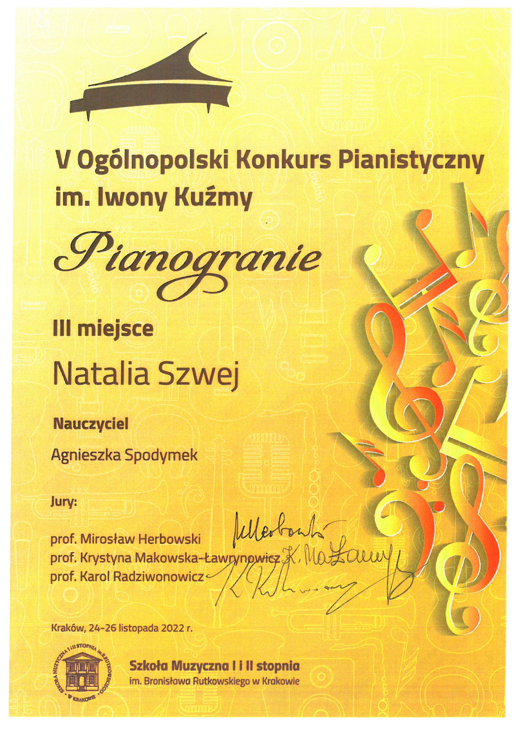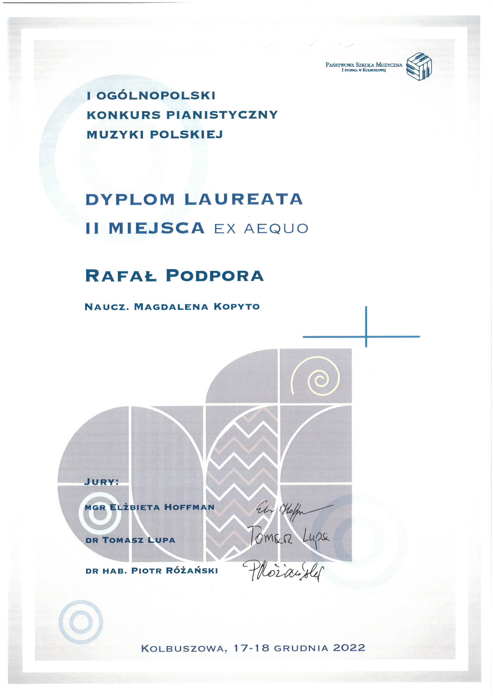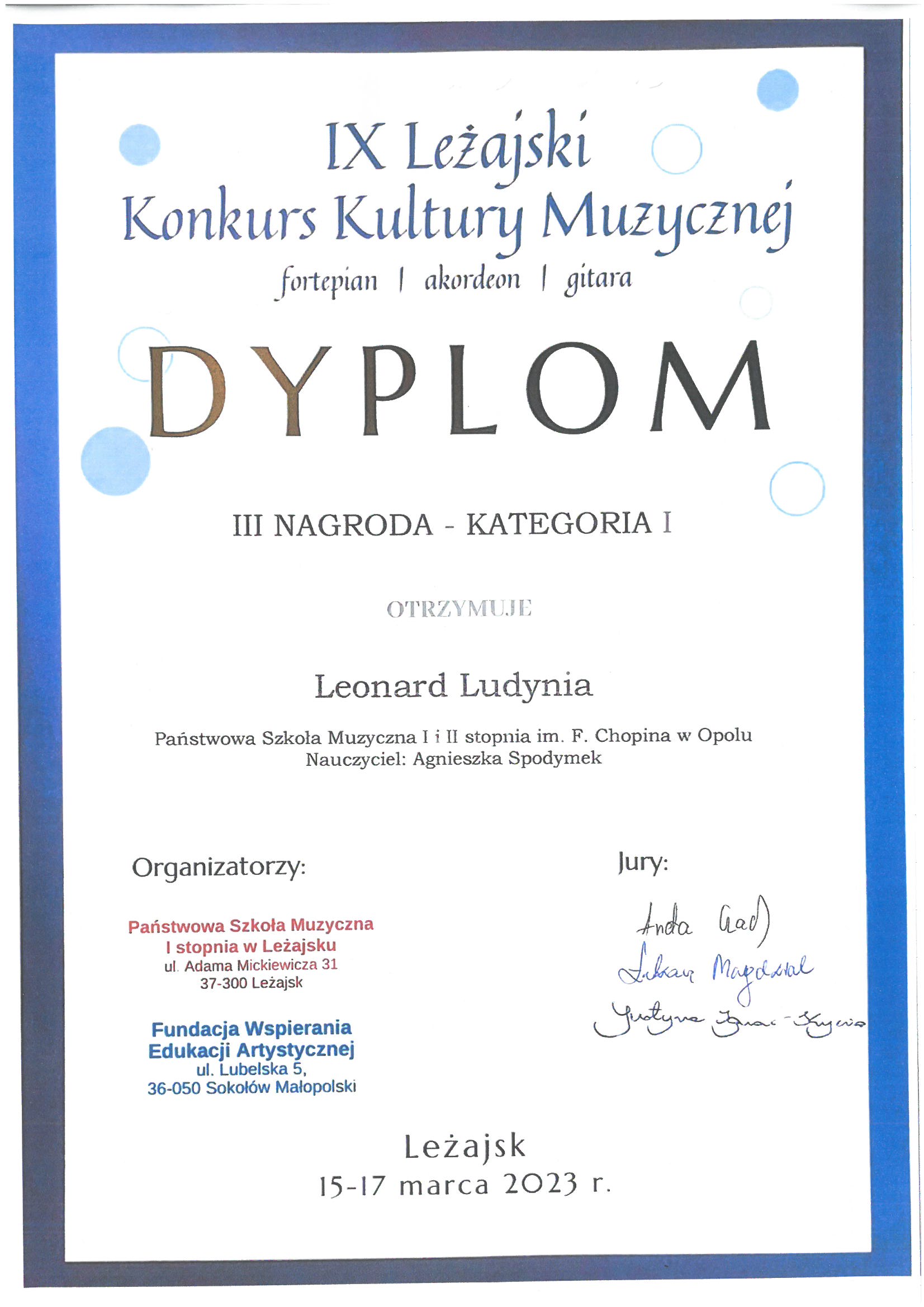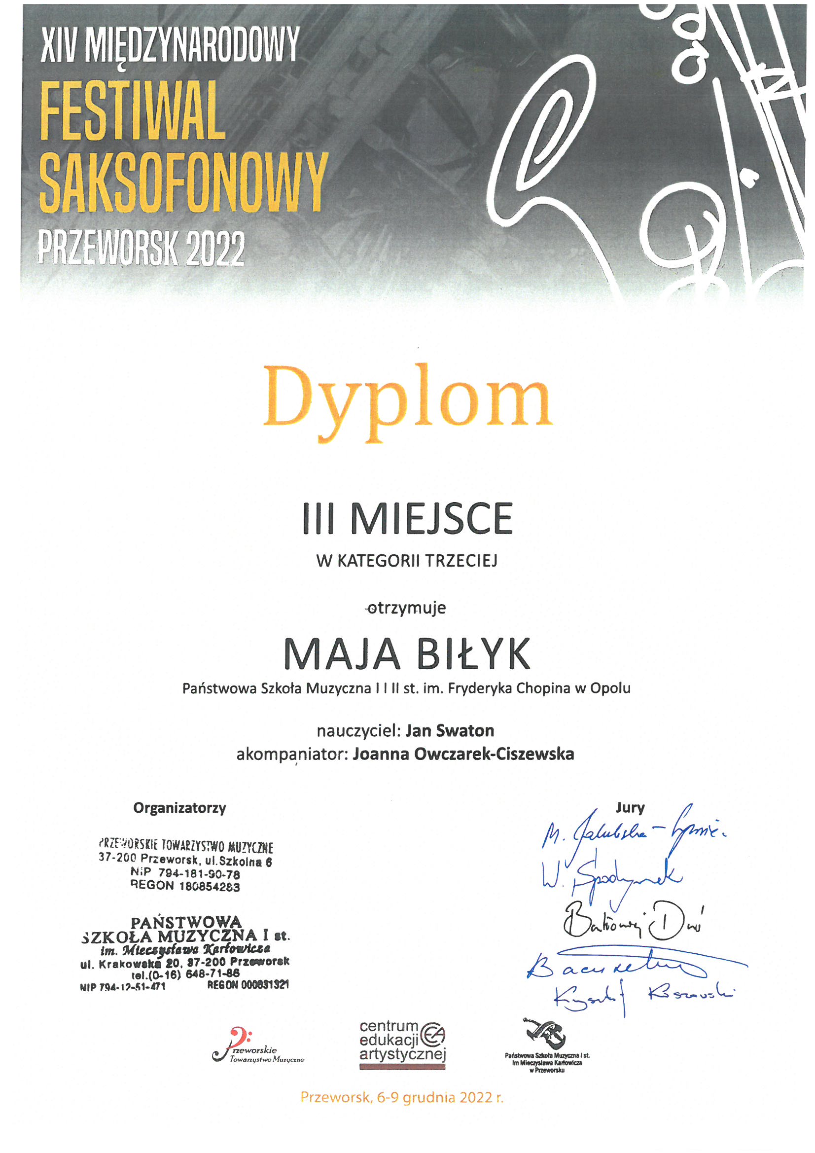 Poniżej galeria dyplomów uczniów Państwowej Szkoły Muzycznej I i II stopnia im. Fryderyka Chopina w Opolu