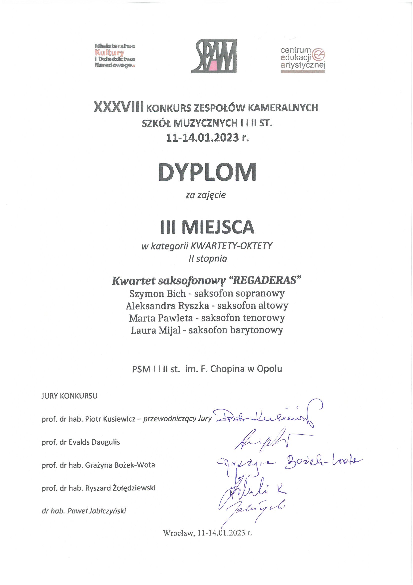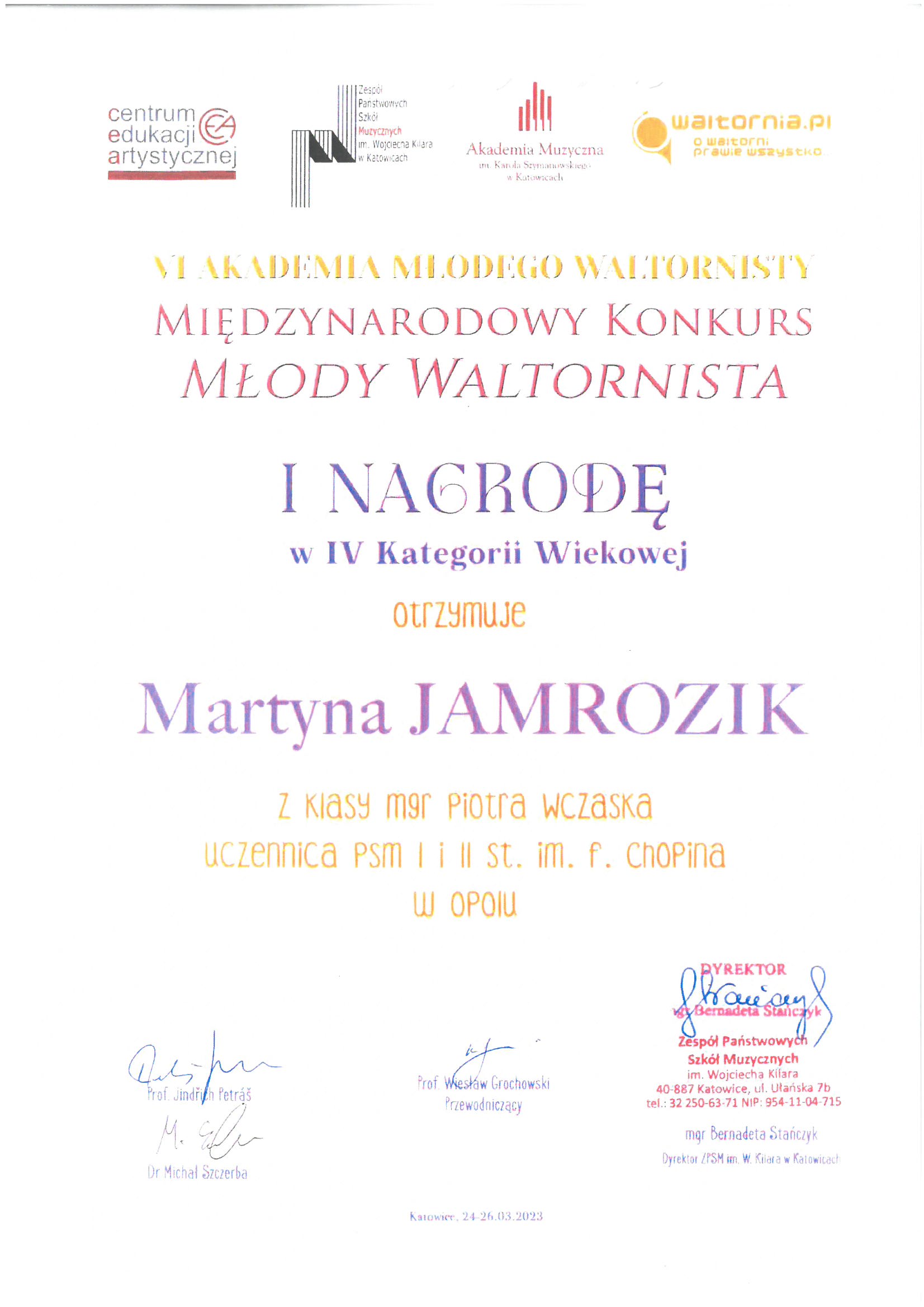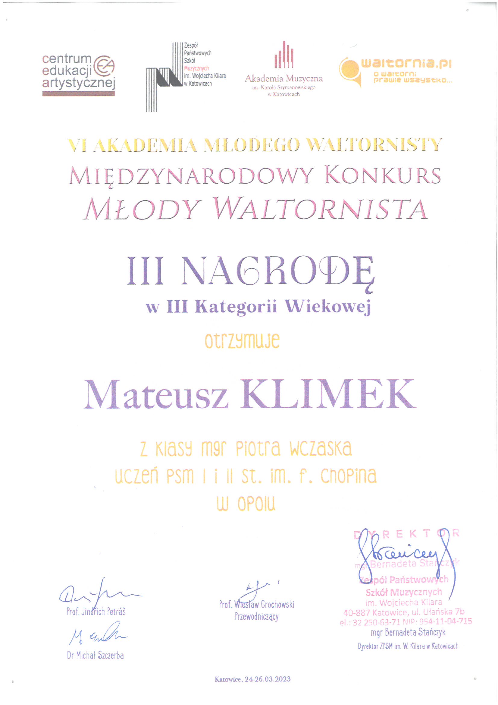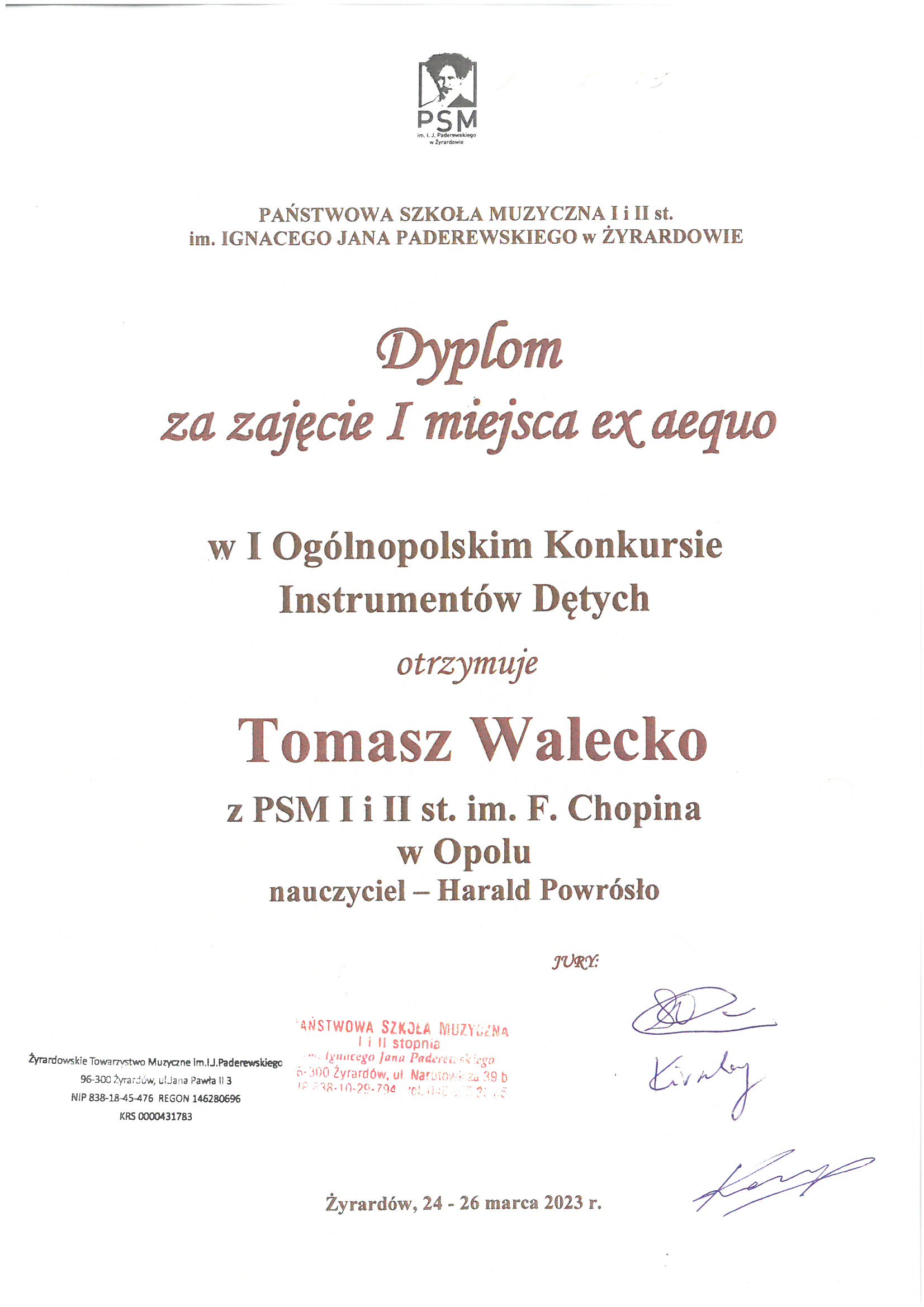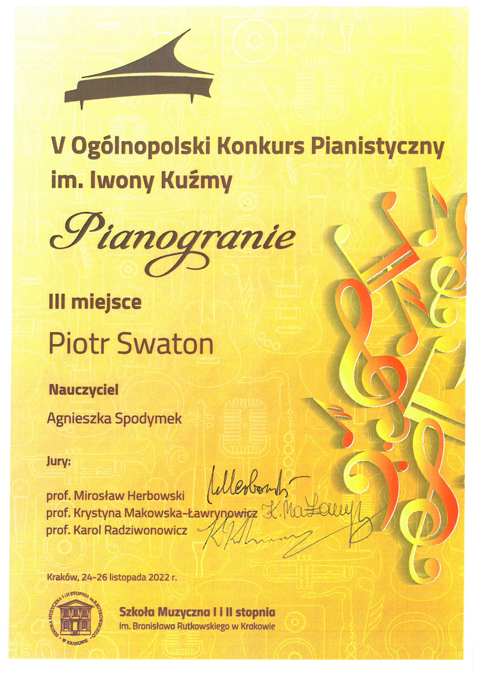 Poniżej galeria dyplomów uczniów Państwowej Szkoły Muzycznej I i II stopnia im. Fryderyka Chopina w Opolu