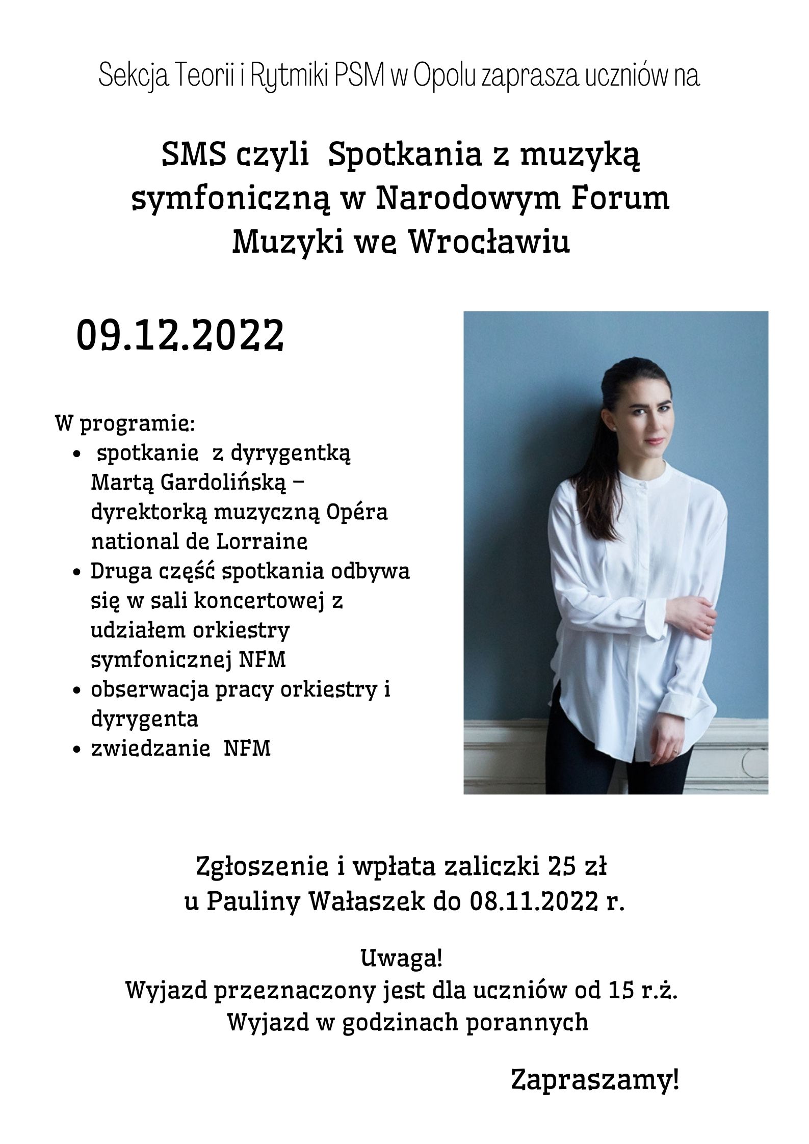 - spotkanie z dyrygentką Martą Gardolińską - dyrektorką muzyczną Opéra national de Lorraine
