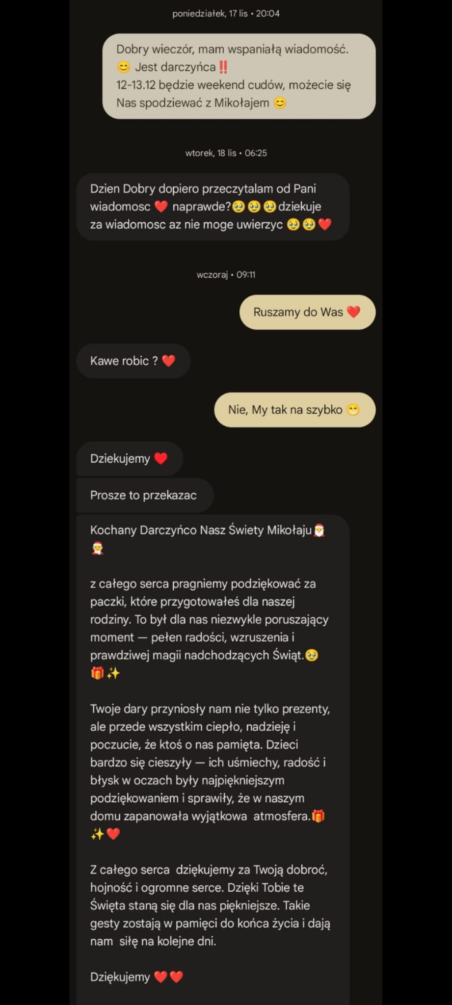 W ostatni weekend dobiegła końca zbiórka darów, w związku z udziałem naszej szkoły w ogólnopolskiej akcji SZLACHETNA PACZKA. Wybrana przez nas rodzina, otrzymała wszystko o co prosiła!!! Wszystko spakowaliśmy w 20 pudeł, do tego należy doliczyć jeszcze 3 biurka. W tym miejscu chcielibyśmy bardzo podziękować wszystkim darczyńcom: pracownikom szkoły, uczniom oraz ich rodzicom - jesteście wspaniali. Zapraszamy do obejrzenia krótkiej fotorelacji z tego wydarzenia. Szczególnie polecamy ostatnie zdjęcie, na którym są podziękowania rodziny Pani Blanki i Pana Kamila dla naszej społeczności. Uwaga: mogą pojawić się łzy wzruszenia...