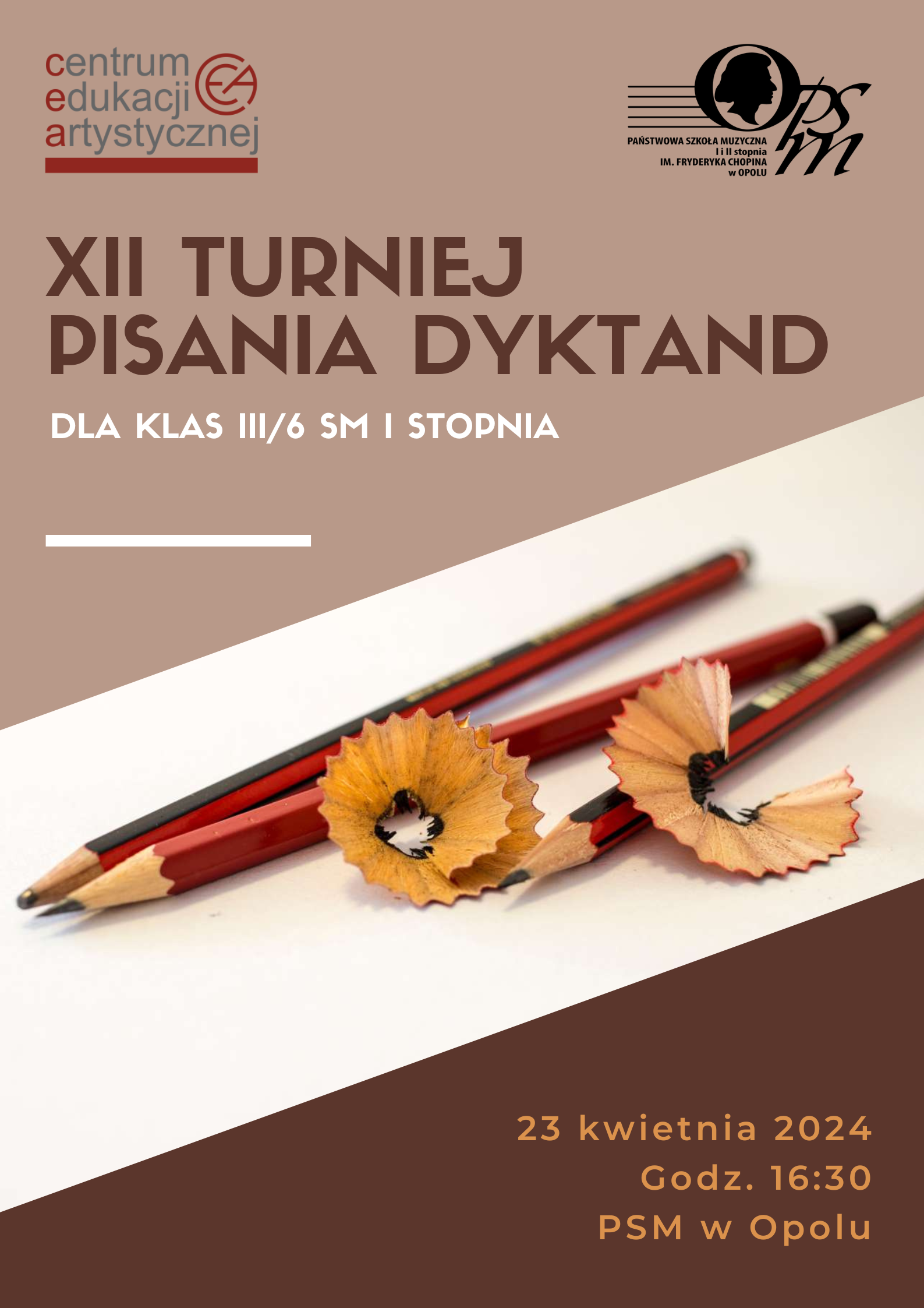 Zapraszamy do wzięcia udziału w XII Turnieju Pisania Dyktand adresowanym do uczniów klas III cyklu sześcioletniego szkół muzycznych I stopnia.