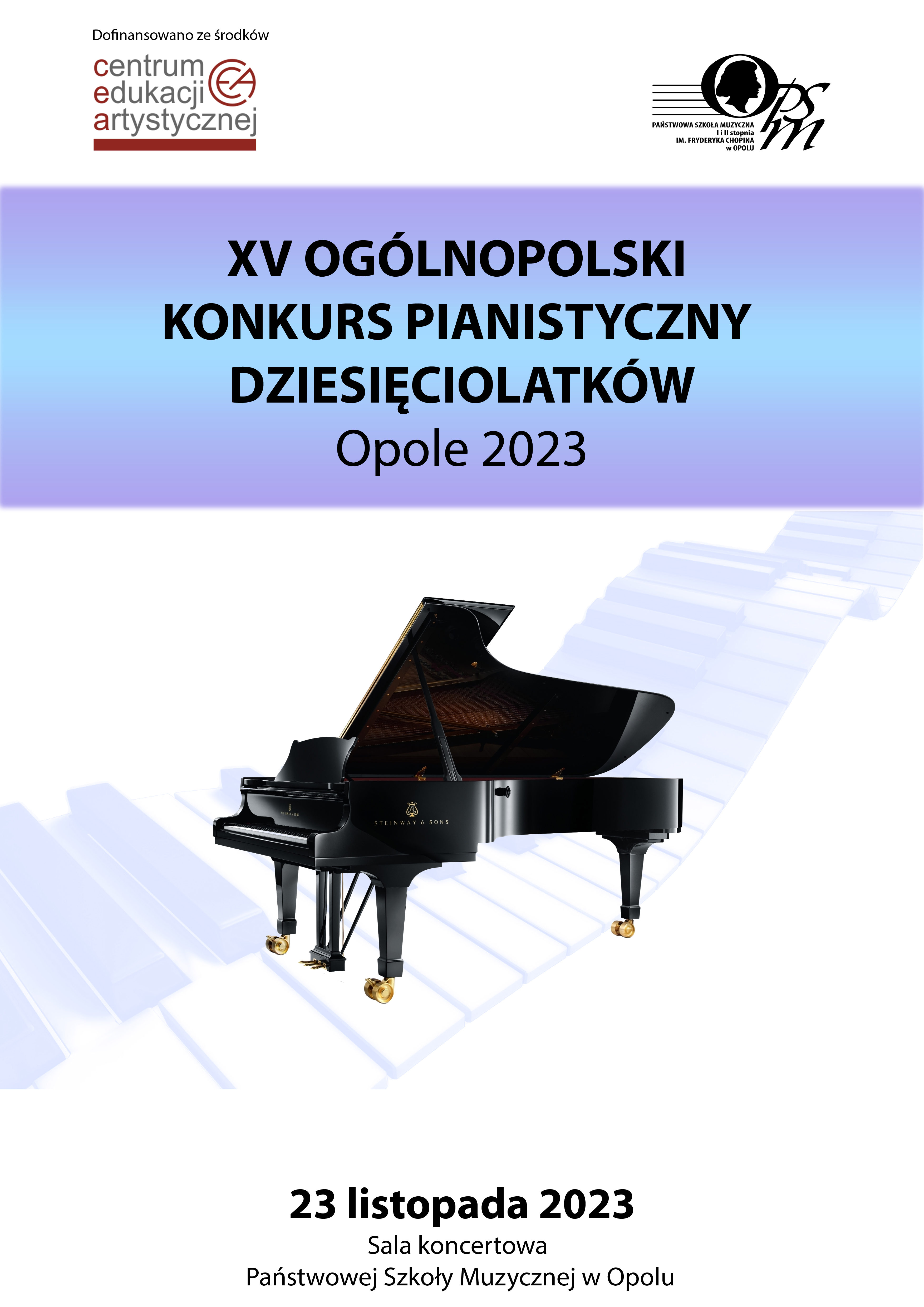 XV Ogólnopolski Konkurs Pianistyczny Dziesięciolatków adresowany jest do wszystkich uczniów klas fortepianu SM I st., urodzonych w roku 2013. Impreza ta stwarza możliwość konfrontacji osiągnięć artystycznych uczniów – rówieśników, obserwacji pedagogów poziomu umiejętności uczniów jednego rocznika z różnych ośrodków w Polsce oraz promocję utalentowanych uczniów. Jest również znakomitą formą doskonalenia zawodowego dla nauczycieli. Program konkursu umożliwia uczestniczenie w nim szerokiej grupie uczniów. Każdy uczestnik konkursu otrzymuje link do nagrania wszystkich prezentacji konkursowych oraz pamiątkowych zdjęć, a laureaci wartościowe pozycje nutowe.