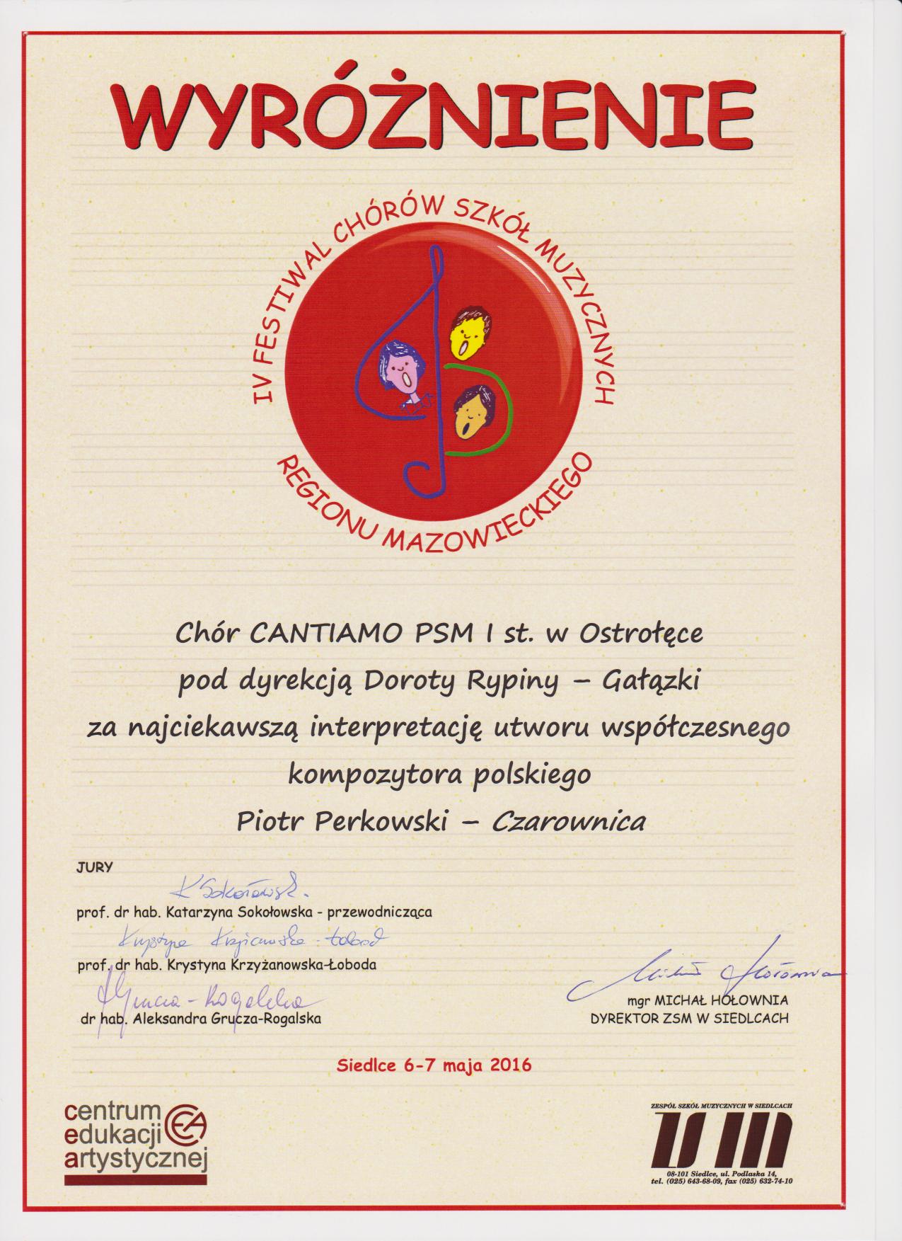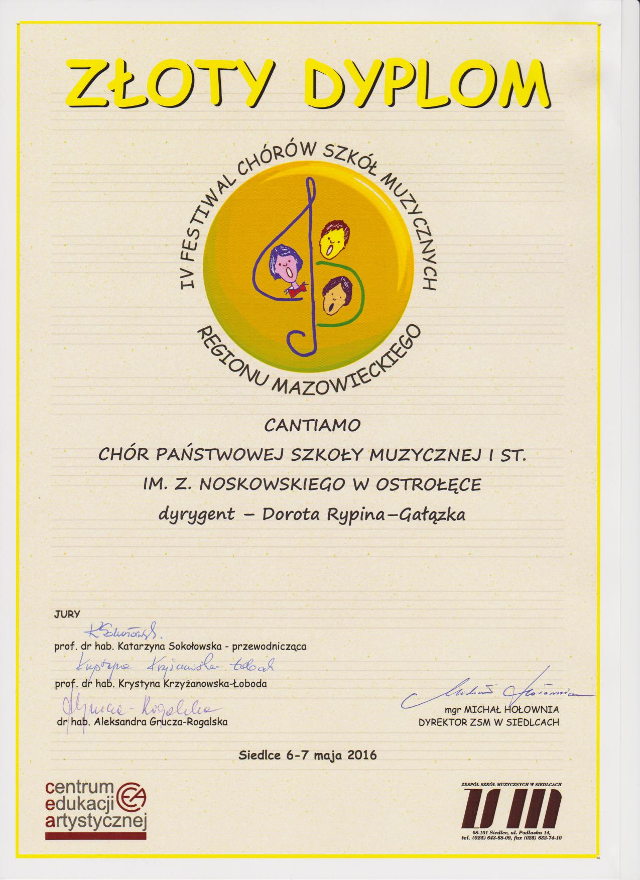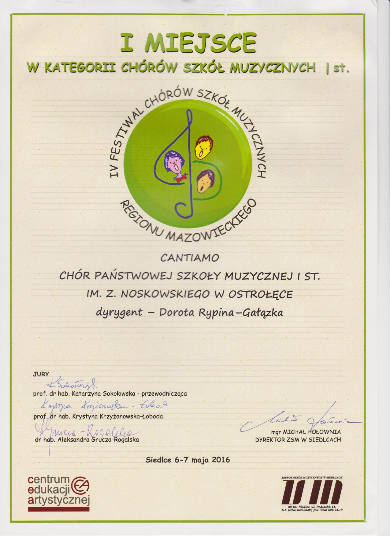 6-7 maja 2016 - IV Festiwal Chórów Szkół Muzycznych Regionu Mazowieckiego w Siedlcach