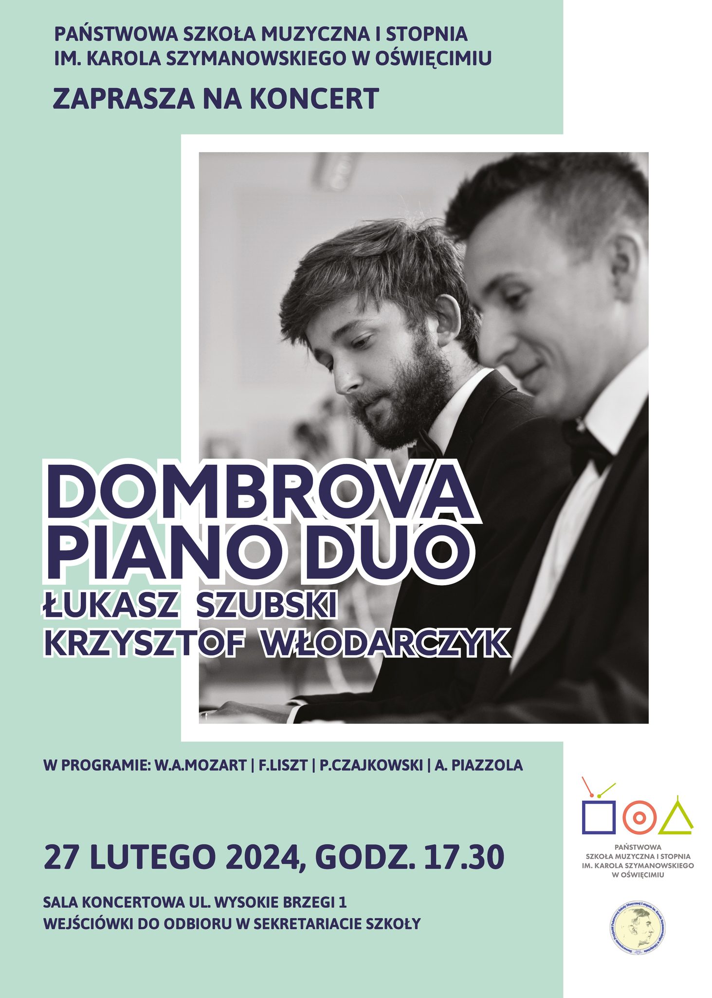 Zapraszamy serdecznie na koncert duetu fortepianowego DOMBROVA. Panowie zaprezentują program z gatunku muzyki klasycznej zaaranżowany na cztery ręce. Zapowiada się wieczór pełen dobrej muzyki i rozrywki. Wejściówki do odbioru w sekretariacie szkoły. Koncert 27 lutego 2024 r. o godzinie 17.30 w Sali Koncertowej ul. Wysokie Brzegi 1. Bądźcie ....bo warto!