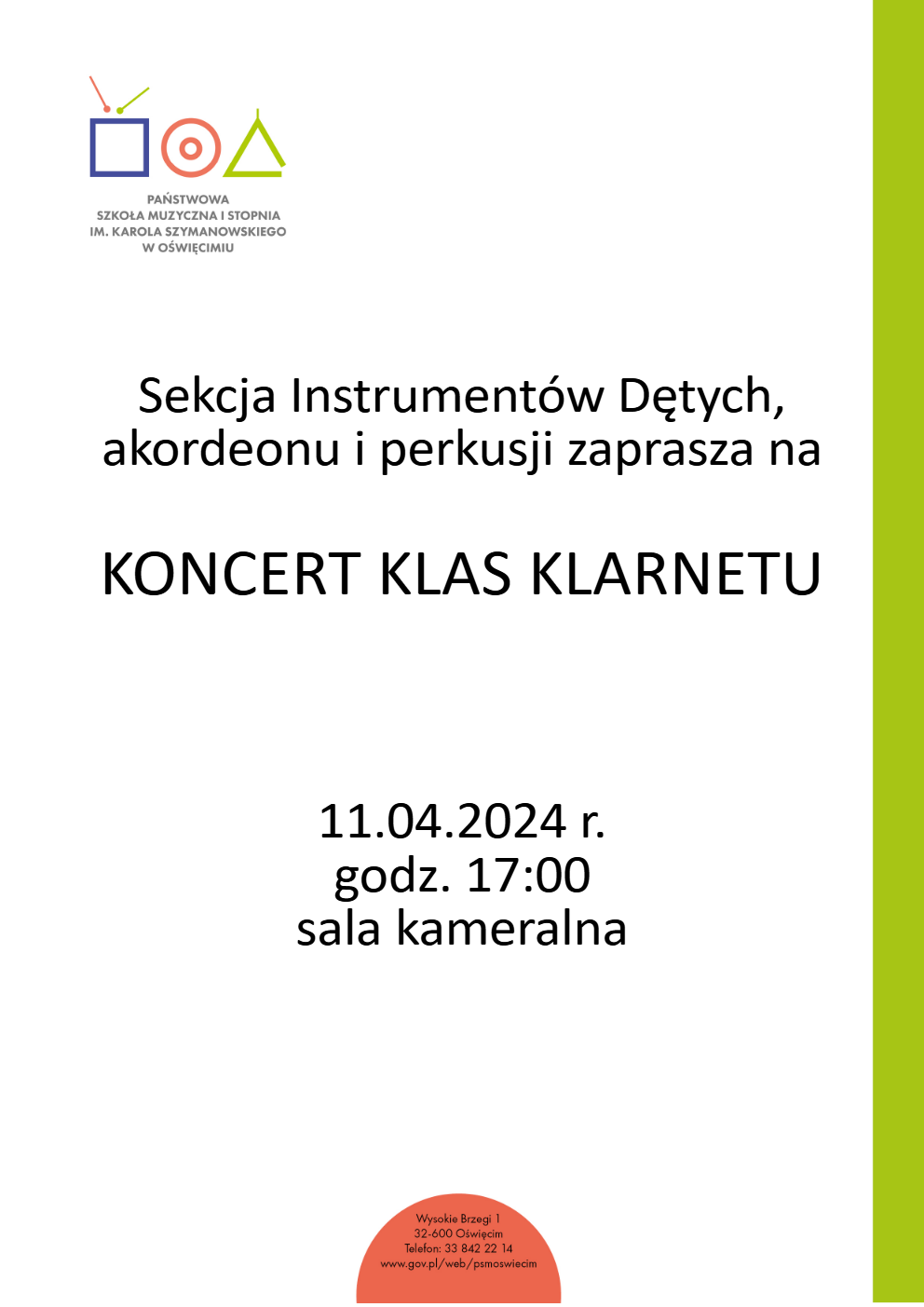 Serdecznie zapraszamy na koncert klas klarnetu, który będzie miał miejsce 11.04.2024r. o godz. 17:00 w sali kameralnej.