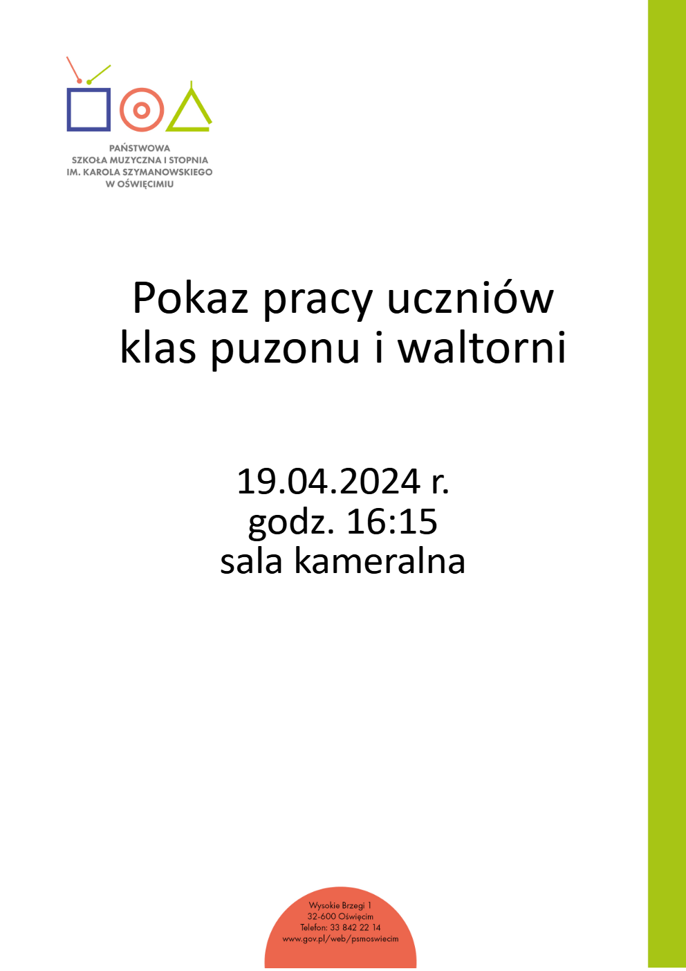 Serdecznie zapraszamy na pokaz pracy klas puzonu i waltorni. Będzie miał on miejsce 19.04.2024 o godz. 16:15 w sali kameralnej.