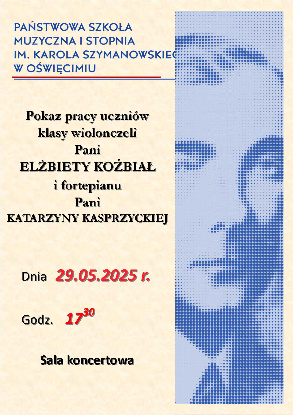 29 maja 2025 r. w sali koncertowej o godz. 17:30.
