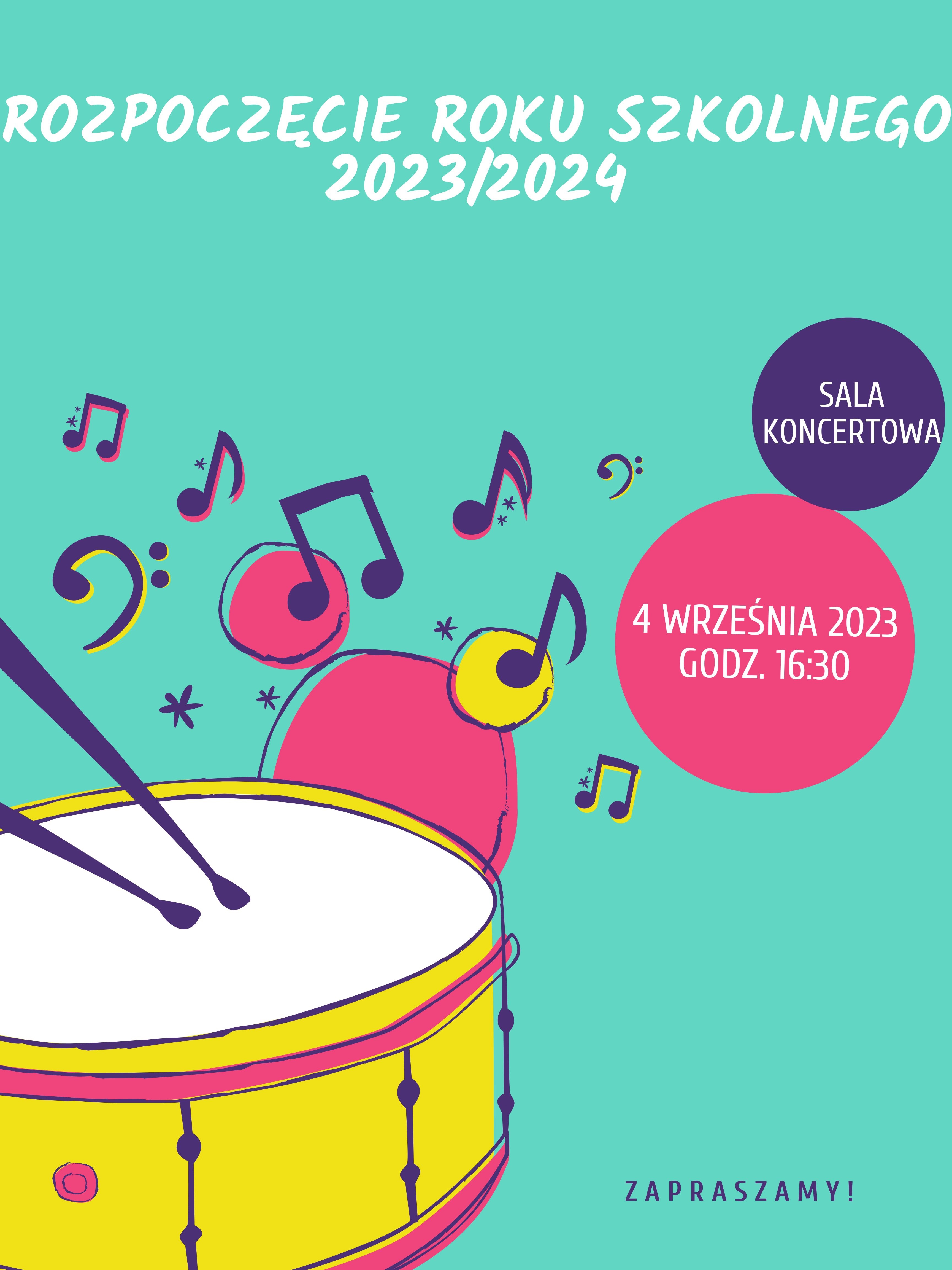 Dyrekcja Państwowej Szkoły Muzycznej I st. im. Karola Szymanowskiego w Oświęcimiu zaprasza na Uroczyste Rozpoczęcie Roku Szkolnego, które odbędzie się 4.09.2023 o 16:30 w sali koncertowej.