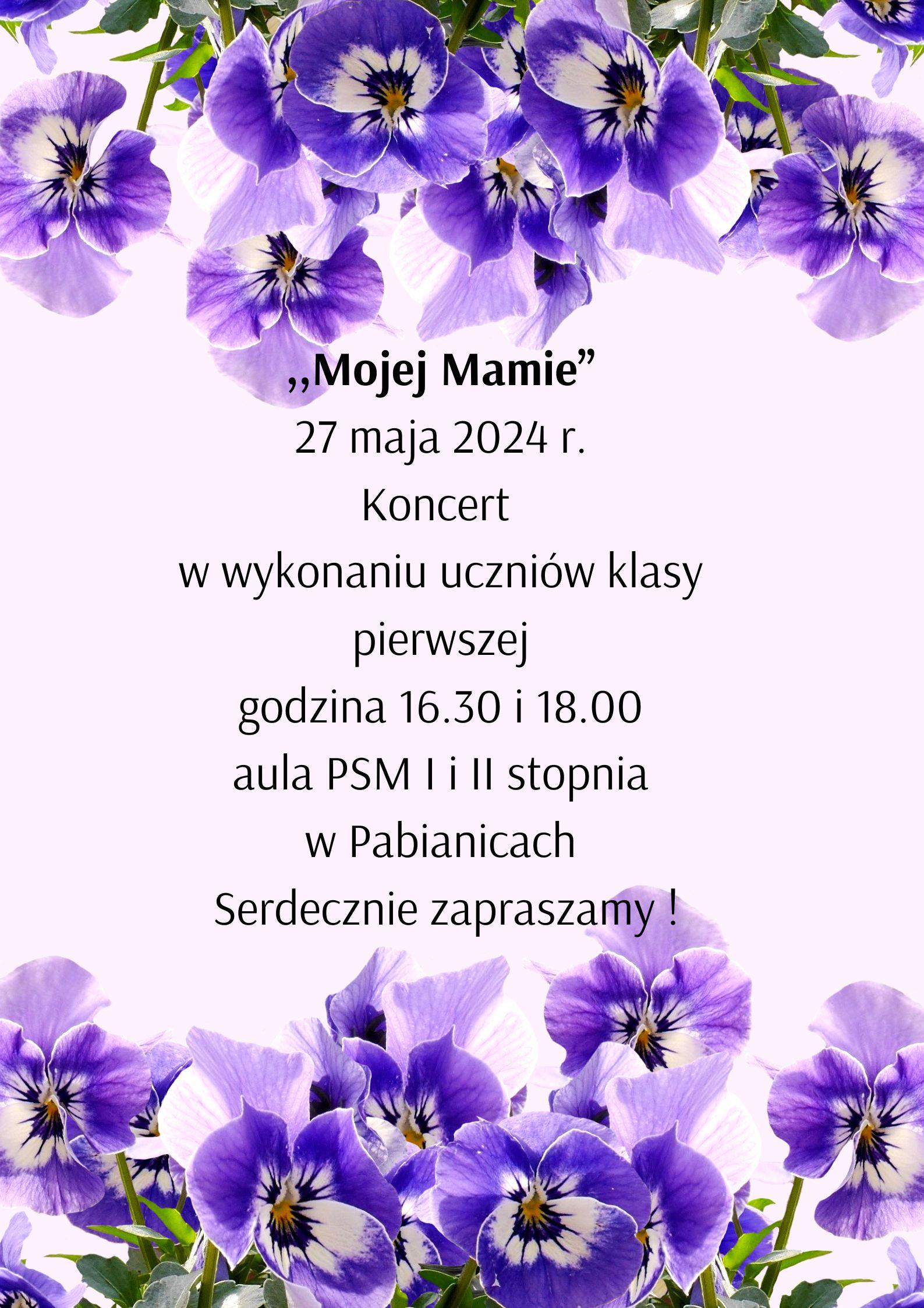 Państwowa Szkoła Muzyczna I i II st. w serdecznie zaprasza na koncerty "Mojej mamie" w wykonaniu uczniów klas pierwszych.