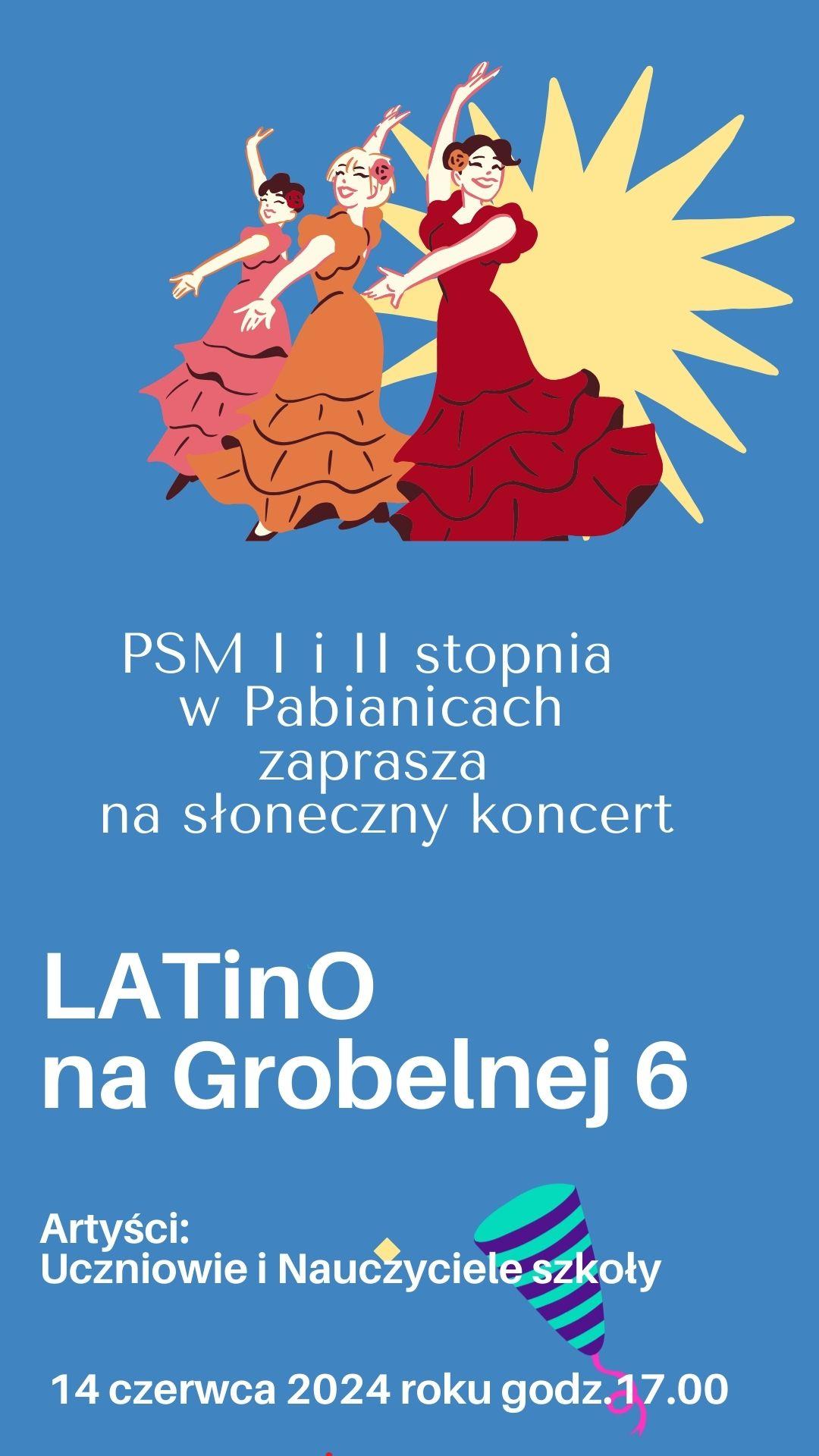 Uczniowie, nauczyciele i Rada Rodziców Państwowej Szkoły Muzycznej I i II stopnia w Pabianicach serdecznie zapraszają do wspólnej zabawy Latino na Grobelnej 6.