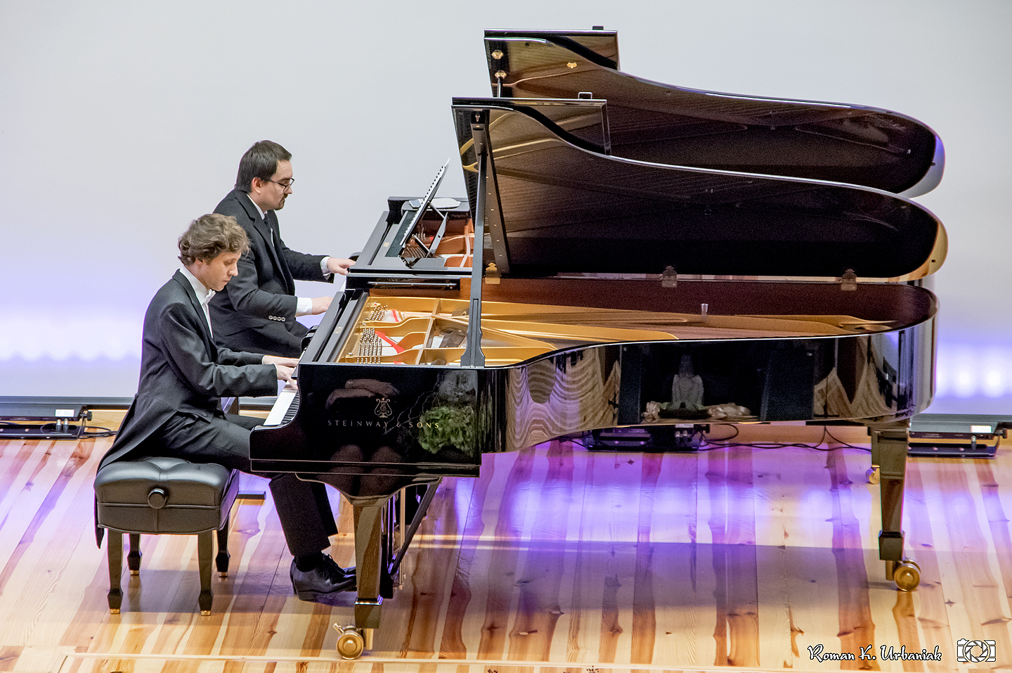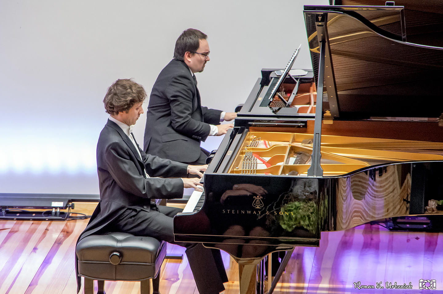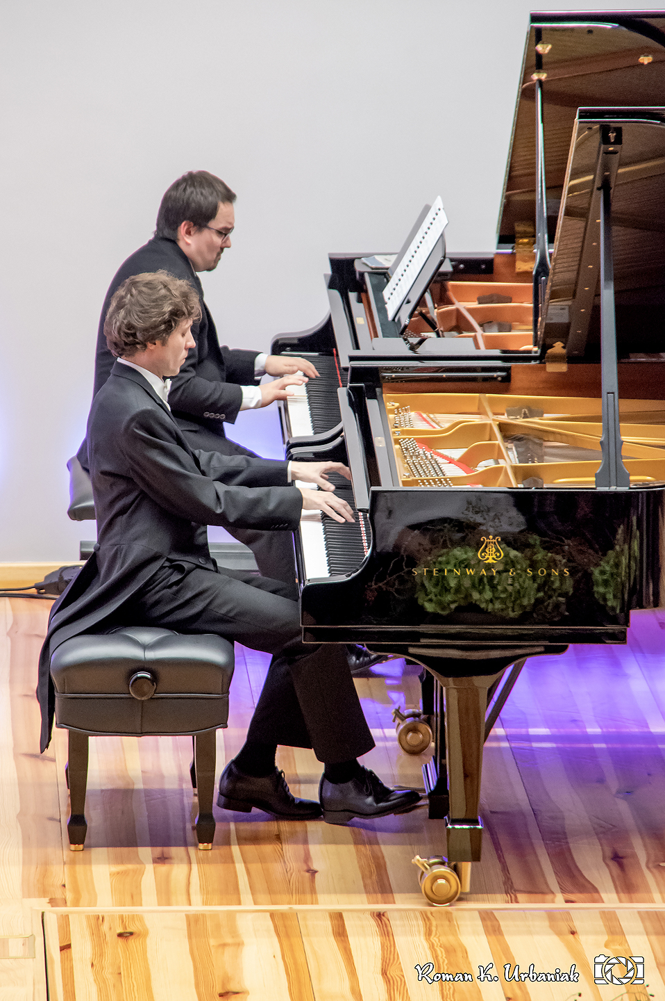 Magiczny wieczór Maestro rozpoczął od wykonania wspólnie z pianistą Maciejem Wotą Koncertu a-moll op. 54 Roberta Schumanna w wersji na dwa fortepiany. Niełatwa partia wyciągu orkiestrowego zabrzmiała na fortepianie Yamaha C7XPE z należytym wybrzmieniem i powagą, jaką zapisał w nutach kompozytor. Artyści idealnie znaleźli się w kameralnej wręcz formie, jaką stał się Koncert w wersji na 2 fortepiany. Obłędnie zabrzmiały szczególnie dialogi między głosami w drugiej części Intermezzo - Andantino grazioso.