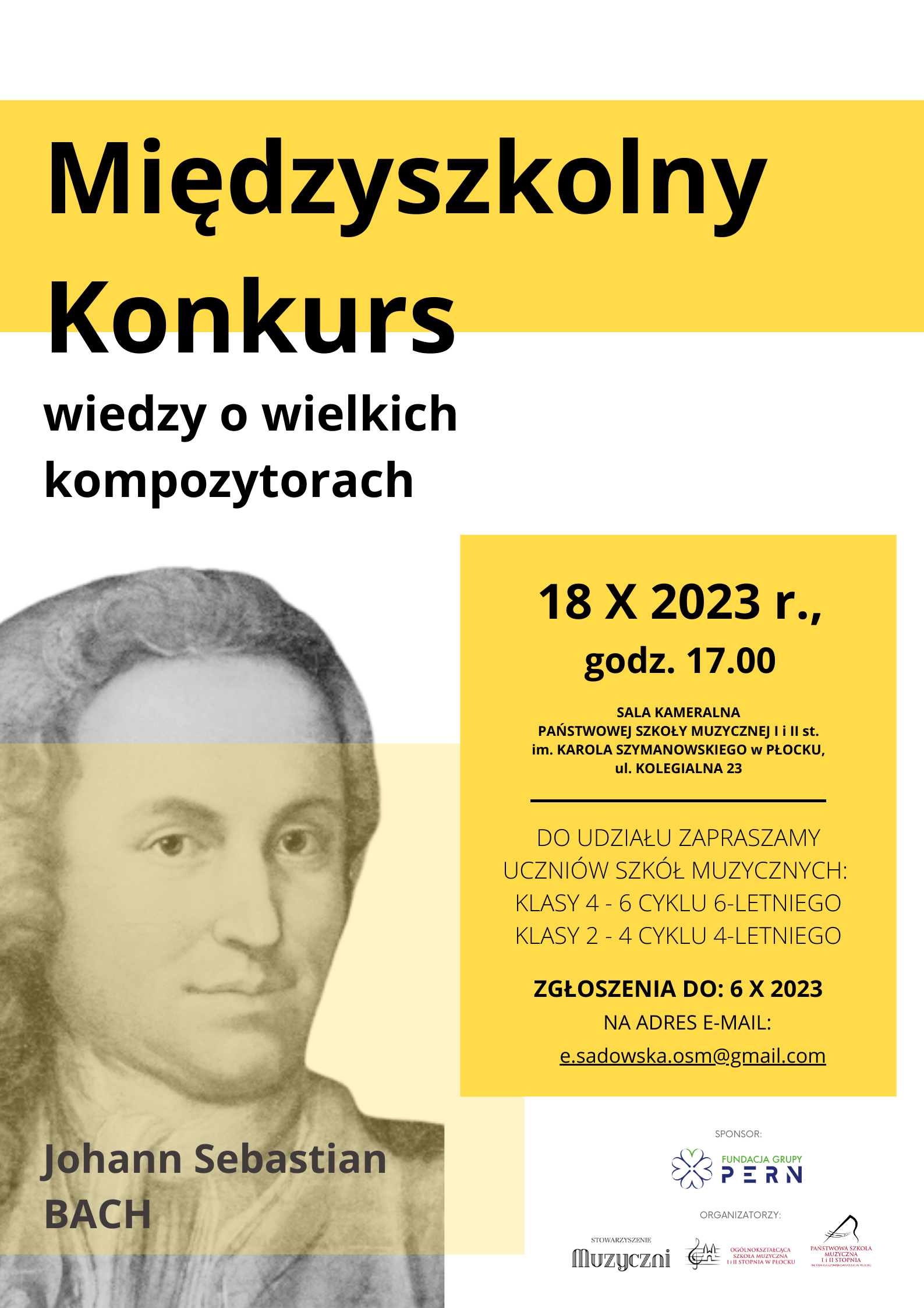 do udziału w Międzyszkolnym Konkursie Wiedzy o Wielkich Kompozytorach: Johann Sebastian Bach - życie i twórczość.