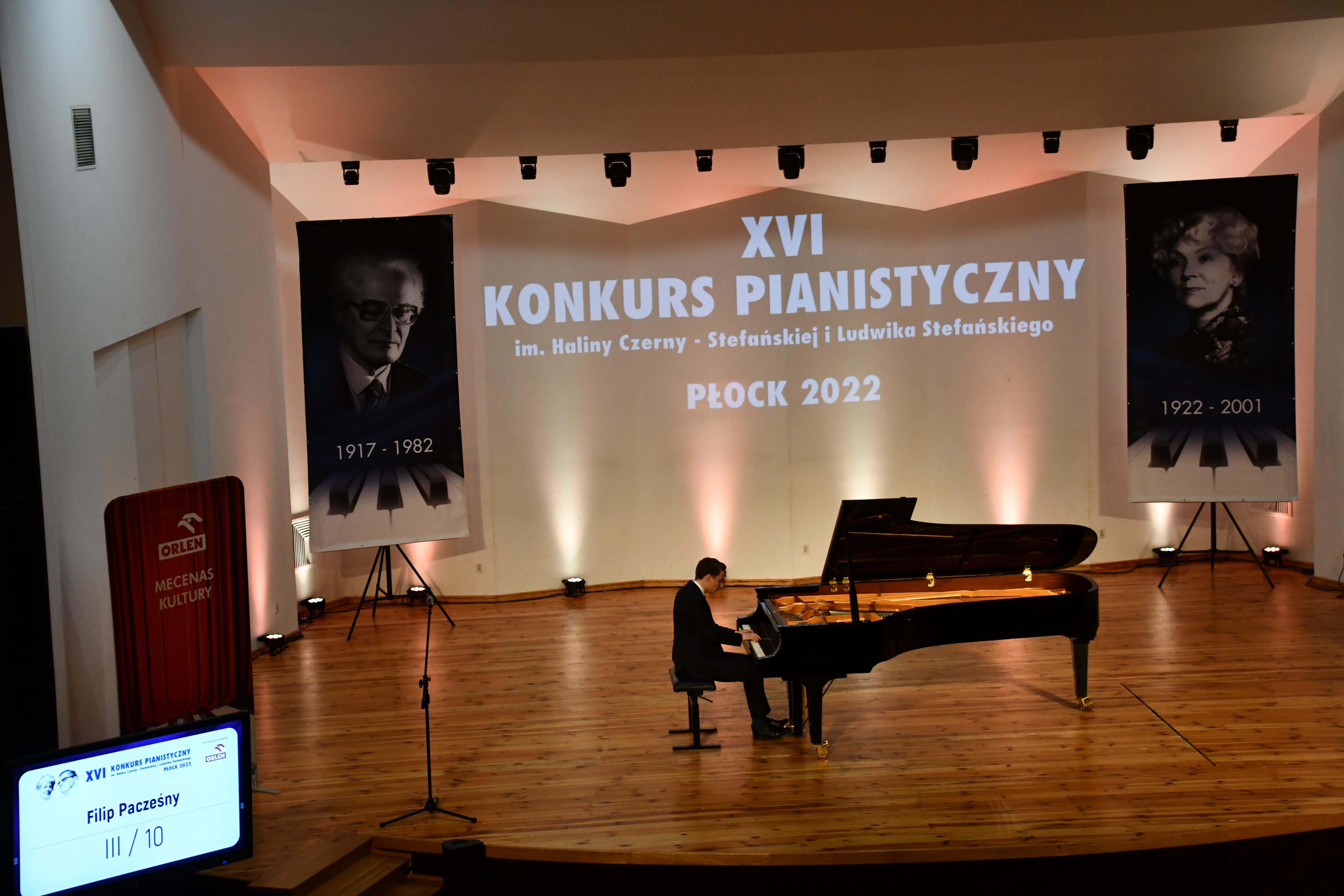 XVI edycję Konkursu Pianistycznego im. Haliny Czenry-Stefańskiej i Ludwika Stefańskiego nazwać już możemy historyczną... Zakończyła się w czwartek (1 grudnia 2022 r.), a wymiar miała – jak wspominaliśmy w zapowiedziach – szczególny. Nie tylko dlatego, że zbiegły się w tym roku dwie ważne rocznice: 100-lecie urodzin profesor Haliny Czerny-Stefańskiej oraz 40-lecie śmierci profesora Ludwika Stefańskiego, ale również dzięki temu, że wzięła w nim udział rekordowa liczba uczestników. Ze zgłoszonych siedemdziesięciukilku osób przed szacownym jury w składzie: prof. Elżbieta Stefańska (przewodnicząca), dr hab. Zofia Antes, prof. Elżbieta Tarnawska, Teruyuki Okada, prof. Hubert Rutkowski wystąpiło sześćdziesięcioro pięcioro młodych pianistek i pianistów, którzy prezentowali się w czterech grupach wiekowych. Najliczniej reprezentowana była grupa I – najmłodsza (dwadzieścioro sześcioro pianistów, w wieku maksymalnie 13 lat i młodszych – najmłodszy uczestnik miał 8 lat), występująca pierwszego dnia. Programy w tej grupie trwały od 10 do15 min. i obowiązkowo musiały zawierać, oprócz kompozycji wybranych przez uczestnika, dowolny utwór z epoki baroku oraz autorstwa Fryderyka Chopina. Drugi dzień należał do 14- i 15-latków (grupa II), którzy oprócz wybranych przez siebie popisowych dzieł, zaprezentować musieli obowiązkowo jeden utwór Jana Sebastiana Bacha i jeden Fryderyka Chopina, mieszcząc się w widełkach czasowych 15-20 min. I już dla każdej z kolejnych dwóch grup ta obowiązkowa część programu była obligatoryjna. W grupie II zaprezentowało się piętnaścioro uczestników – porównywalnie z grupą III, w której ostatecznie z osiemnaściorga pianistów wystąpiło przed jurorami trzynaścioro. Grali oni programy mieszczące się w czasie 20-25 min., słuchacze mieli więc przestrzeń by rozsmakować się w tych znakomitych wykonaniach 16- i 17-latków. Grupa IV – najstarsza – reprezentowana była namniej licznie (jedenaścioro wykonawców), grała jednak programy półgodzinne, co z pewnością było równie wymagające dla jurorów, jak przesłuchania z dnia pierwszego, tym bardziej, że 19-latkowie prezentowali już wykonania o wiele dojrzalsze, wskazujące na większą świadomość kształtowania formy, wymagające baczniejszego wsłuchania się niuanse gry. Wykonawcy prezentowali bardzo różny jej sposób, co jak wspominała prof. Stefańska w wywiadzie dla Polskiego Radia Chopin, zawsze jest niezwykle ciekawe. Niektórzy mieli już bardzo wirtuozowskie zacięcie, ale byli też tacy uczestnicy, którzy głęboko wchodzili w styl i bardzo pięknie grali i Bacha, i Mozarta, a i Chopin został kilka razy wspaniale zaprezentowany.