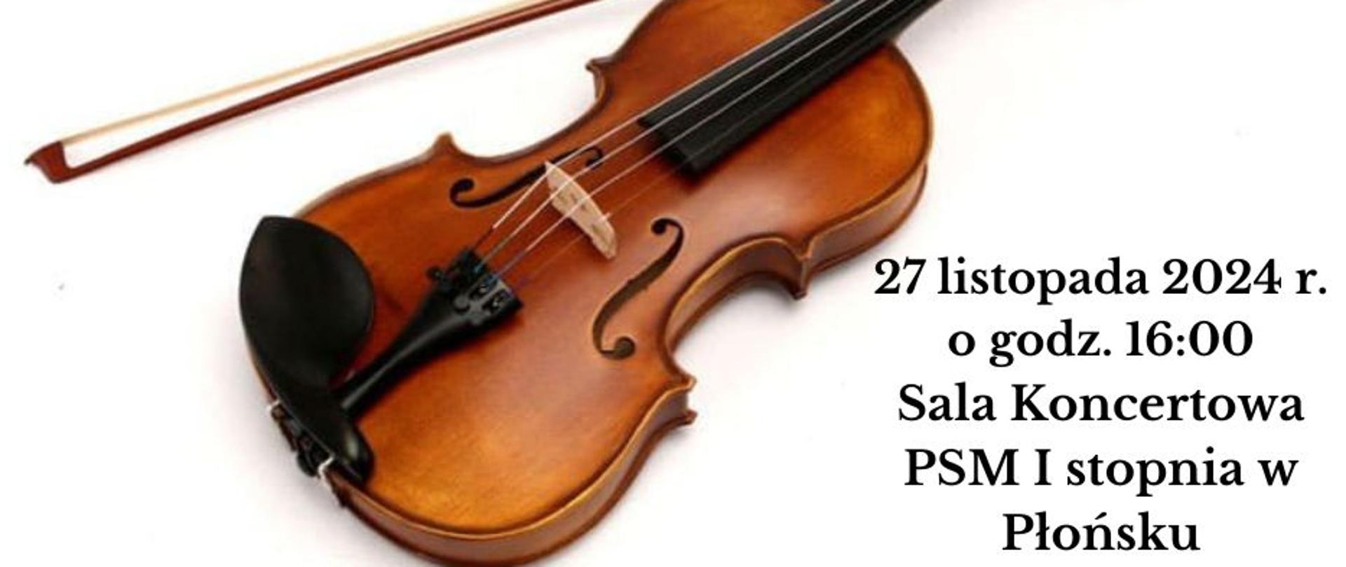 Serdecznie zapraszamy na aducję klas skrzypiec Pani Renaty Rudnickiej i Pani Iwony Siwiec w środę 27 listopada 2024 r. o godzinie 16:00 w Sali koncertowej Państwowej Szkoły Muzycznej I stopnia w Płońsku.