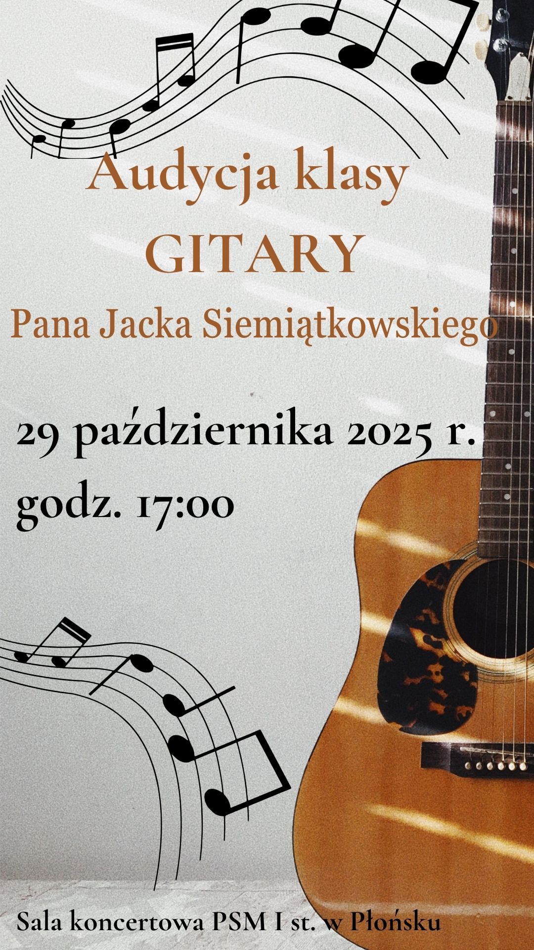 Serdecznie zapraszamy w najbliższą środę 29 października 2025 r. o godzinie 17:00 na Audycję klasy gitary Pana Jacka Siemiątkowskiego.