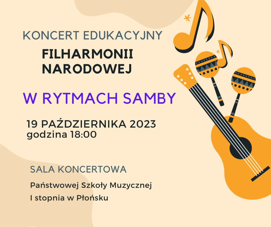 Serdecznie zapraszamy na Koncert w wykonaniu artystów Filharmonii Narodowej, który odbędzie się w dniu 19 października 2023 roku o godz. 18:00 w sali koncertowej Państwowej Szkoły Muzycznej I st. w Płońsku.