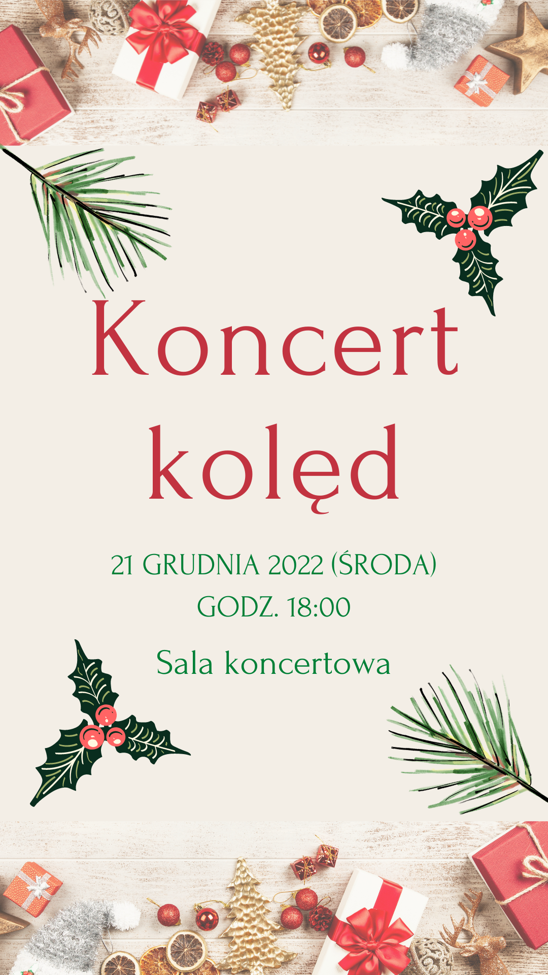 Zaprszamy na Koncert kolęd 21 grudnia 2022 (środa) godz. 18:00. Sala koncertowa.