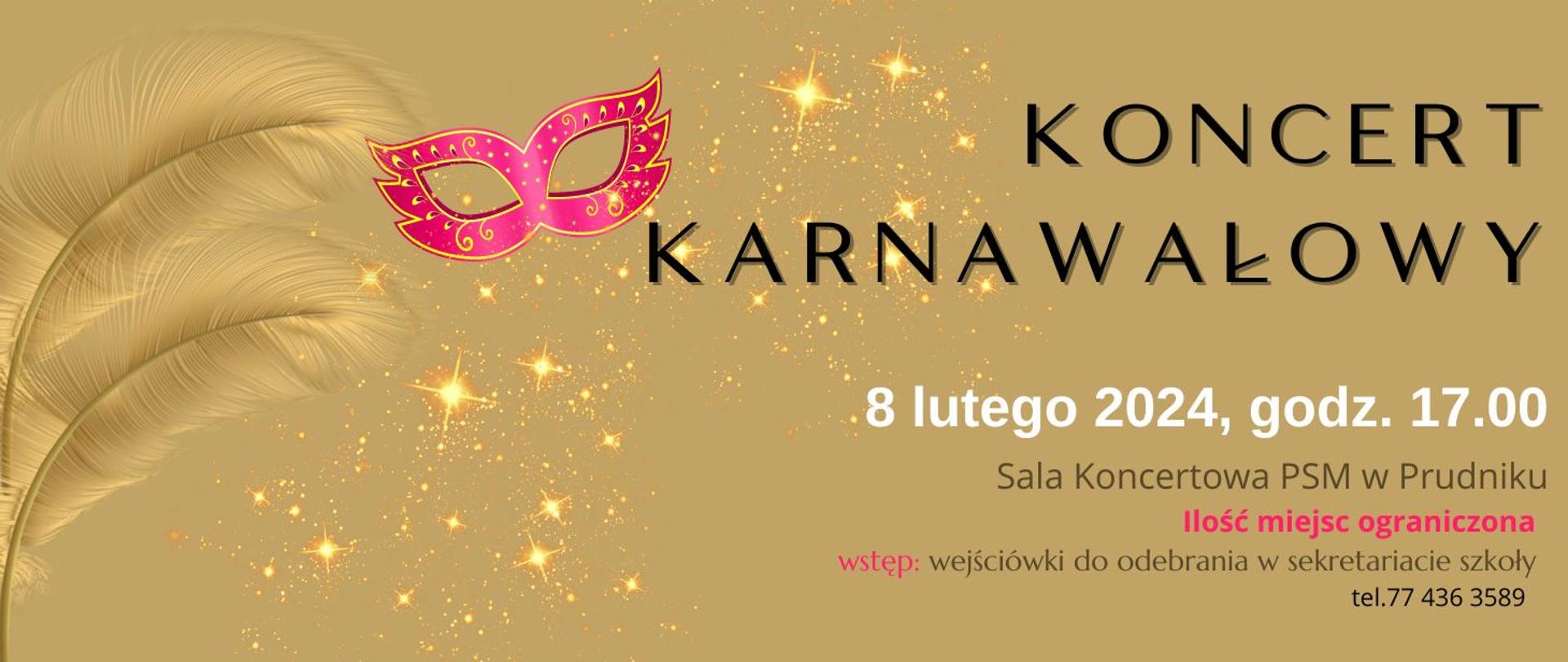 Państwowa Szkoła Muzyczna I stopnia im. Karola Szymanowskiego w Prudniku oraz Stowarzyszenie Przyjaciół Szkoły Muzycznej w Prudniku serdecznie zapraszają na 'Koncert Karnawałowy", w którym wystapią nauczyciele Szkoły, ich goście oraz Orkiestra Instrumentów Dętych PSM I i II st. w Nysie.
