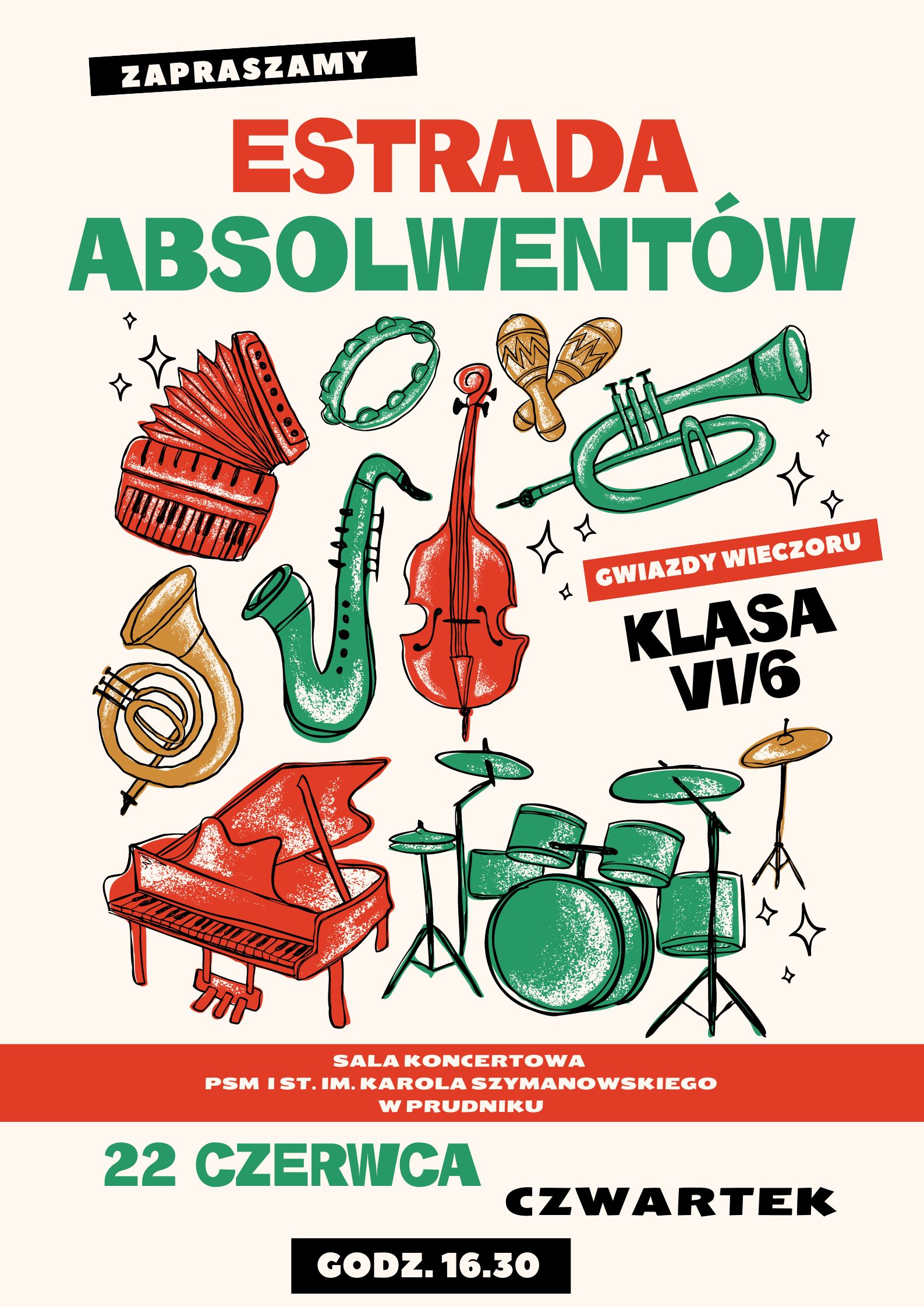 23 czerwca br. o godz. 16.30 zapraszamy na koncert uczniów klasy VI cyklu 6-letniego Estrada absolwentów.
