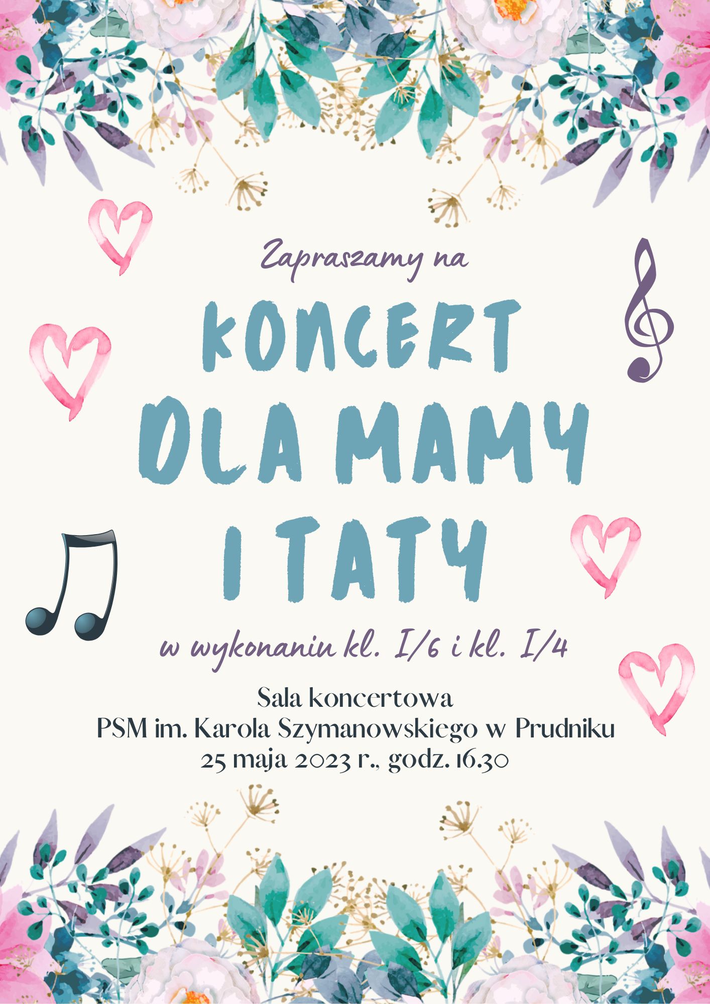 Zapraszamy na koncert dla Mamy i Taty w wykonaniu uczniów klasy I/6 oraz klasy I/4.