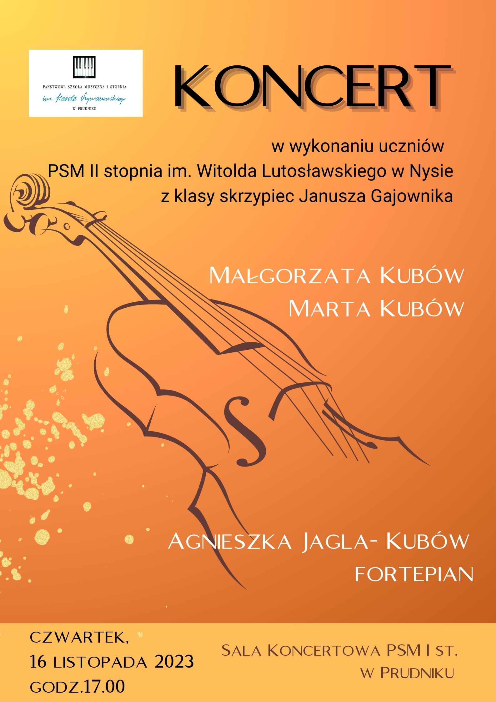 Koncert odbędzie się w czwartek 16 listopada 2023 r. o godz. 17.00 w Sali Koncertowej PSM I st. w Prudniku.
