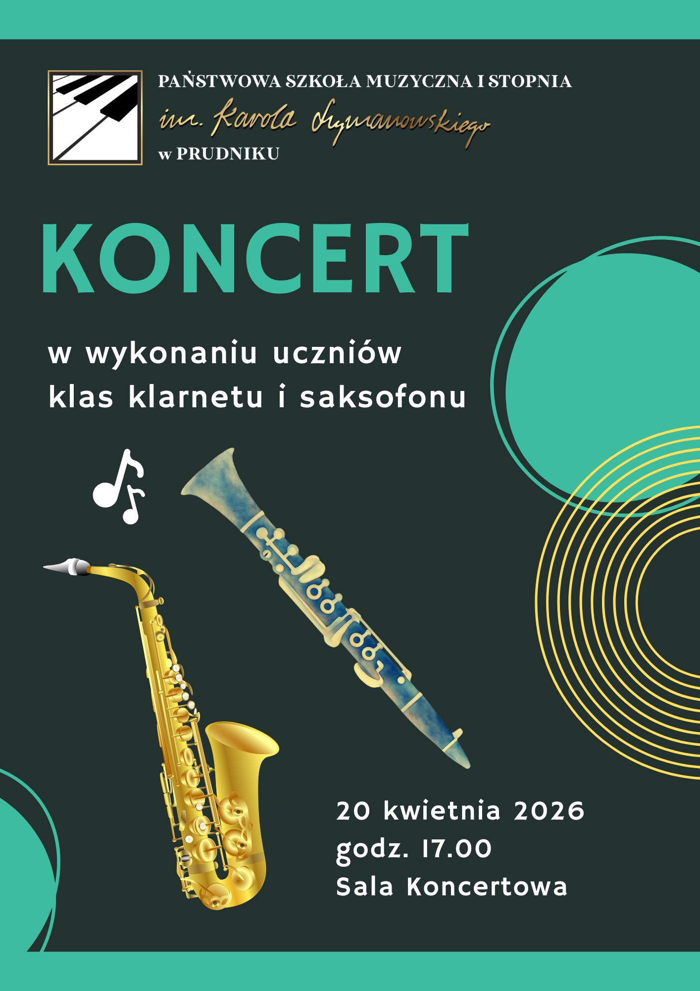 Koncert w wykonaniu uczniów klas klarnetu i saksofonu 20 kwietnia 2026 r. 19.04.2026 Zdjęcia (1) Pokaż zdjęcie 1 z galerii.