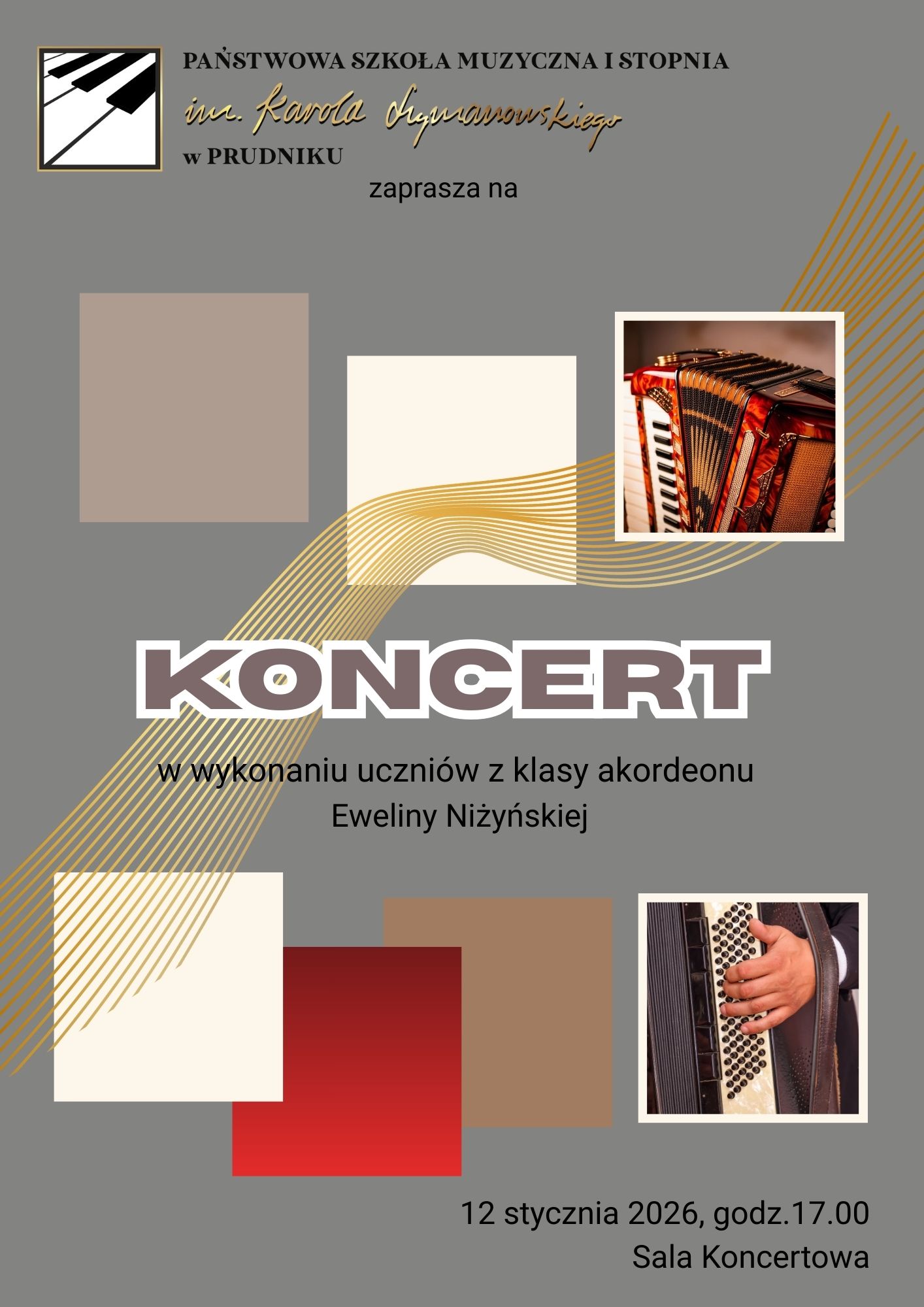 Koncert w wykonaniu uczniów z klasy akordeonu Eweliny Niżyńskiej 12 stycznia 2026 r. 05.01.2026 Zdjęcia (1) Pokaż zdjęcie 1 z galerii.
