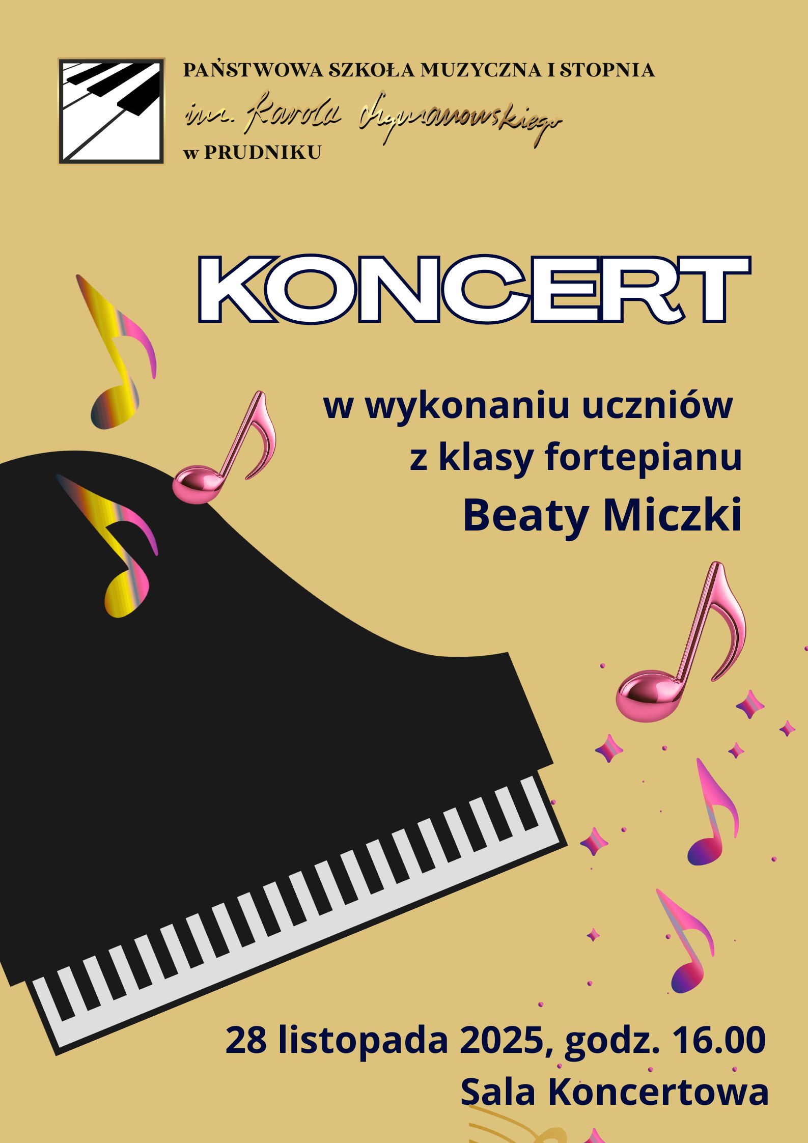 Koncert w wykonaniu uczniów z klasy fortepianu Beaty Miczki 28 listopada 2025 r. 20.11.2025 Zdjęcia (1) Pokaż zdjęcie 1 z galerii.