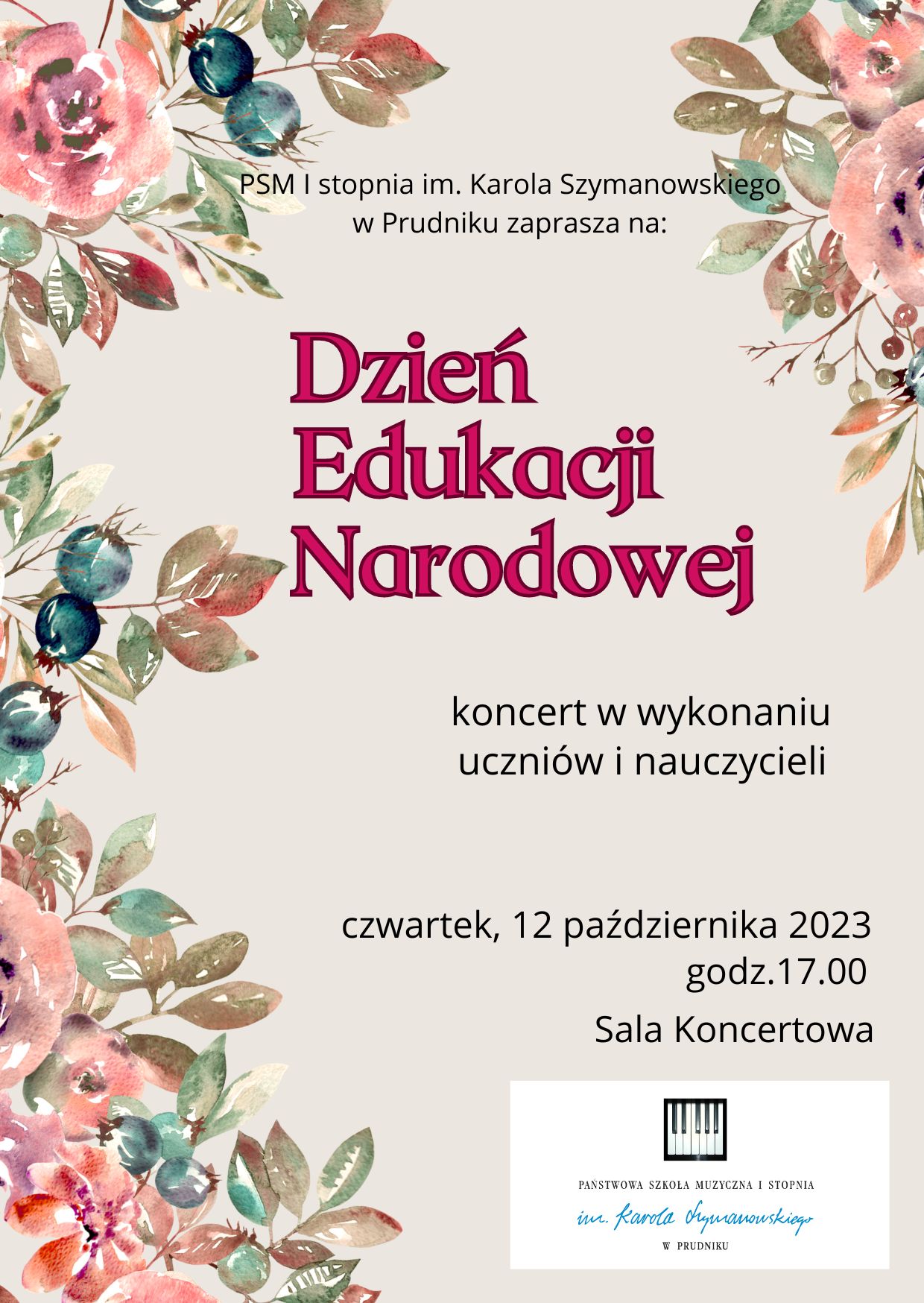 Serdecznie zapraszamy na koncert z okazji Dnia Edukacji Narodowej, który odbedzie sie w naszej szkole w dniu 12 października 2023 r. o godz. 17.00.