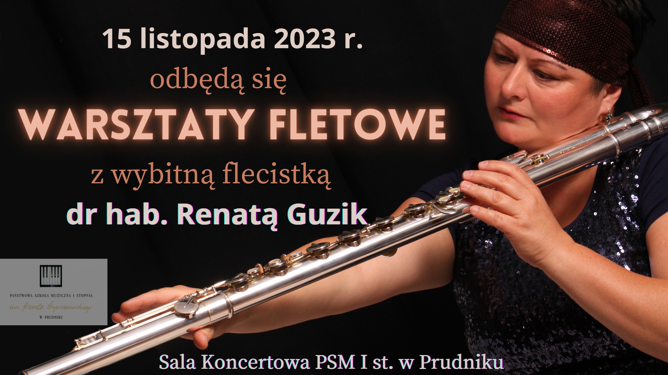 Serdecznie zapraszamy na warsztaty fletowe z wybitną flecistką dr hab. Renatą Guzik, które odbedą się 15 listopada 2023 r. w Państwowej Szkole Muzycznej I st. w Prudniku.