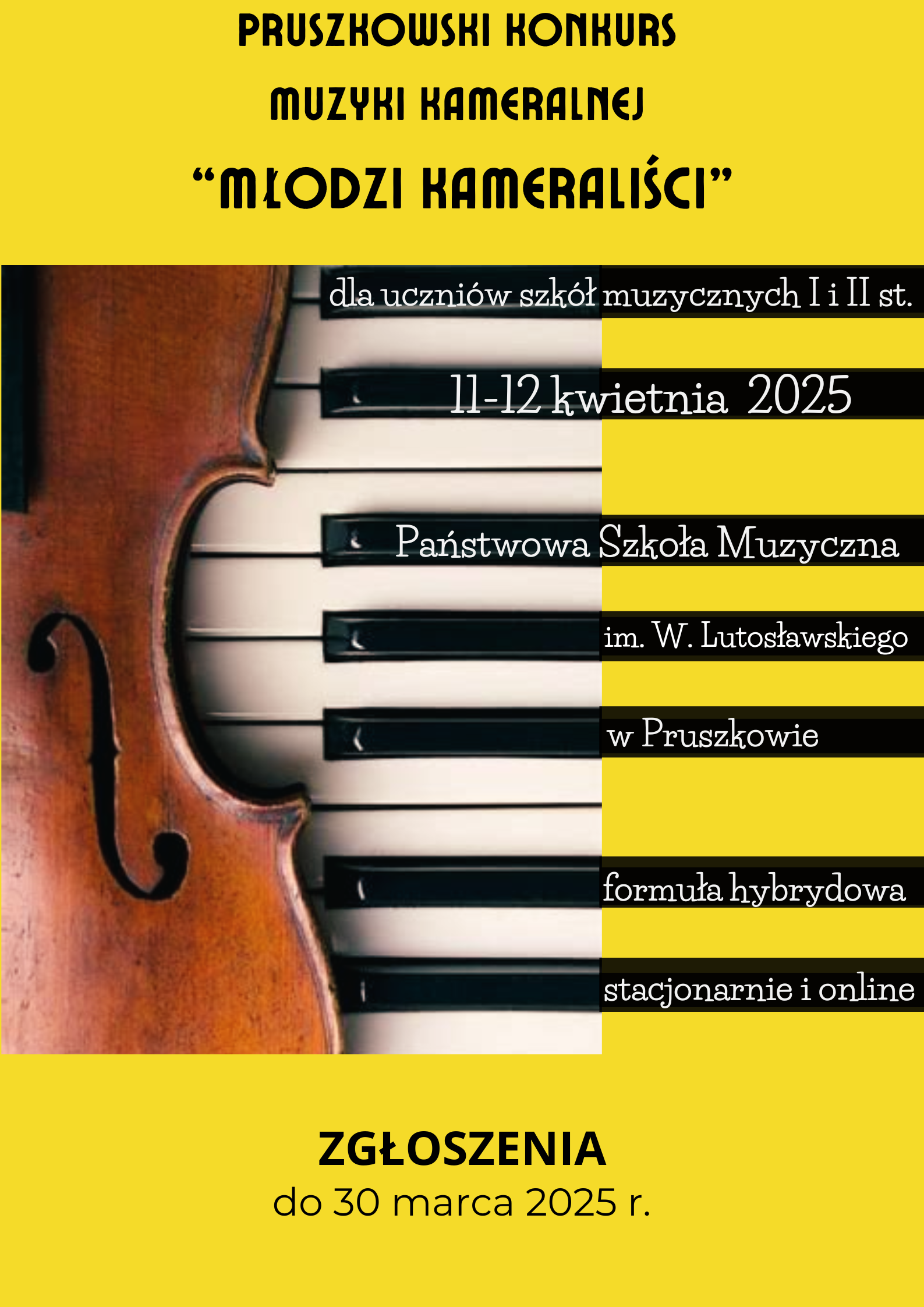 Serdecznie zapraszamy na Pruszkowski Konkurs Muzyki Kameralnej "Młodzi Kameraliści", który odbędzie się 11-12.04.2025 r.
