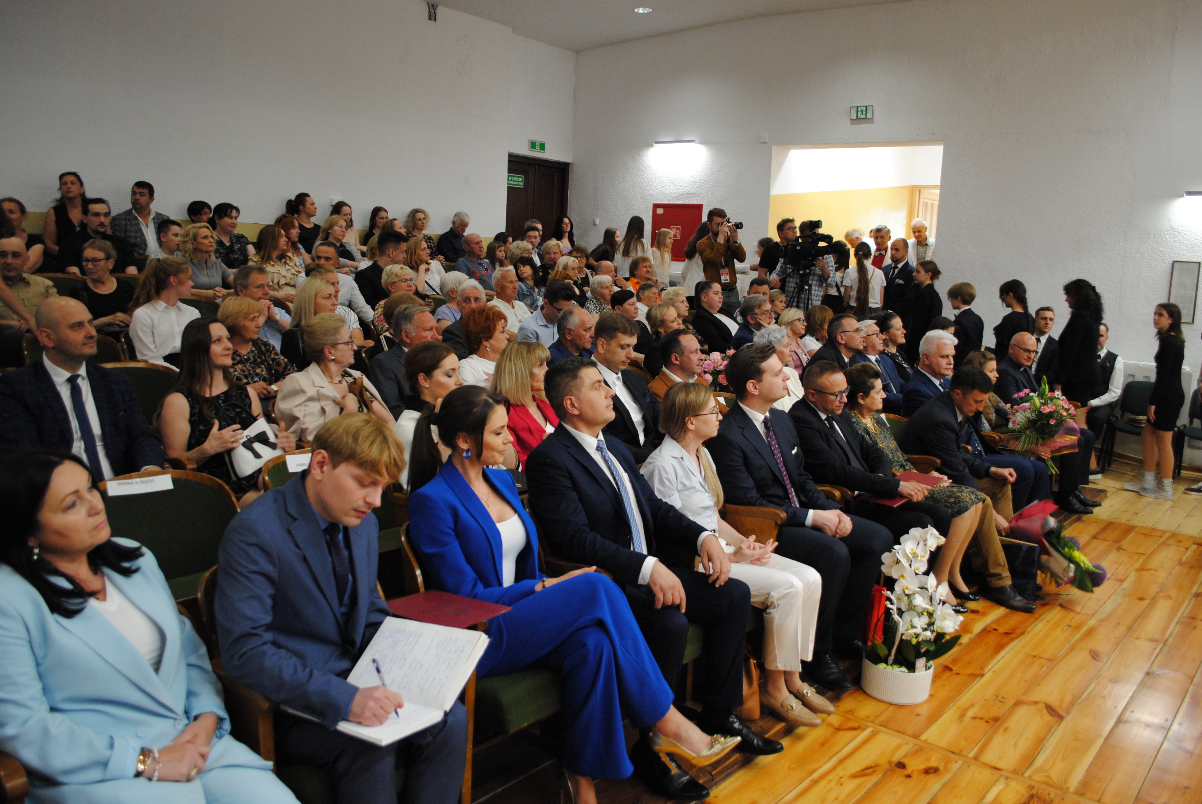 Na widowni zasiedli także przedstawiciele Rady Rodziców, obecni i emerytowani pracownicy szkoły, uczniowie, ich rodzice i absolwenci.
