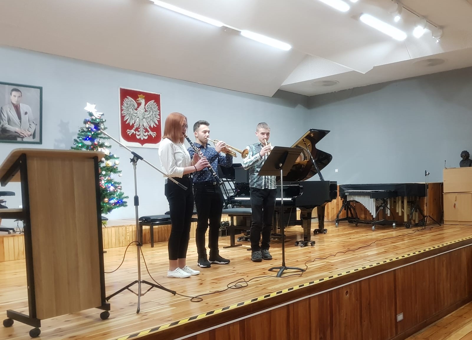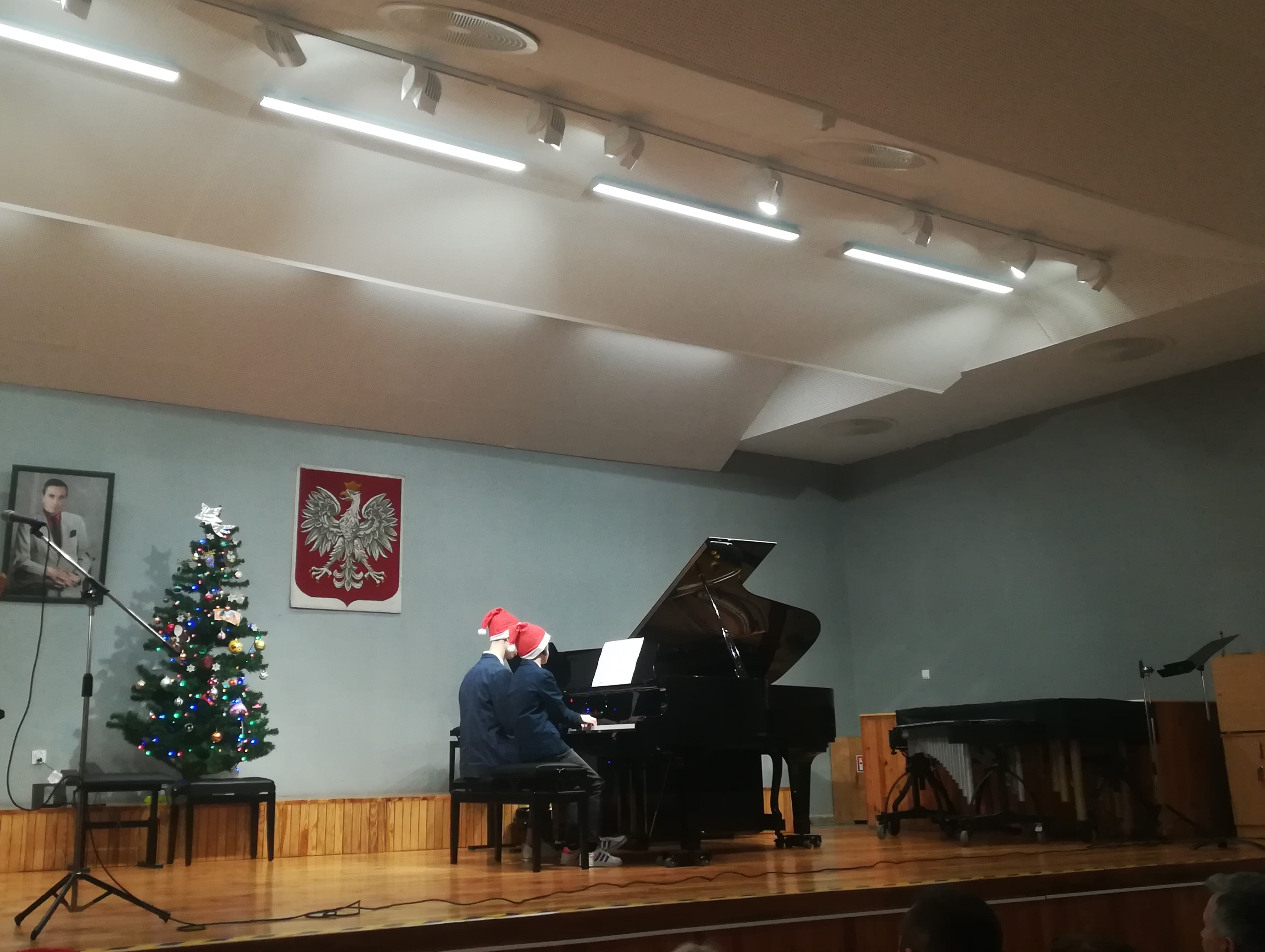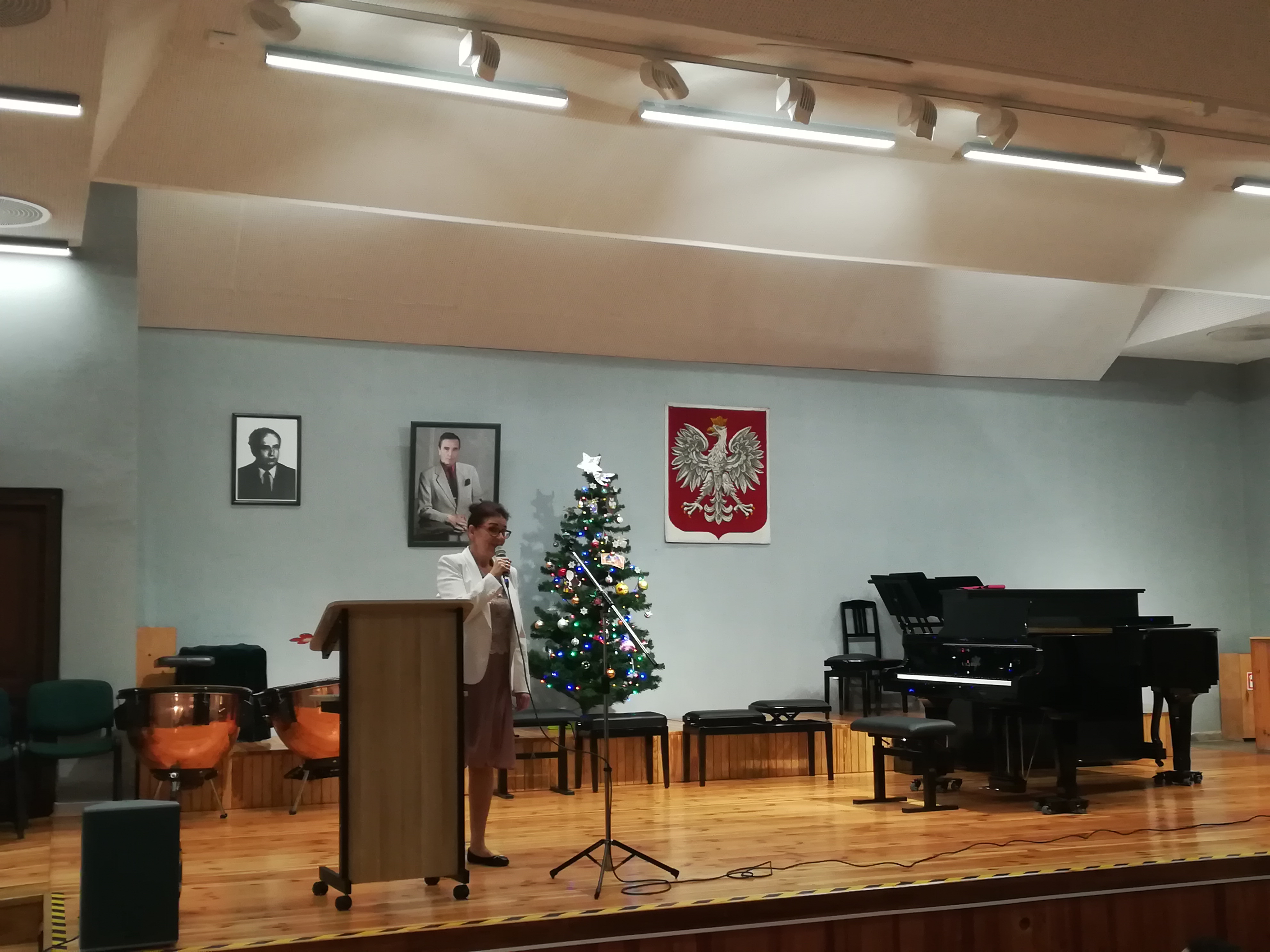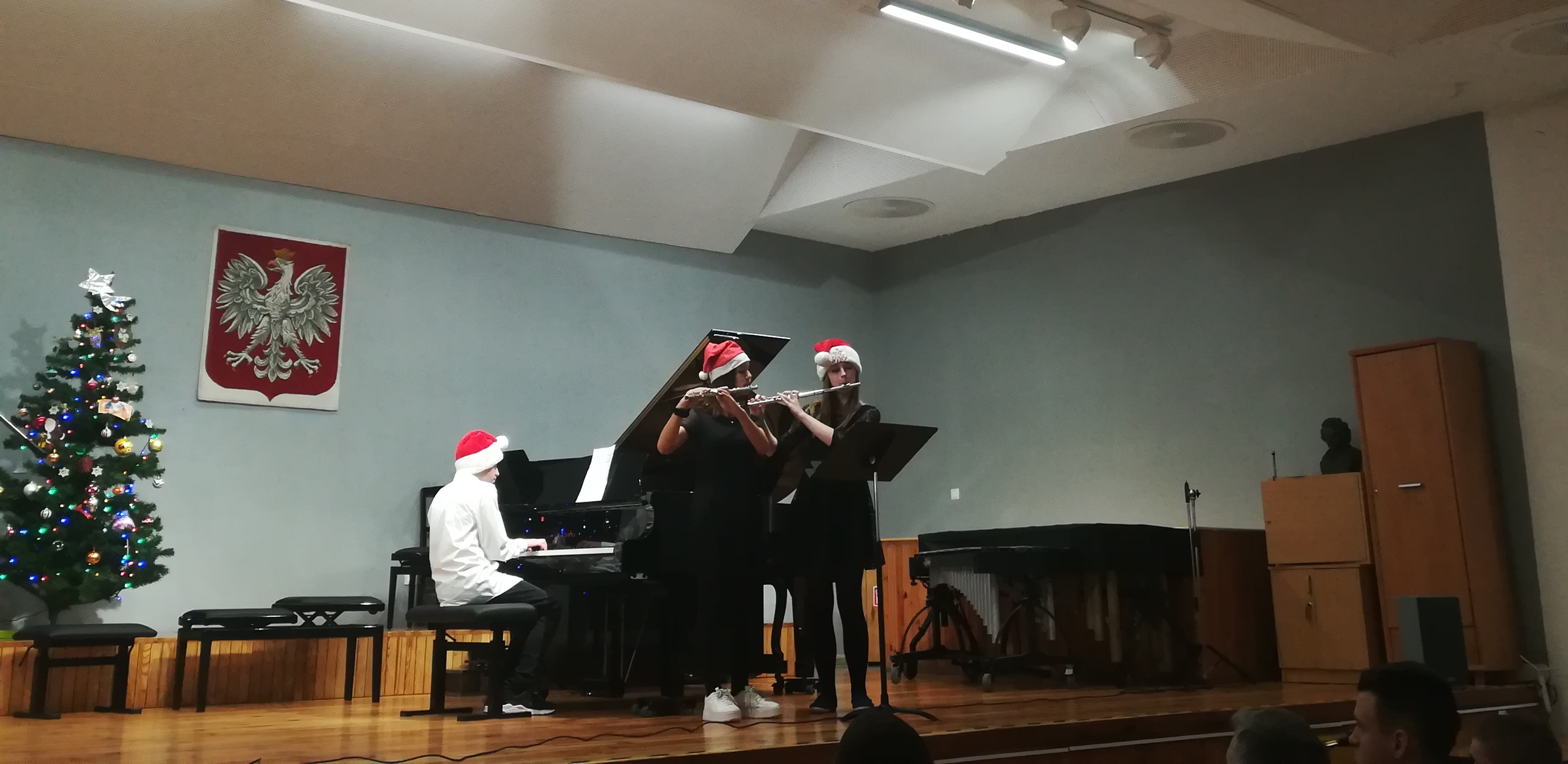 22 grudnia 2022 r. w naszej szkole odbył się koncert, podczas którego uczniowie wykonywali najpopularniejsze kolędy i pastorałki. Na scenie pojawili się soliści, zespoły kameralne, a także chór szkolny pod kierownictwem p. Zinaidy Strzelczyk. Koncert poprowadziła Pani Dyrektor Stanisława Małgorzata Ziemnicka. Wieczór zakończył się wspólnym odśpiewaniem kolędy "Przybieżeli do Betlejem" oraz słodką niespodzianką dla wszystkich przybyłych.