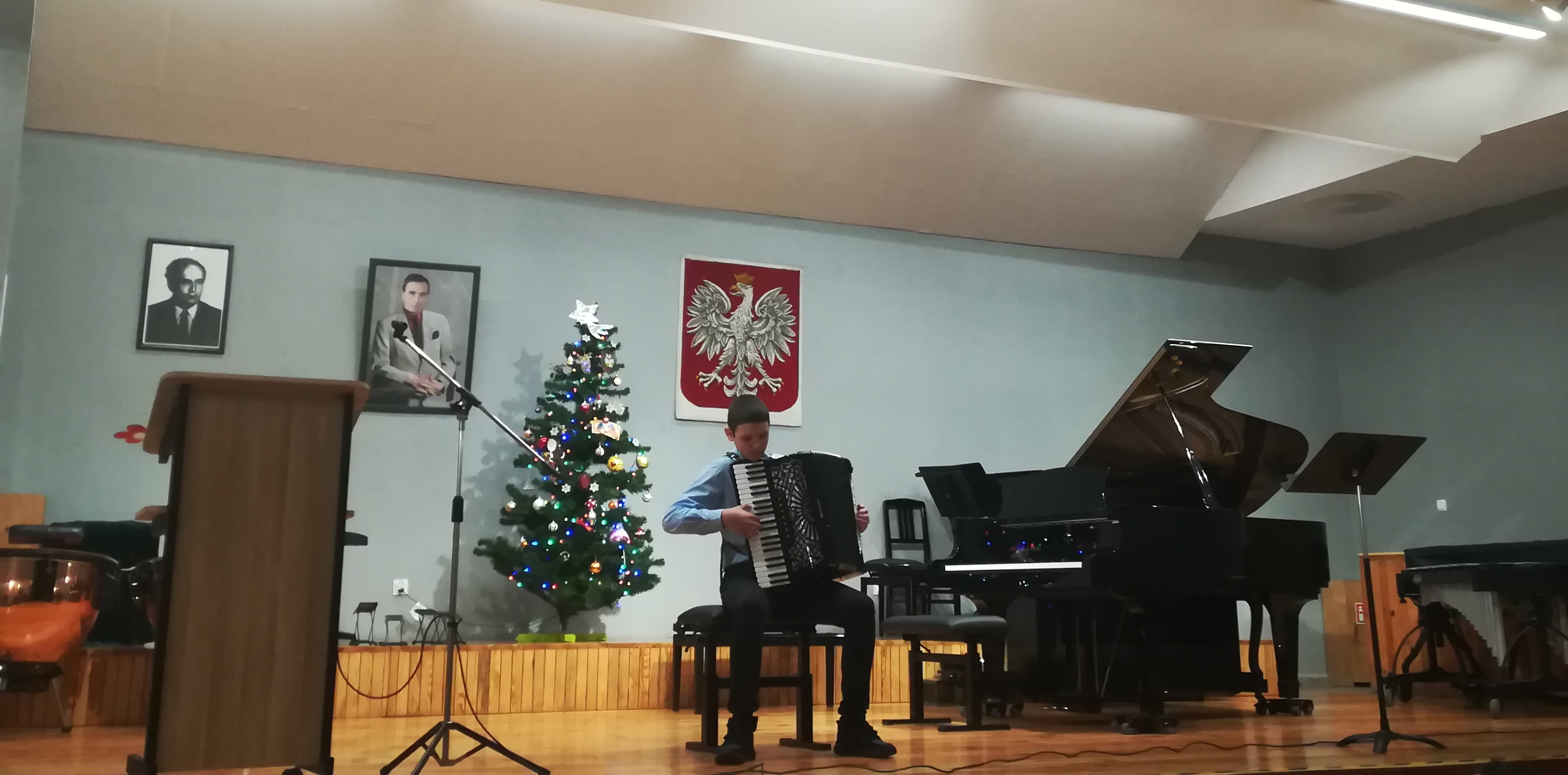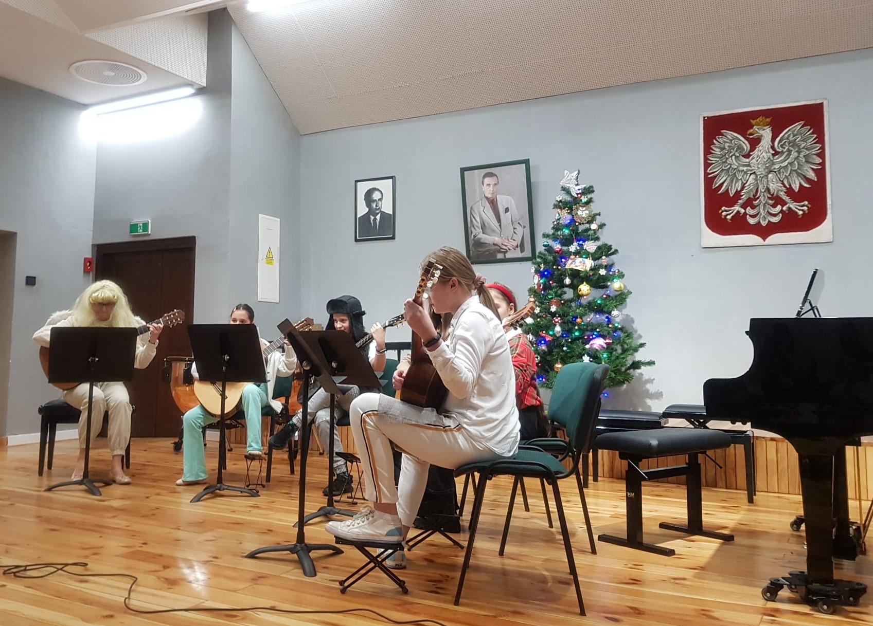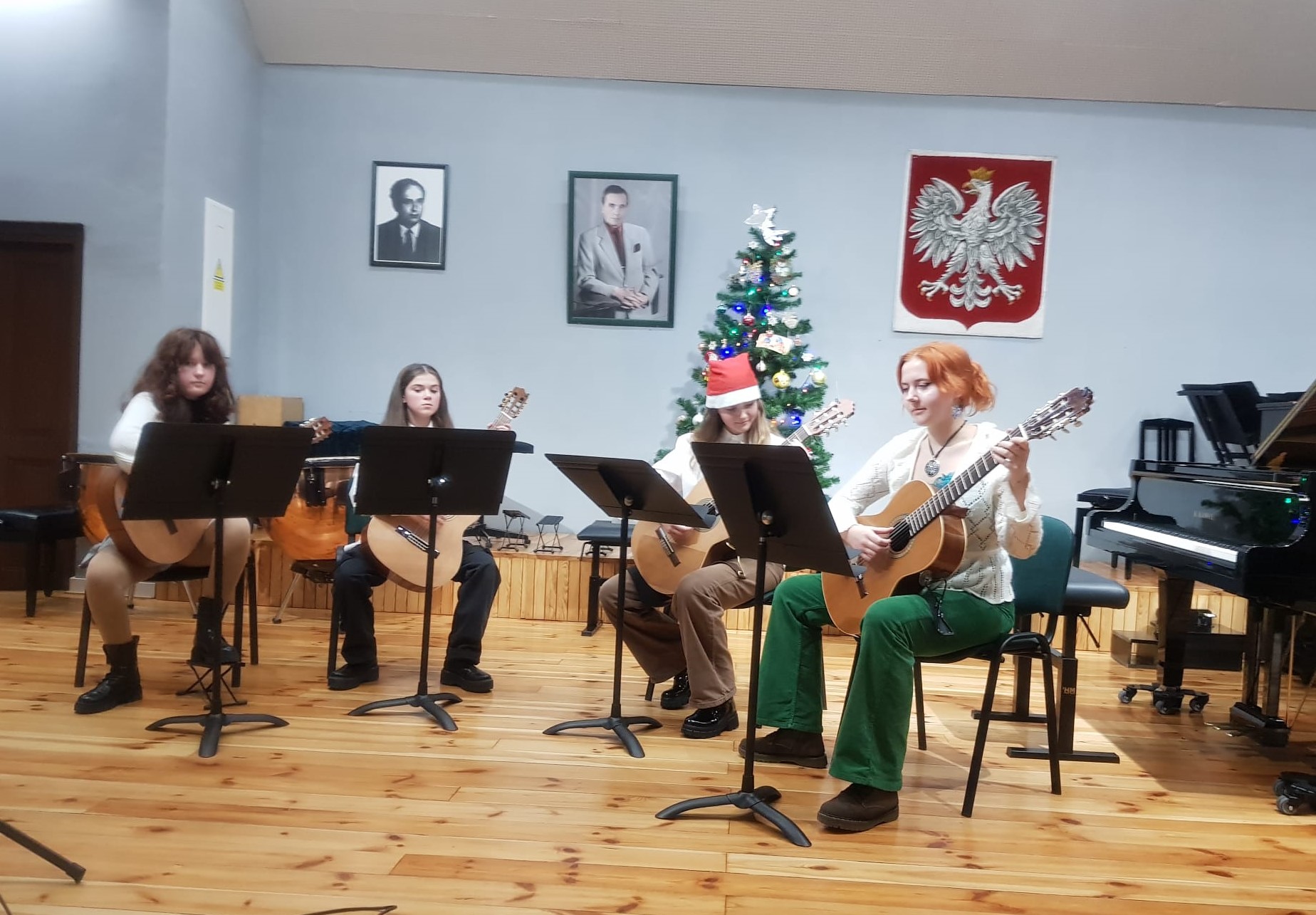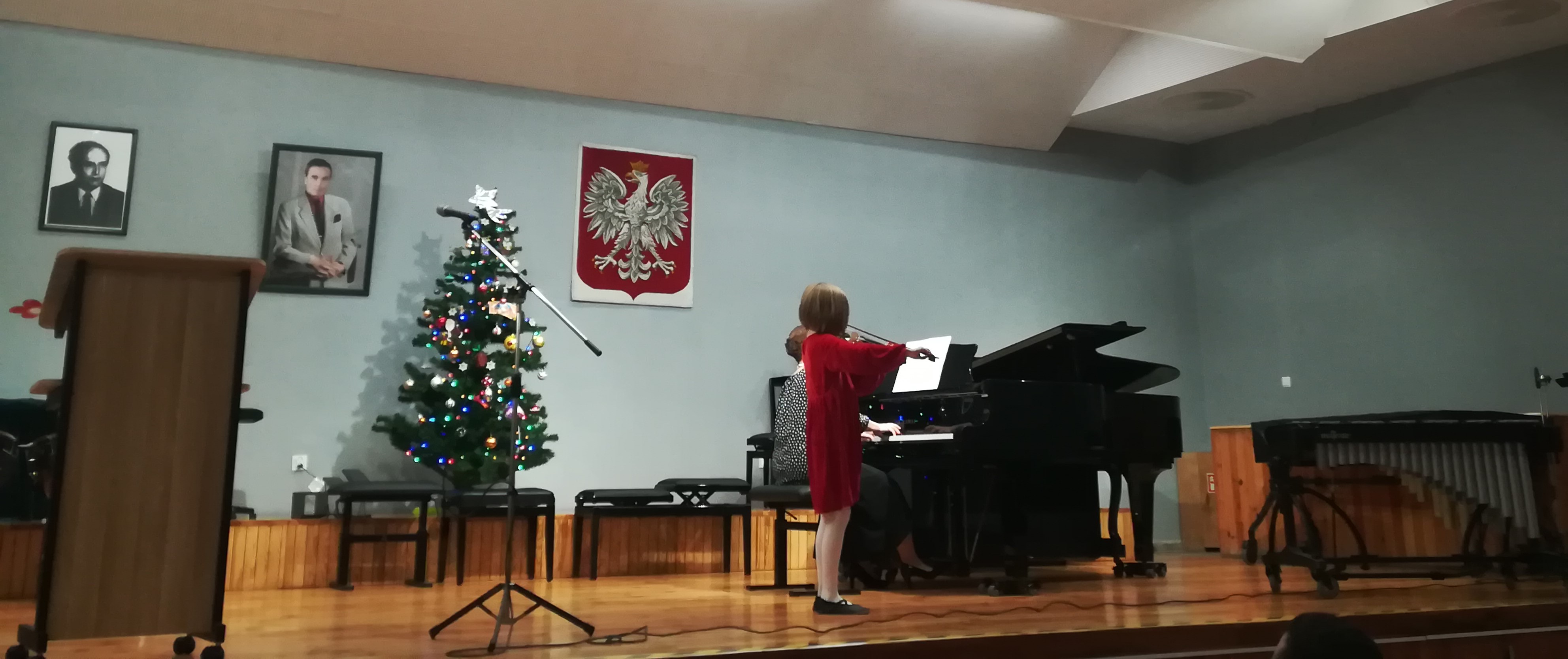 22 grudnia 2022 r. w naszej szkole odbył się koncert, podczas którego uczniowie wykonywali najpopularniejsze kolędy i pastorałki. Na scenie pojawili się soliści, zespoły kameralne, a także chór szkolny pod kierownictwem p. Zinaidy Strzelczyk. Koncert poprowadziła Pani Dyrektor Stanisława Małgorzata Ziemnicka. Wieczór zakończył się wspólnym odśpiewaniem kolędy "Przybieżeli do Betlejem" oraz słodką niespodzianką dla wszystkich przybyłych.