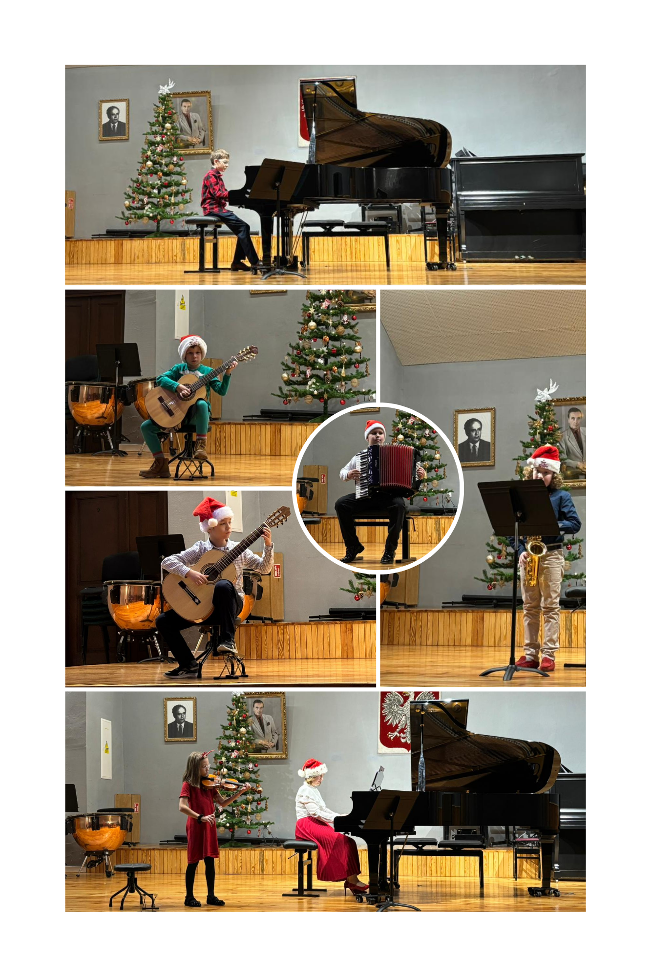 6 grudnia 2024 r. z okazji Mikołajek uczniowie klas I-IV 6-letniego cyklu i I-II 4-letniego cyklu nauczania wprowadzili całą społeczność szkolną w świąteczną atmosferę oficjalnie rozpoczynając sezon kolędowy. Pieknie ubrana choinka i świąteczne akcenty w strojach miały przyczynić się do rozpoczęcia przygotowań bożonarodzeniowych. Na scenie wystąpili nie tylko soliści, ale i zespoły instrumentalne, które zaprezentowały kolędy opracowane przez p. Magdalenę Strońską. Nie zabrakło również słodkiej niespodzianki prosto od Świętego Mikołaja dla wszystkich artystów i przybyłych gości. Koncert poprowadziła Pani Wicedyrektor Marzena Wiśniewska.