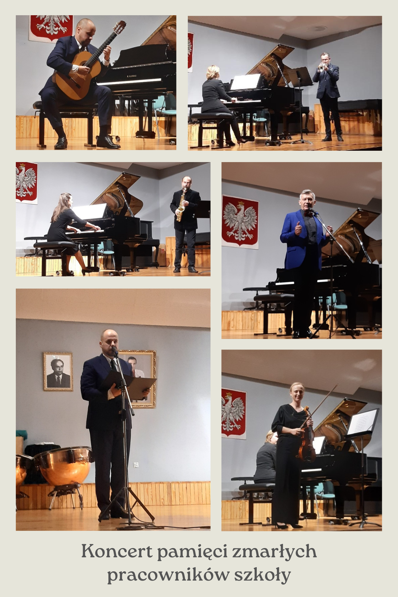 8 listopada 2023 r. odbył się koncert poświęcony pamięci zmarłych pracowników naszej szkoły. Na scenie wystąpili nauczyciele gitary, trąbki, saksofonu, skrzypiec, akordeonu, a także fortepianu. Koncert poprowadził Pan Dyrektor Jurand Przewłoka.