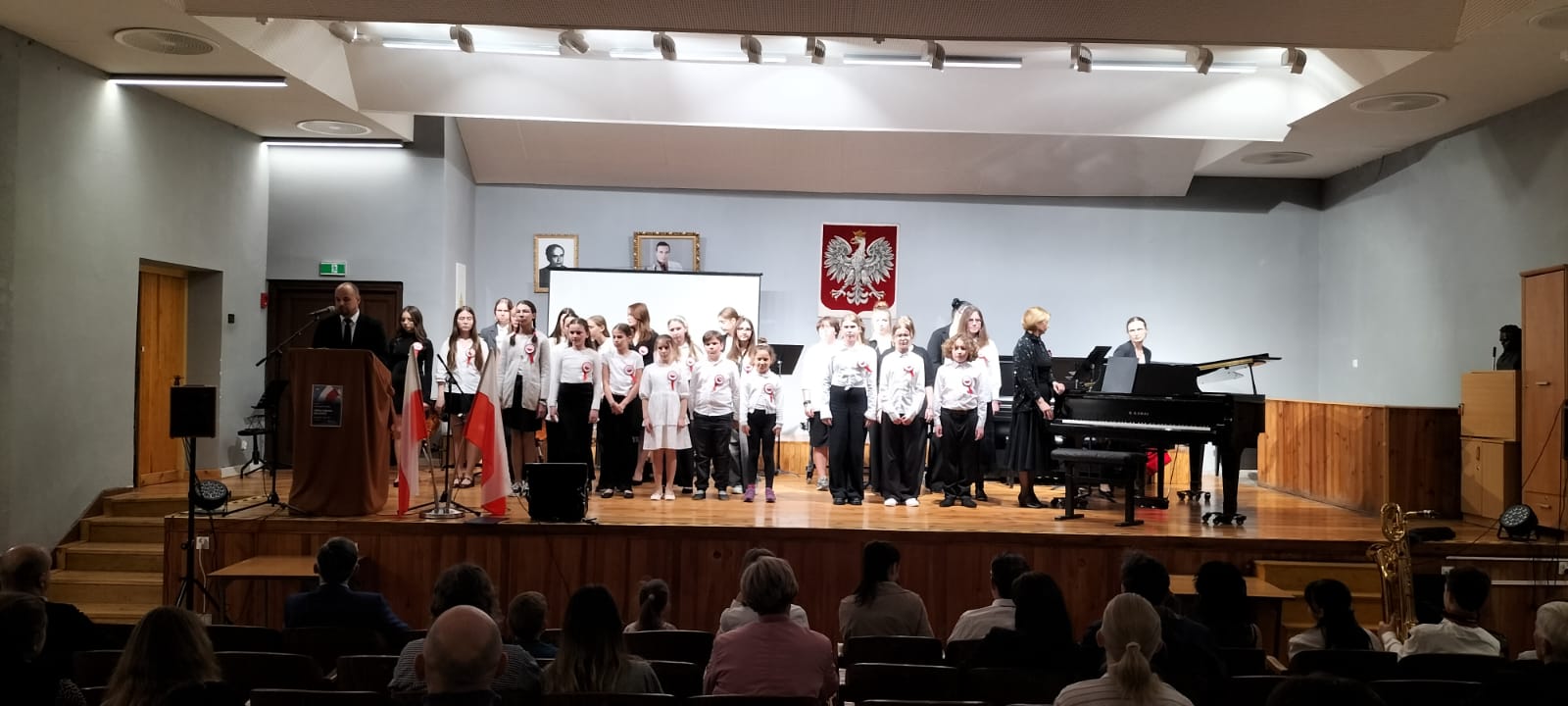 8 maja 2025 r. uczciliśmy w szkole obchody 234. rocznicy uchwalenia Konstytucji 3 Maja. Z tej okazji odbył się uroczysty koncert z muzyką polską w roli głównej, podczas którego po wspólnym odśpiewaniu Mazurka Dąbrowskiego wystąpił chór szkolny pod dyrekcją p. Zinaidy Strzelczyk, orkiestra dęta przygotowana przez p. Pawła Drabarza, a także zespoły instrumentalne i soliści. Gospodarzem wieczoru był Pan Dyrektor Jurand Przewłoka.