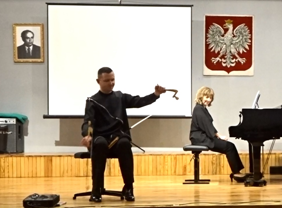 28 lutego 2023 r. w naszej szkole odbyło się spotkanie z dr. Kamile Krukiem - kompozytorem, teoretykiem muzyki, pedagogiem i pilistą. Podczas rozmowy z p. Marią Grabiec podzielił się on wspomnieniami związanymi z nauką w puławskiej Szkole Muzycznej, studiami na krakowskiej Akademii Muzycznej oraz współpracą z Krzysztofem Pendereckim. Ponadto zaprezentował swoje wybrane kompozycje, a także opowiedział o kolekcji pił muzycznych. Spotkanie zakończyło się koncertem, podczas którego wysłuchaliśmy utworów granych na pile koncertowej przy akompaniamencie fortepianu.