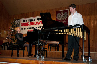 6 grudnia 2010 r. - Rafał Lenartowicz - uczeń Pana Piotra Wróblewskiego w klasie perkusji (kl. IV) - wystąpił w Filharmonii im. H. Wieniawskiego w Lublinie w dwóch koncertach zatytułowanych "Perkusyjny kalejdoskop". Rafał był gościem Tria Perkusyjnego Filharmonii Lubelskiej w składzie: Dominik Augustowski, Włodzimierz Sypniewski i Andrzej Zawisza. Wykonał dwa utwory: "Flam Mission" Bena Hansa na werbel solo i "Białoruską pieśń ludową" na ksylofon i fortepian w opracowaniu Kalinika Kupińskiego. Akompaniowała Pani Anna Kajdzik. Serdecznie gratulujemy udanego występu!