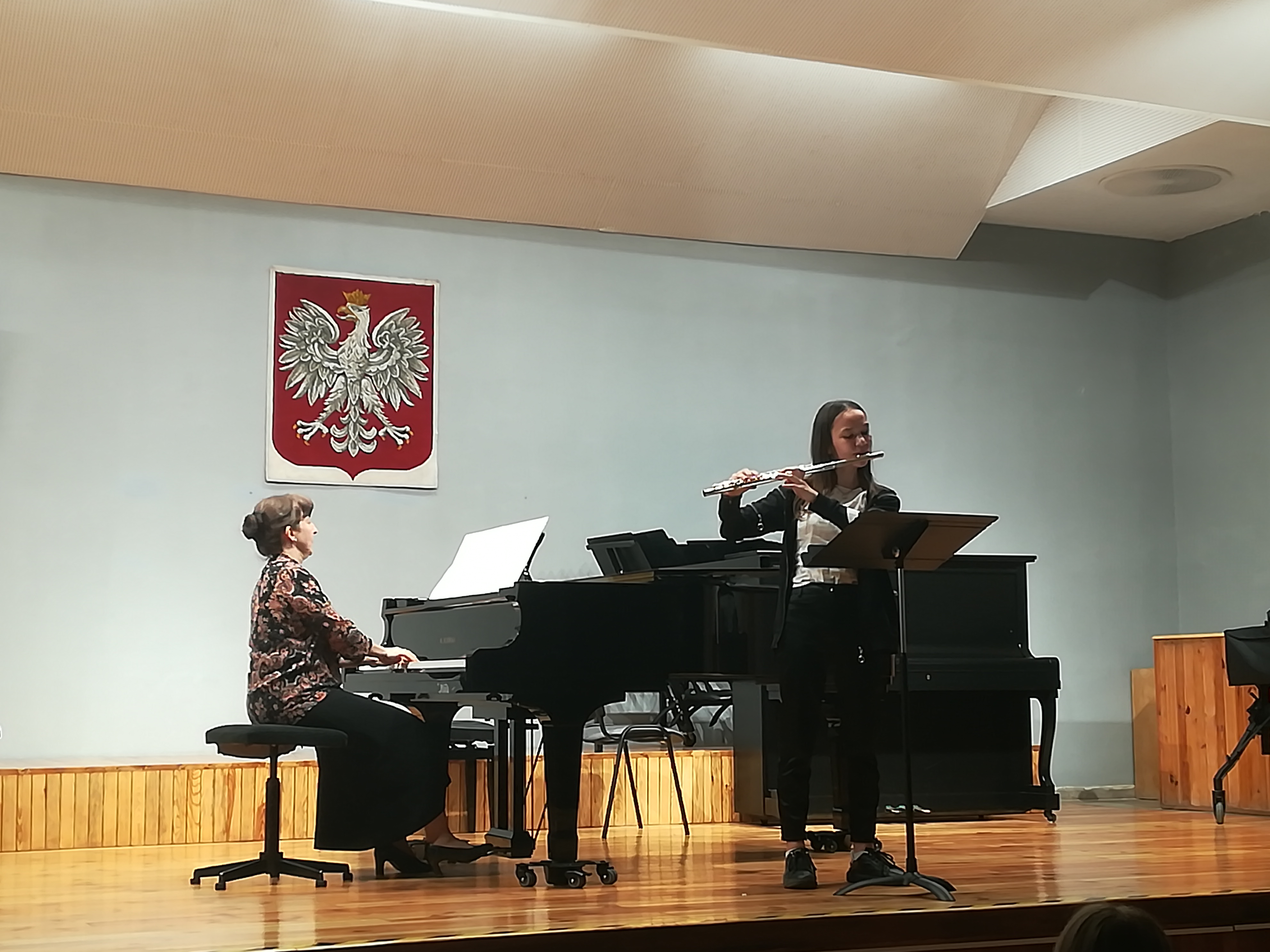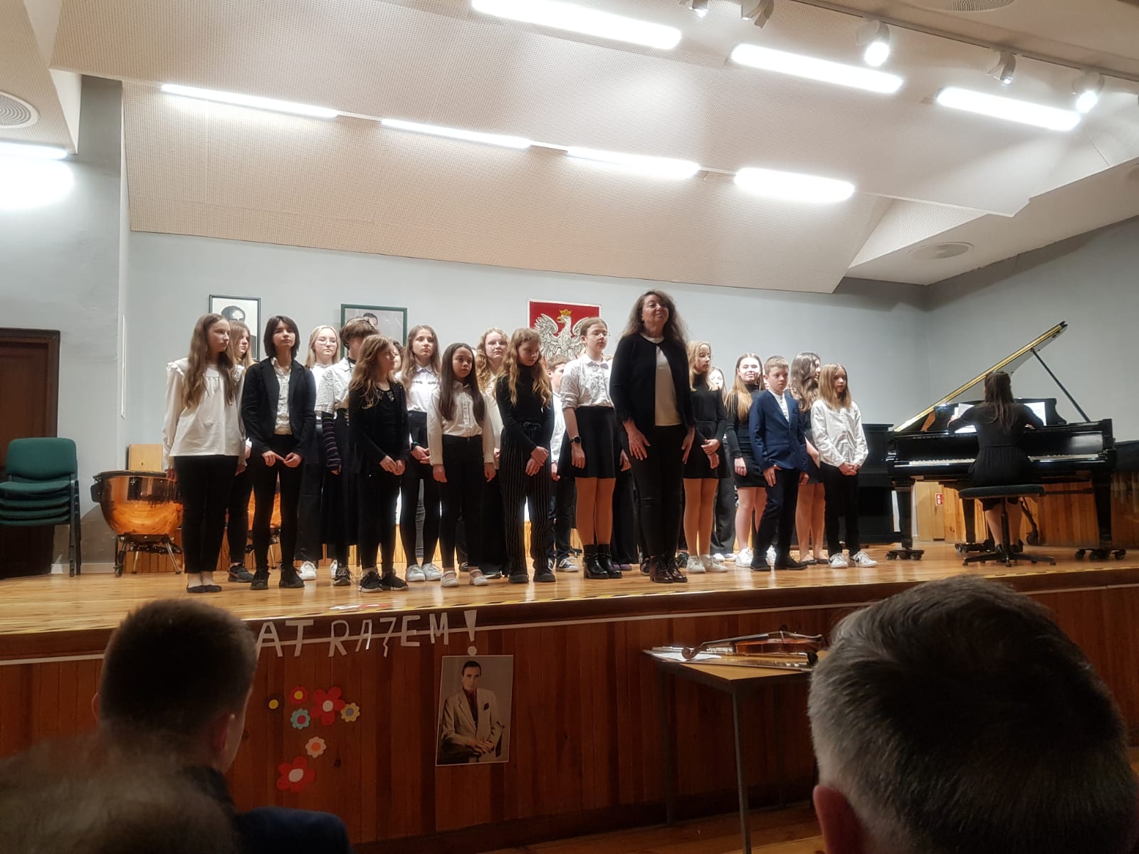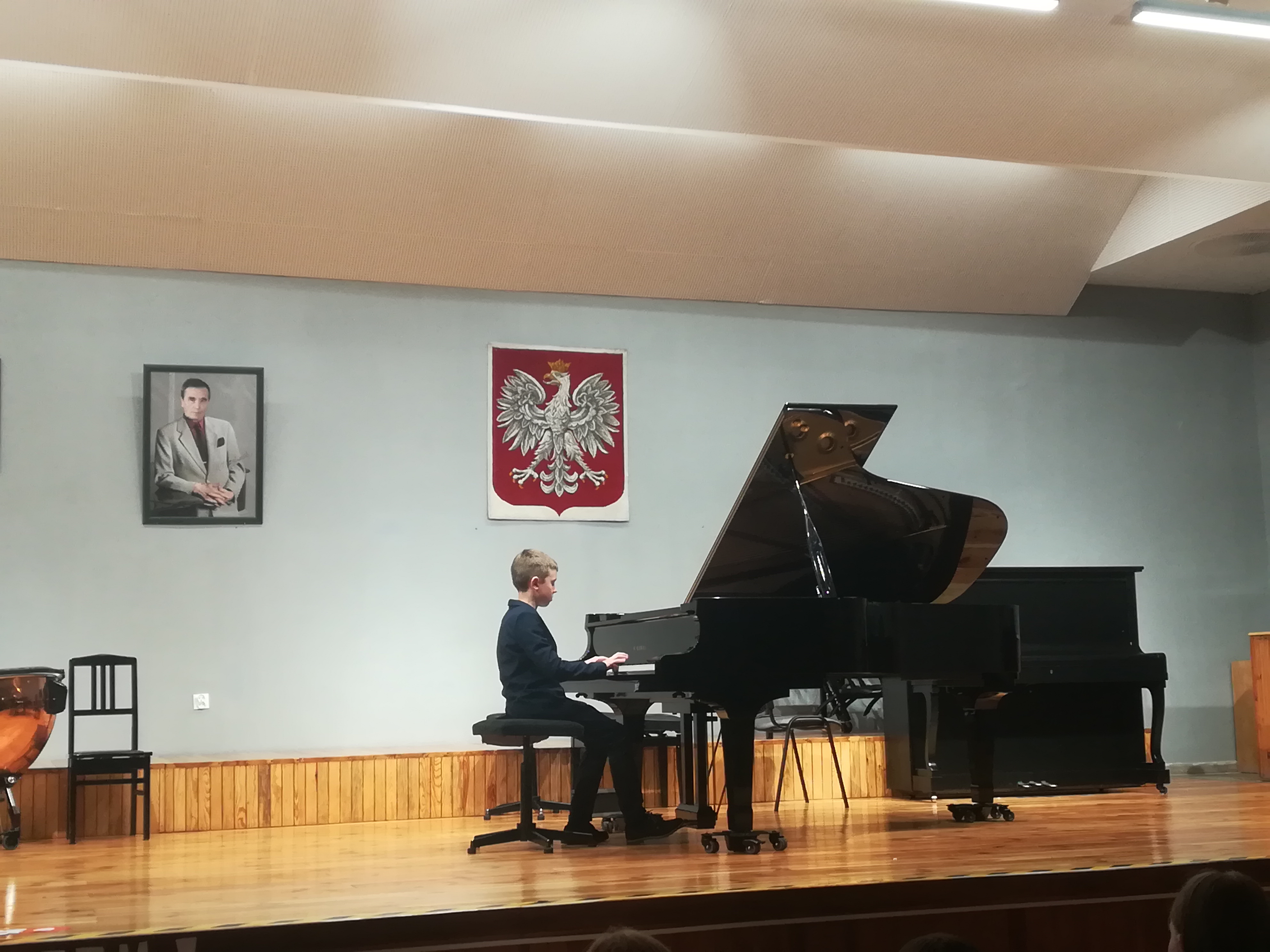 Z okazji Święta Konstytucji 3 Maja w naszej szkole odbył się koncert, podczas którego mogliśmy usłyszeć utwory polskich kompozytorów w wykonaniu chóru szkolnego oraz uczniów klasy trąbki, klarnetu, fletu, skrzypiec, gitary, akordeonu i fortepianu. Koncert poprowadzili p. Dorota Kapica-Kośmińska oraz p. Waldemar Ziemnicki.