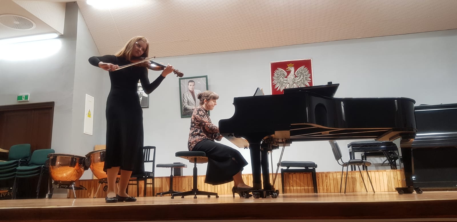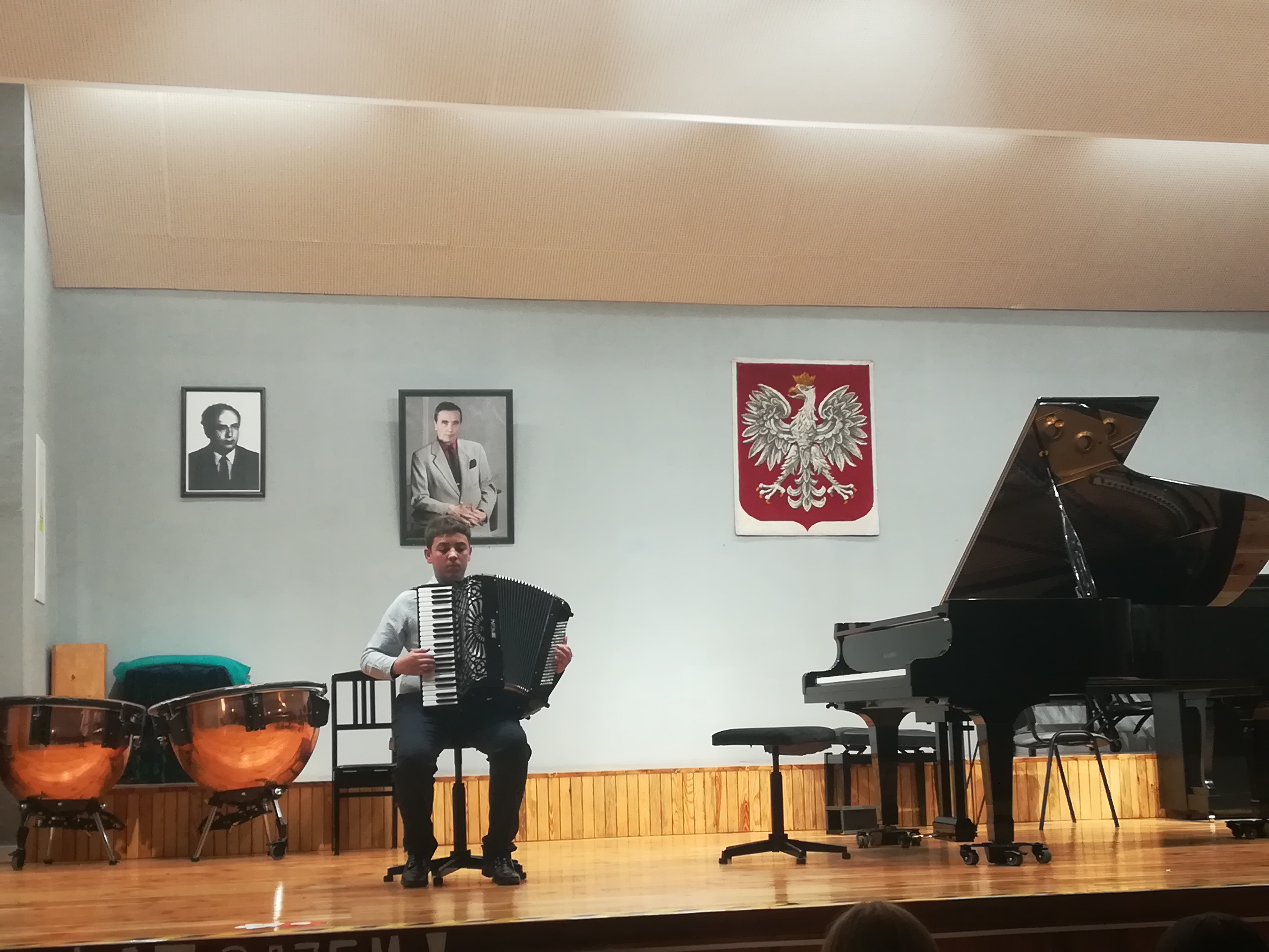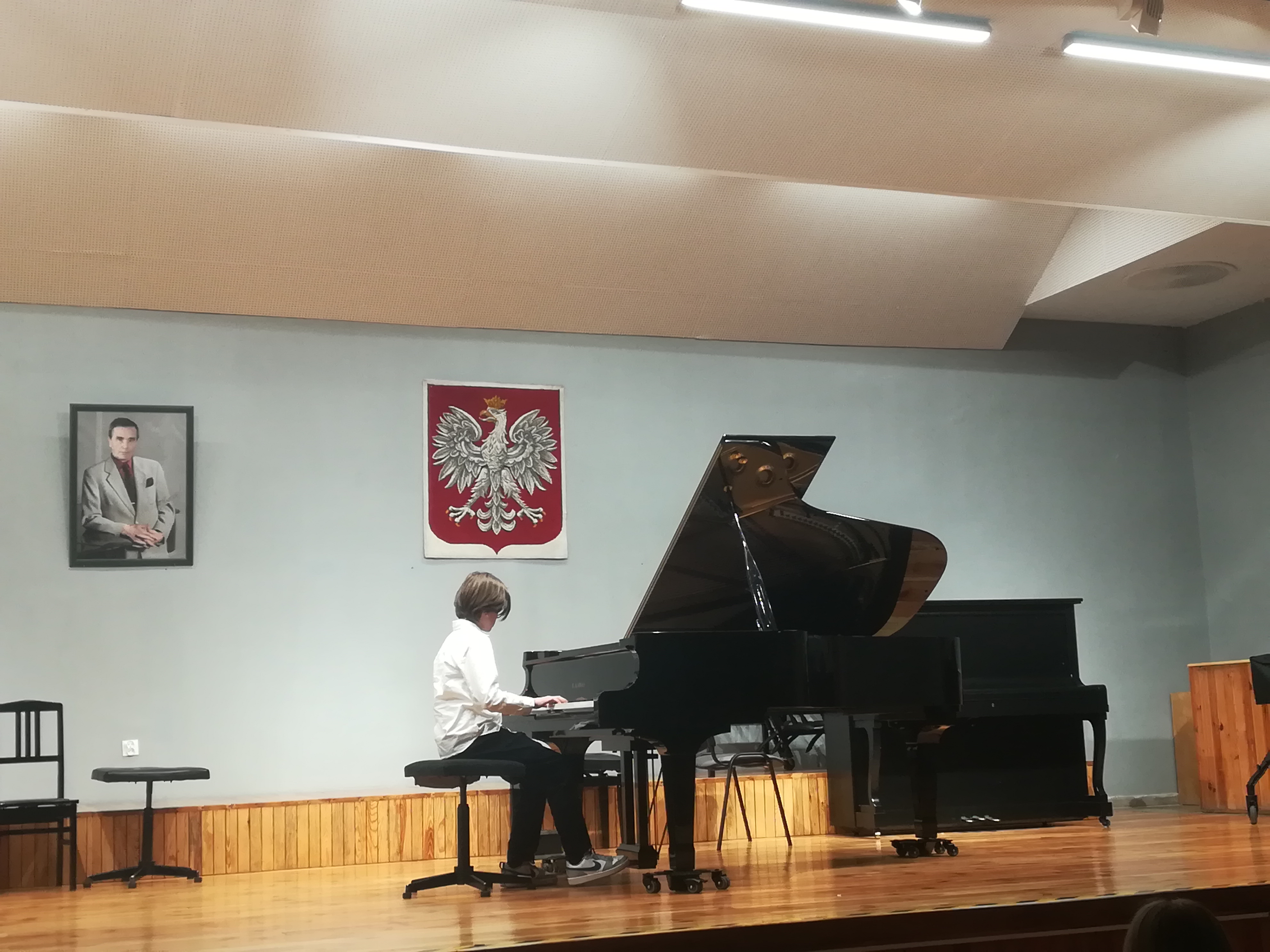 Z okazji Święta Konstytucji 3 Maja w naszej szkole odbył się koncert, podczas którego mogliśmy usłyszeć utwory polskich kompozytorów w wykonaniu chóru szkolnego oraz uczniów klasy trąbki, klarnetu, fletu, skrzypiec, gitary, akordeonu i fortepianu. Koncert poprowadzili p. Dorota Kapica-Kośmińska oraz p. Waldemar Ziemnicki.