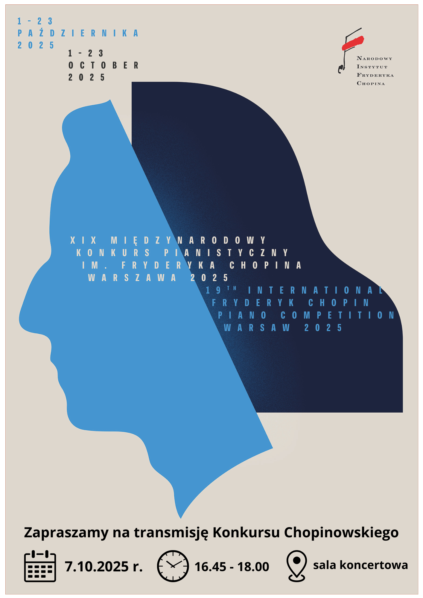 Zapraszamy na transmisję Konkursu Chopinowskiego, którą wspólnie obejrzymy w szkolnej sali koncertowej. Transmisja zostanie poprzedzona komentarzem słownym na temat historii Konkursu, sylwetki Fryderyka Chopina oraz wykonywanych utworów.