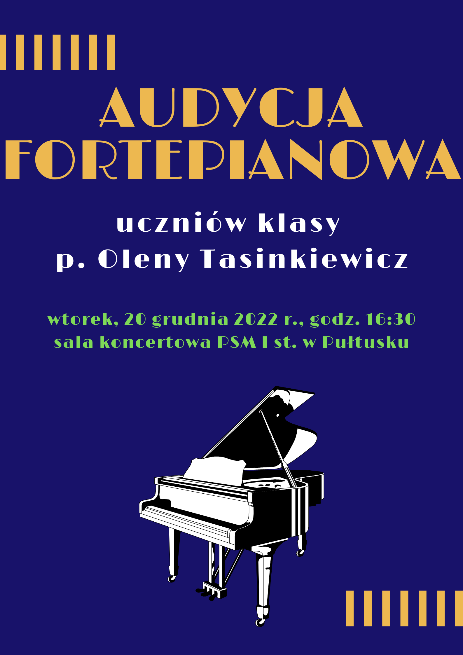 Serdecznie zapraszamy na audycję fortepianową w wykonaniu uczniów klasy p. Oleny Tasinkiewicz