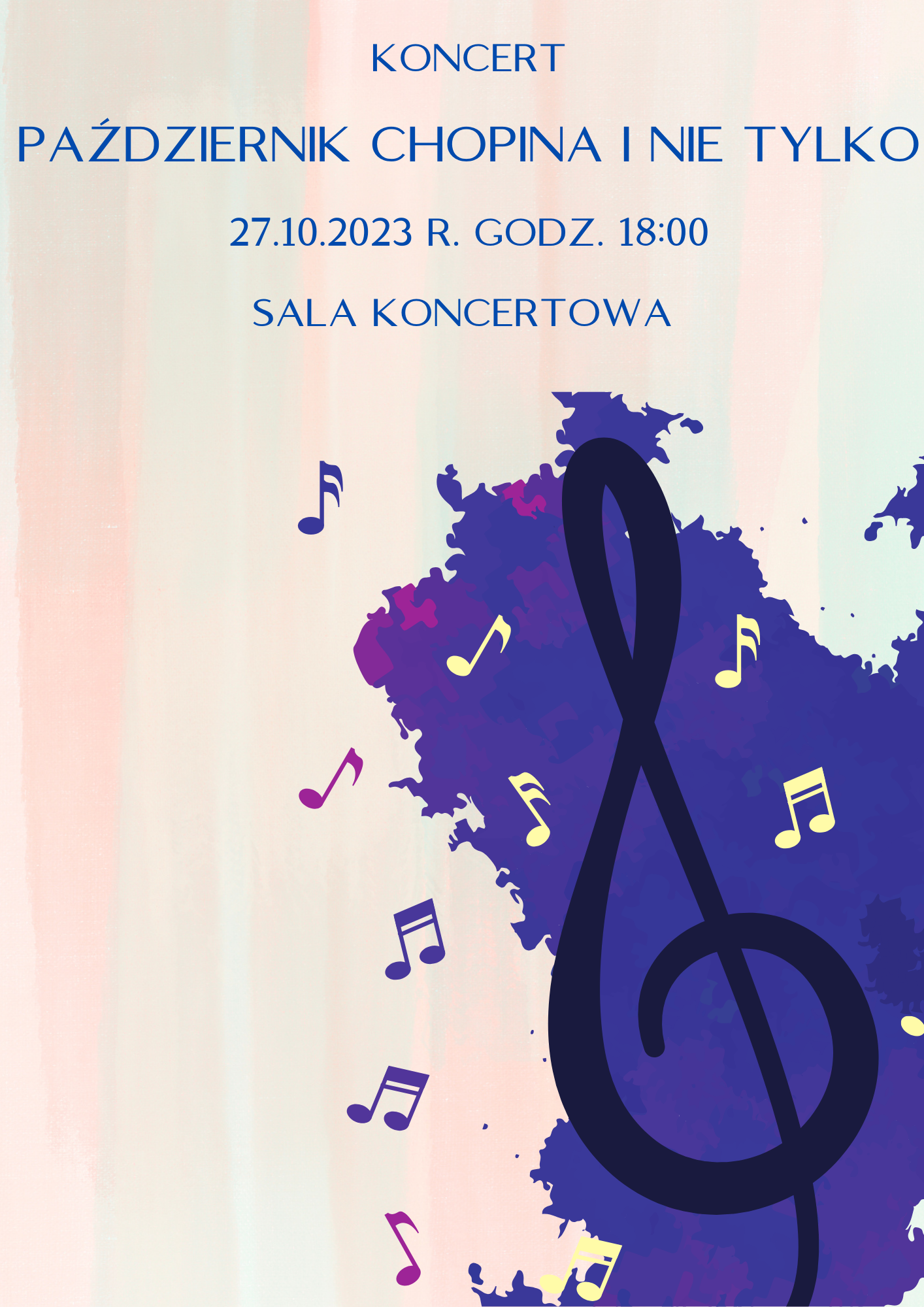 Serdecznie zapraszamy na koncert Październik Chopina i nie tylko. Koncert będzie miał miejsce 27 października o godzinie 18:00 w sali koncertowej PSM I st. w Pułtusku.