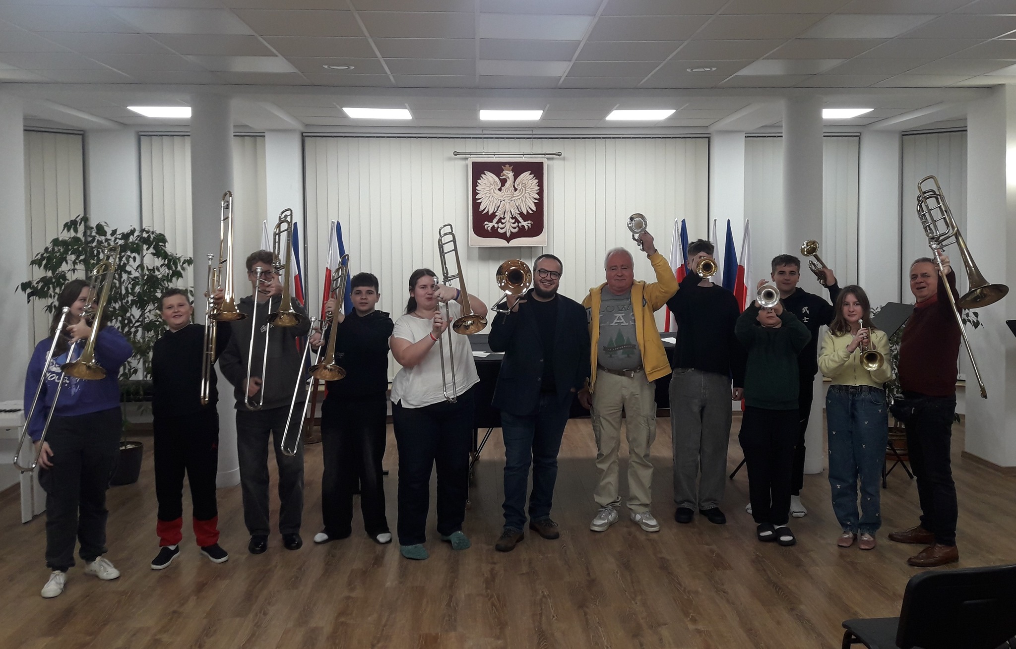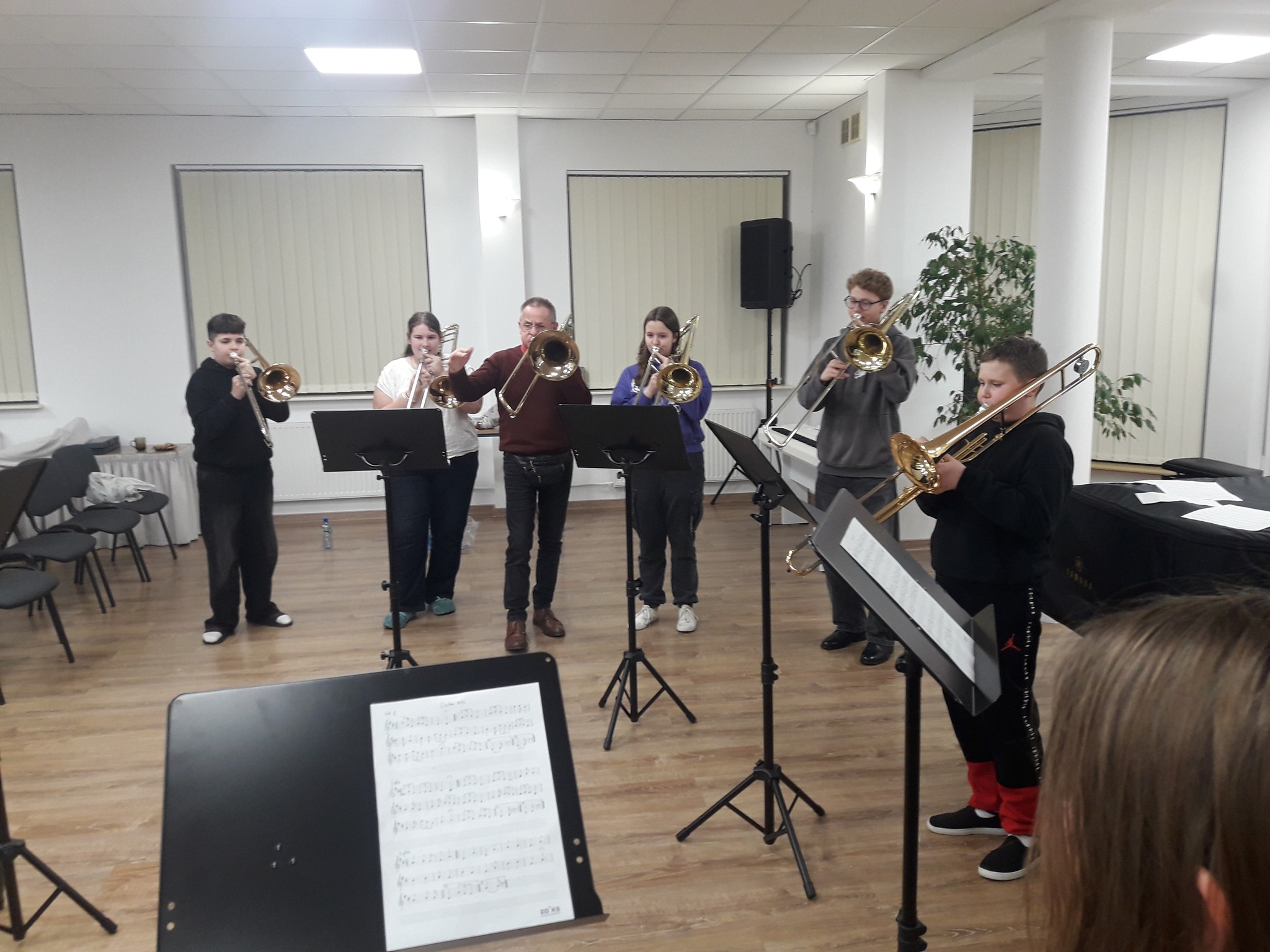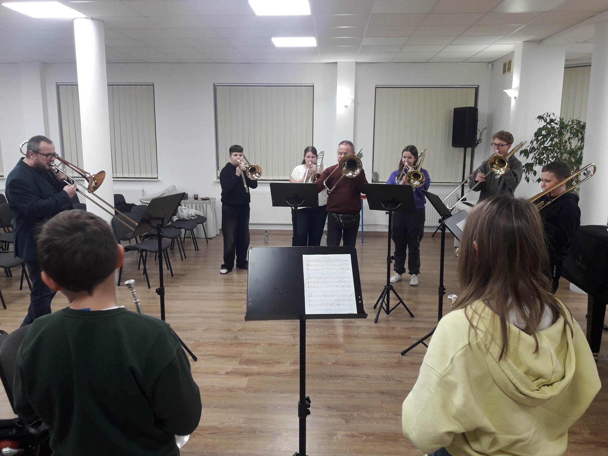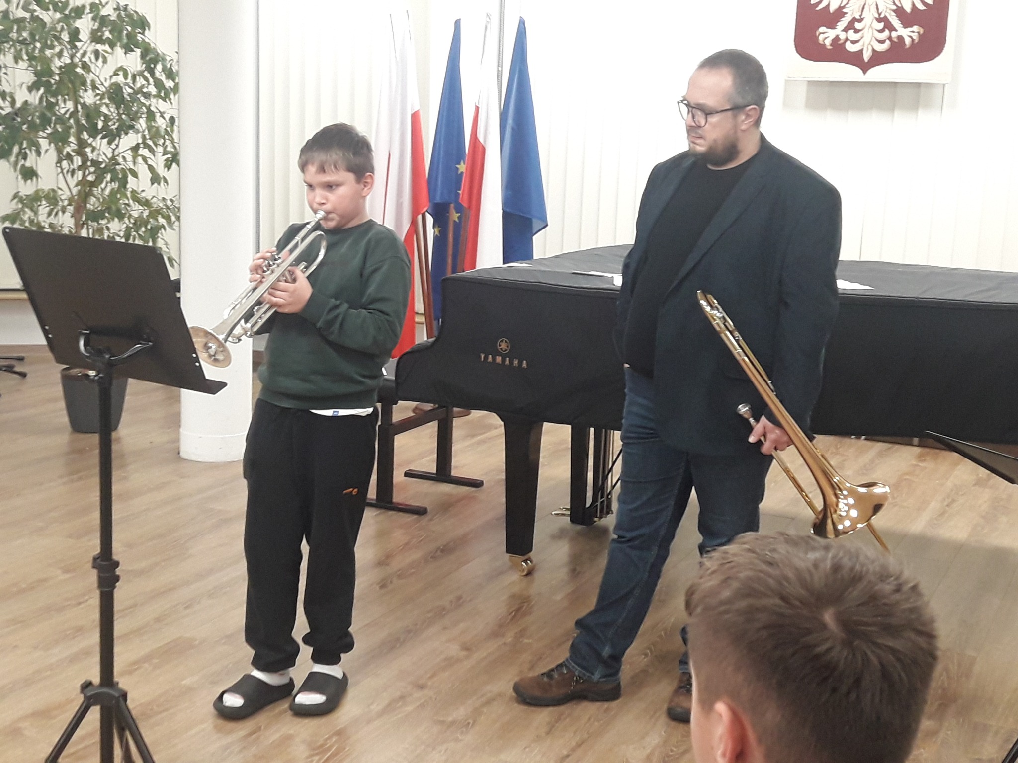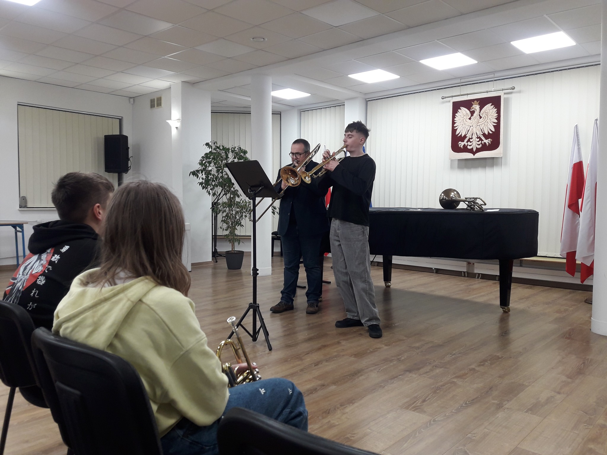 Nasz gość poprowadził warsztaty dla uczniów klasy puzonu pana Roberta Krajewskiego oraz klasy trąbki pana Fryderyka Pawelca. Dziękujemy za poświęcony czas i przekazaną wiedzę.