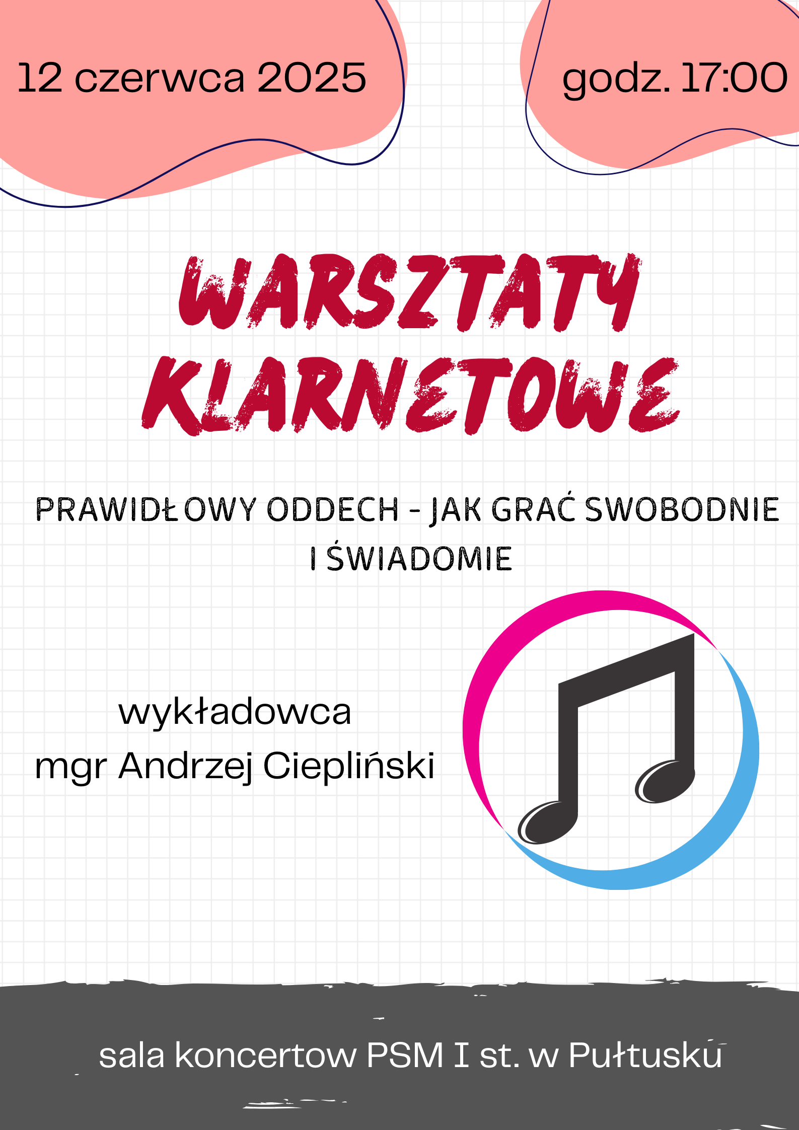 Serdecznie zapraszamy na warsztaty klarnetowe, które odbędą się 12 czerwca o godz. 1700 w sali koncertowej naszej szkoły. Warsztaty poprowadzi znakomity polski klarnecista Andrzej Ciepliński.